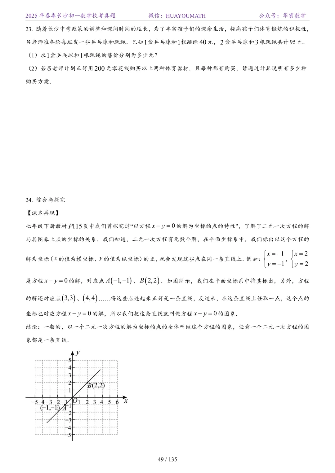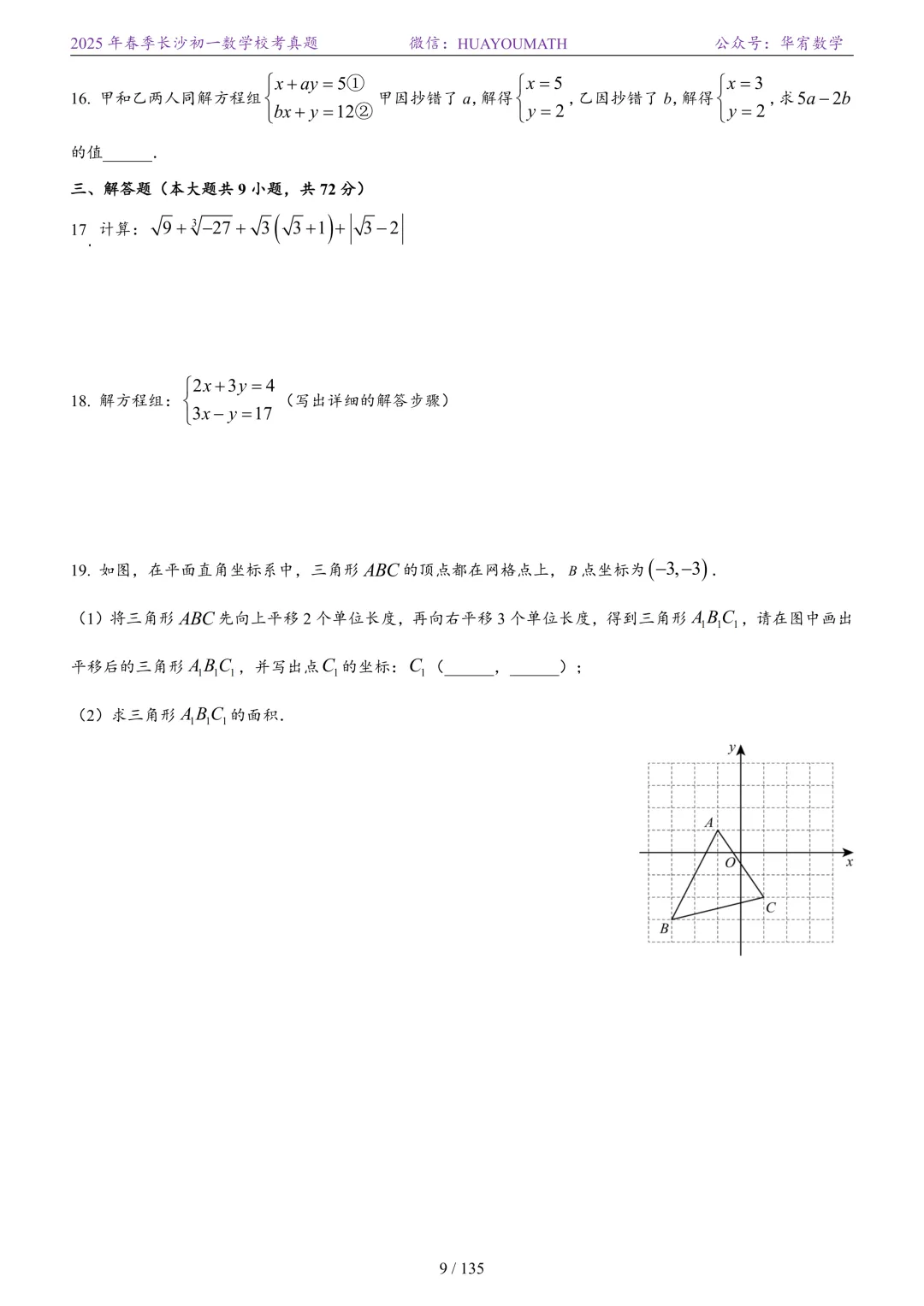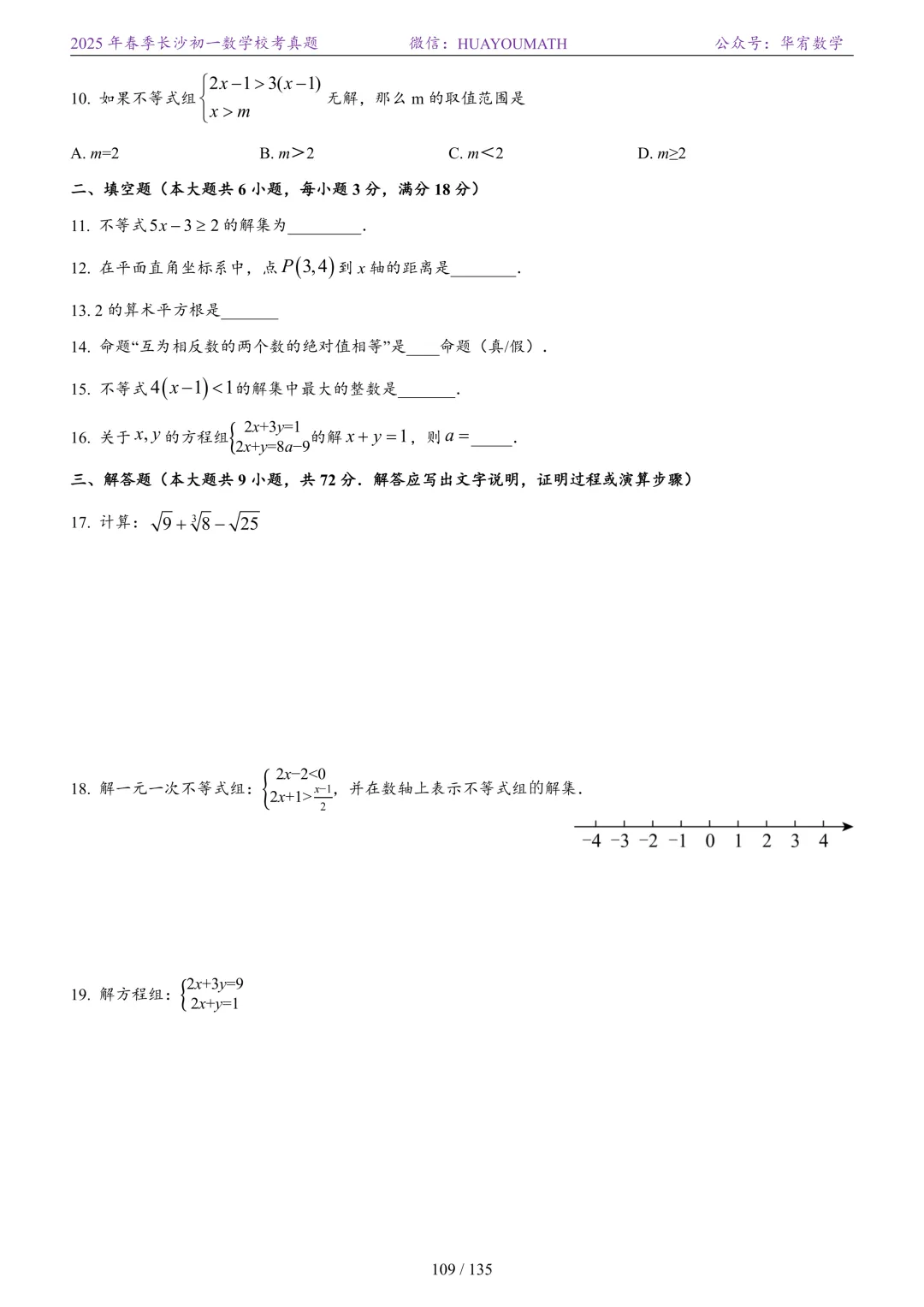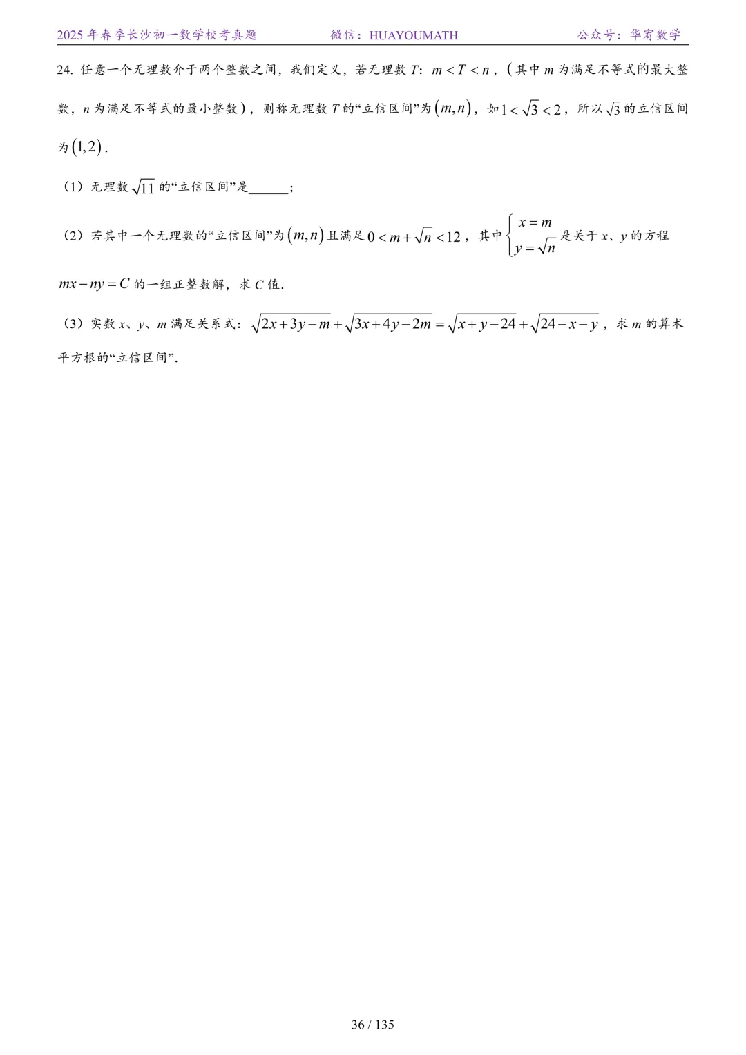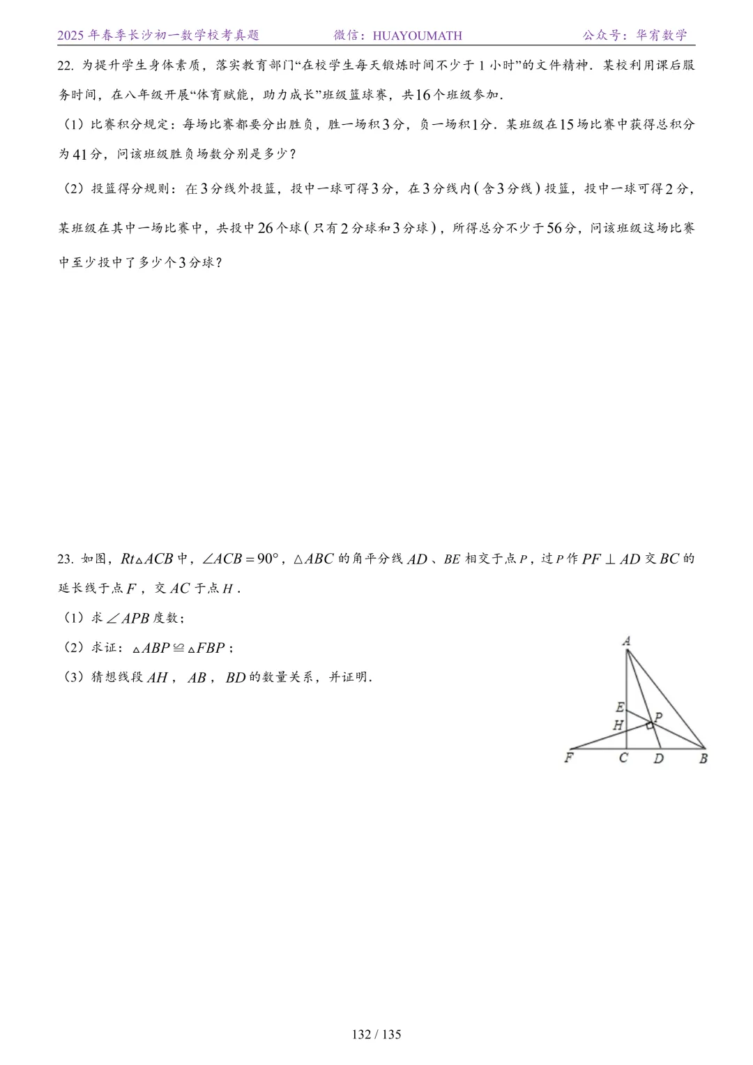 2025年春季长沙初三数学校考真题