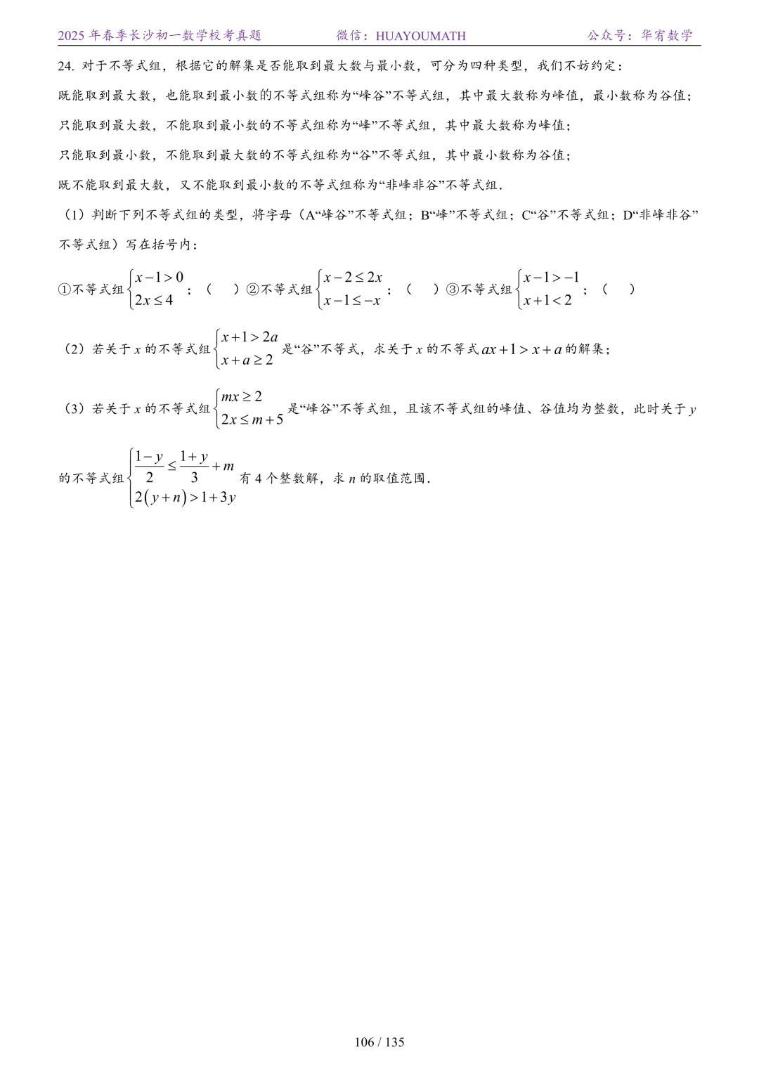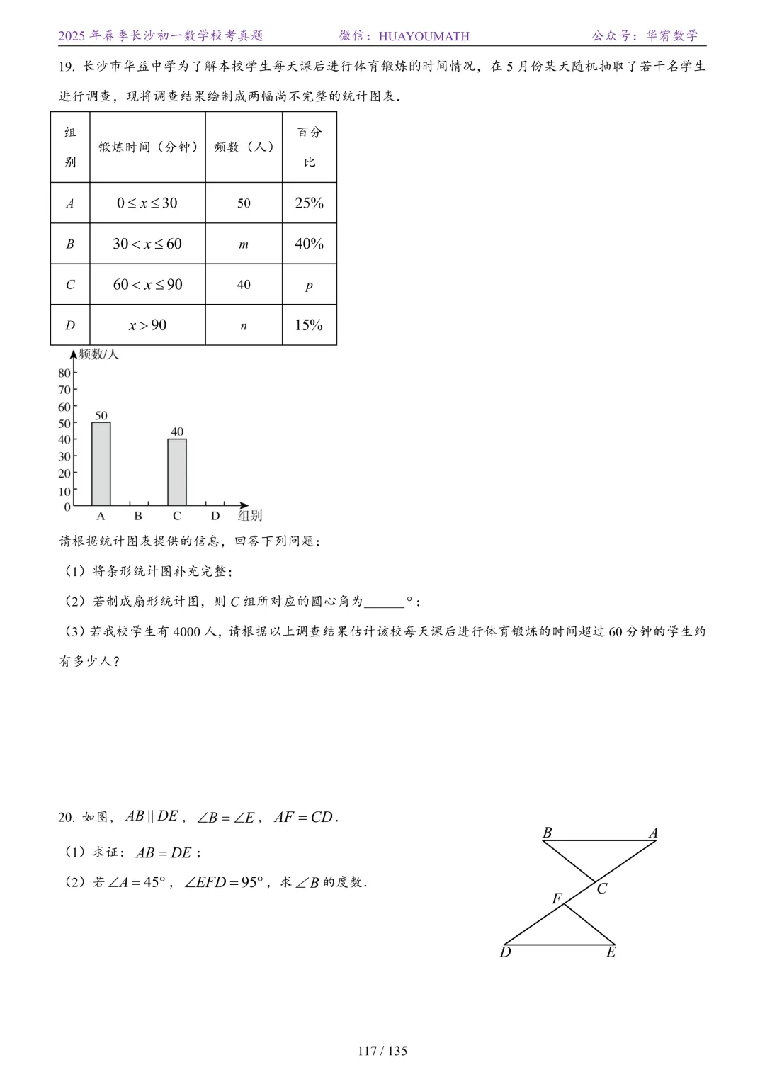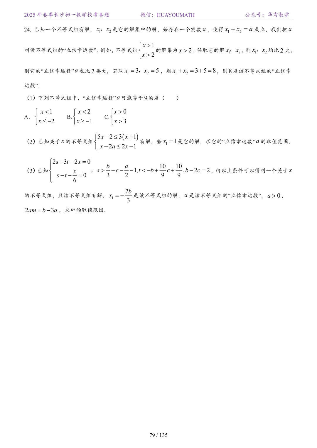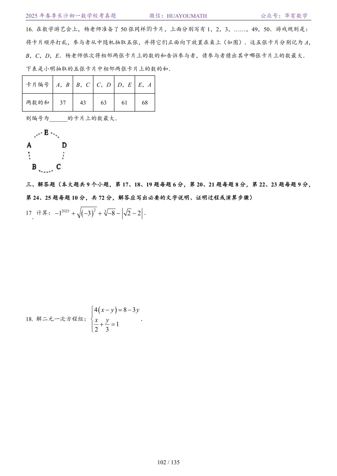 2025年春季长沙初三数学校考真题