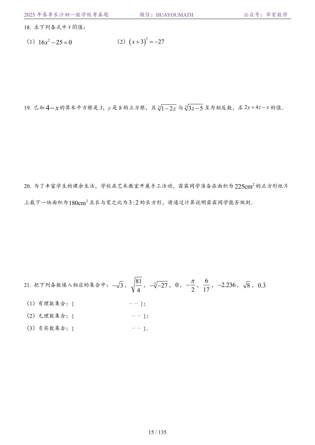 >2025年春季长沙初一数学校考真题