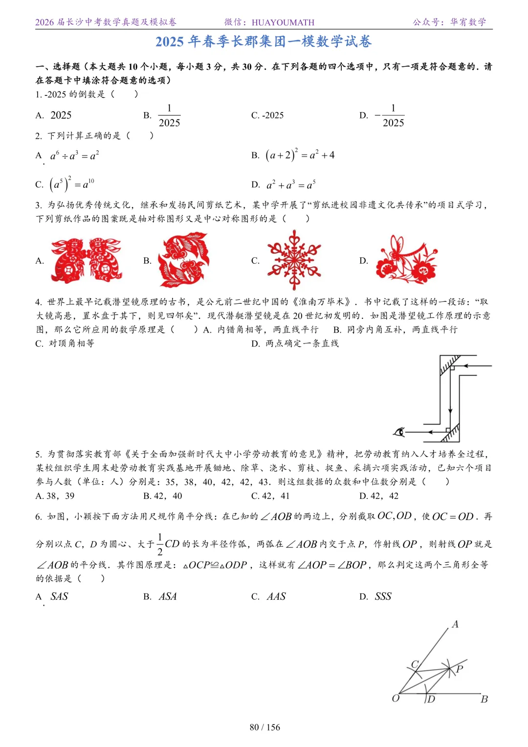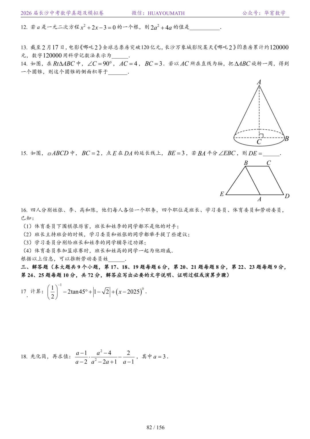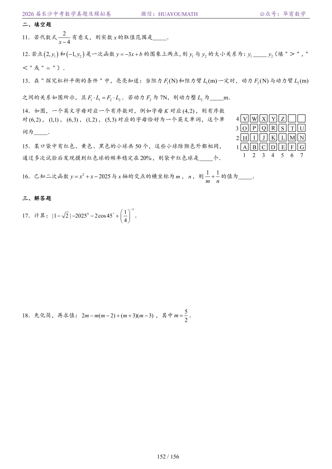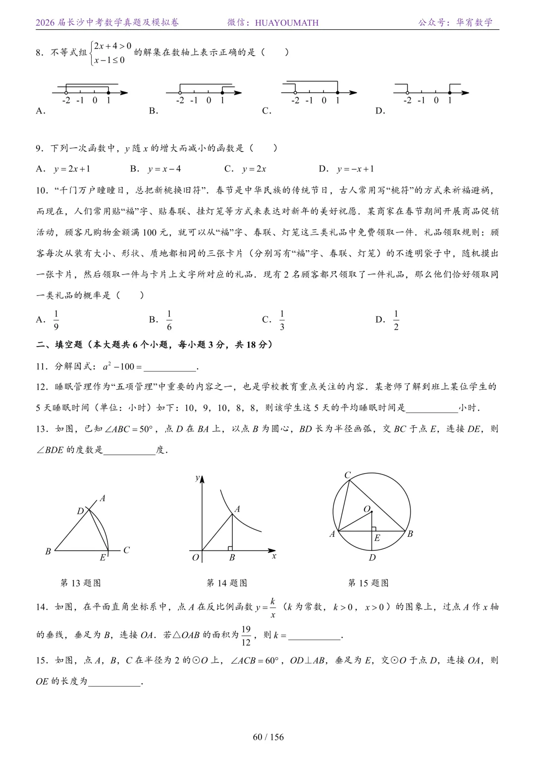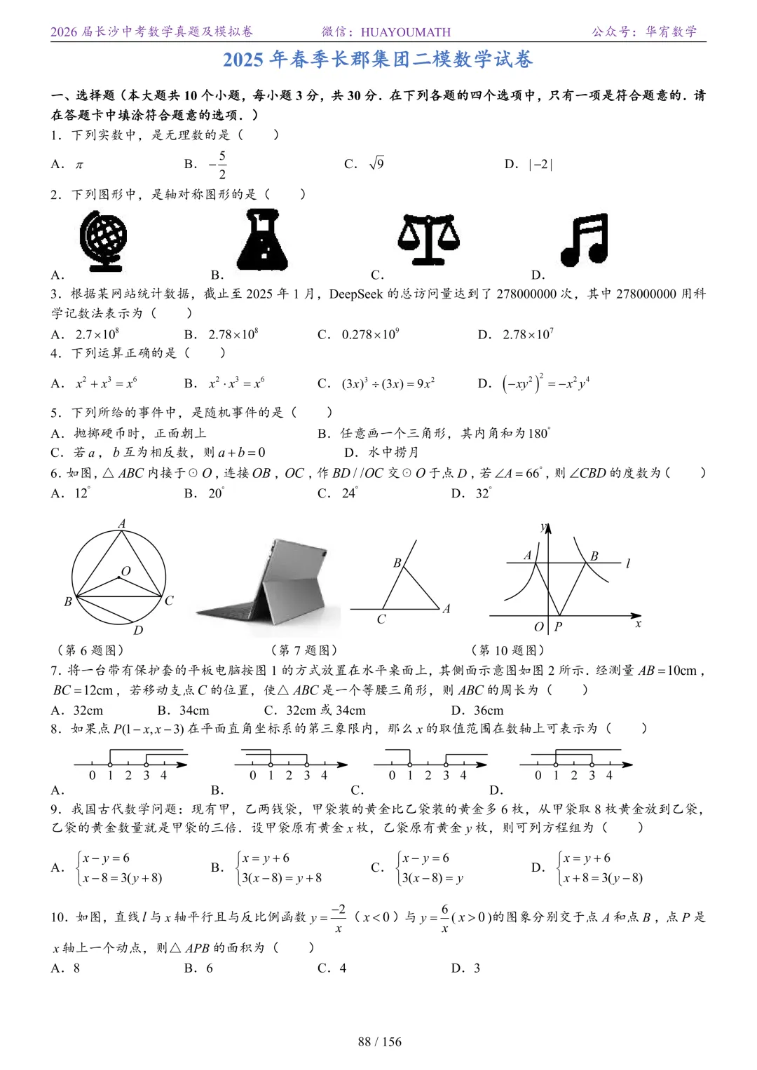 2025年春季长沙初三数学校考真题