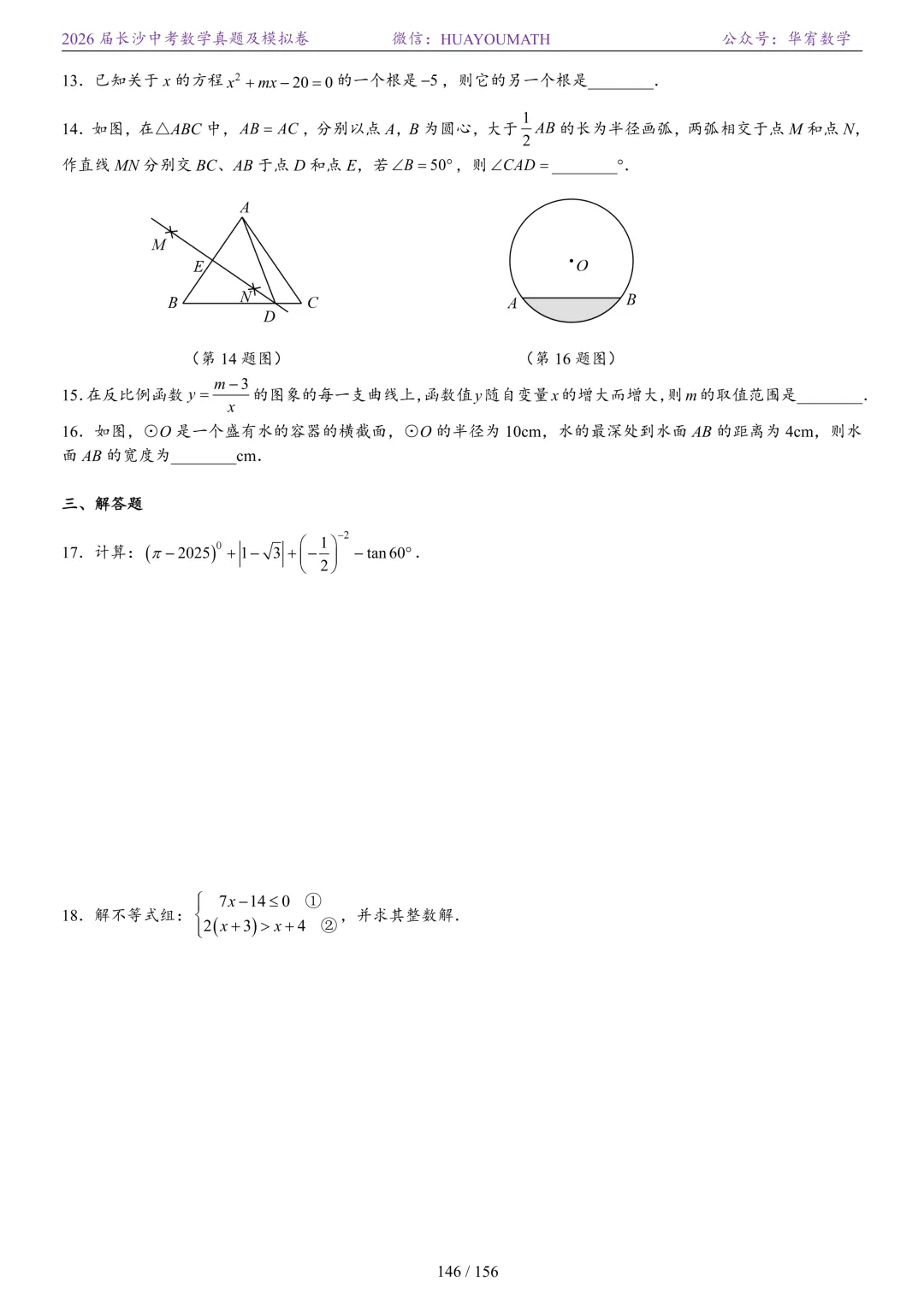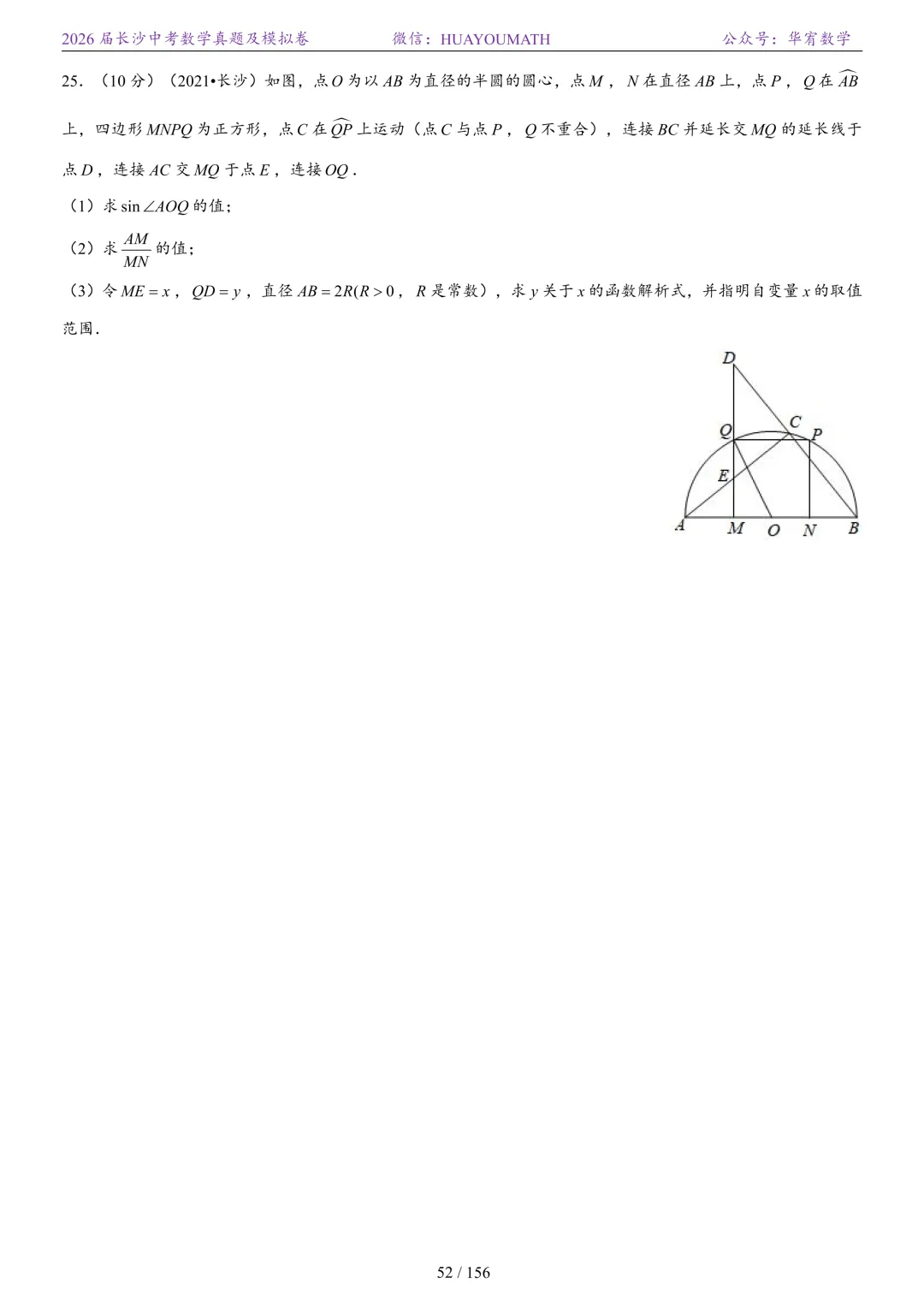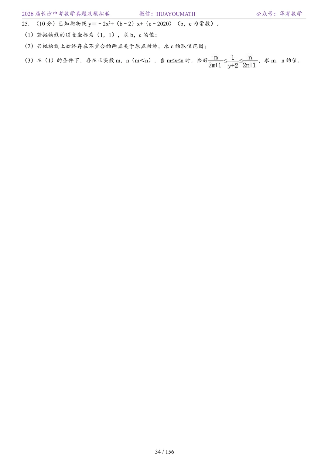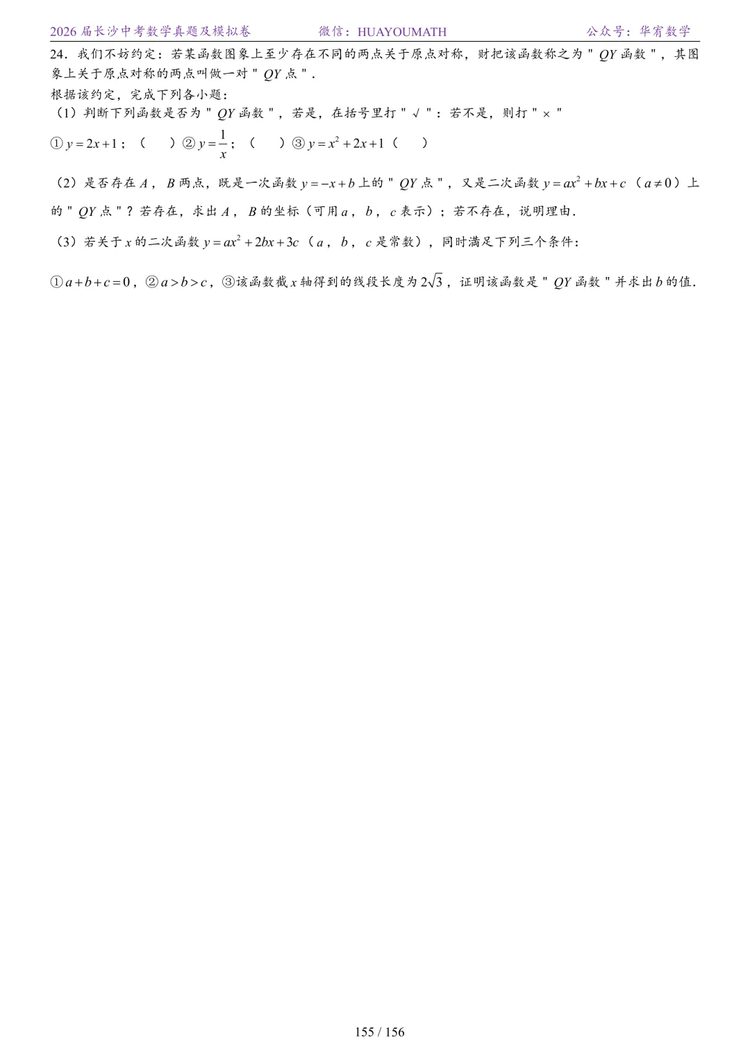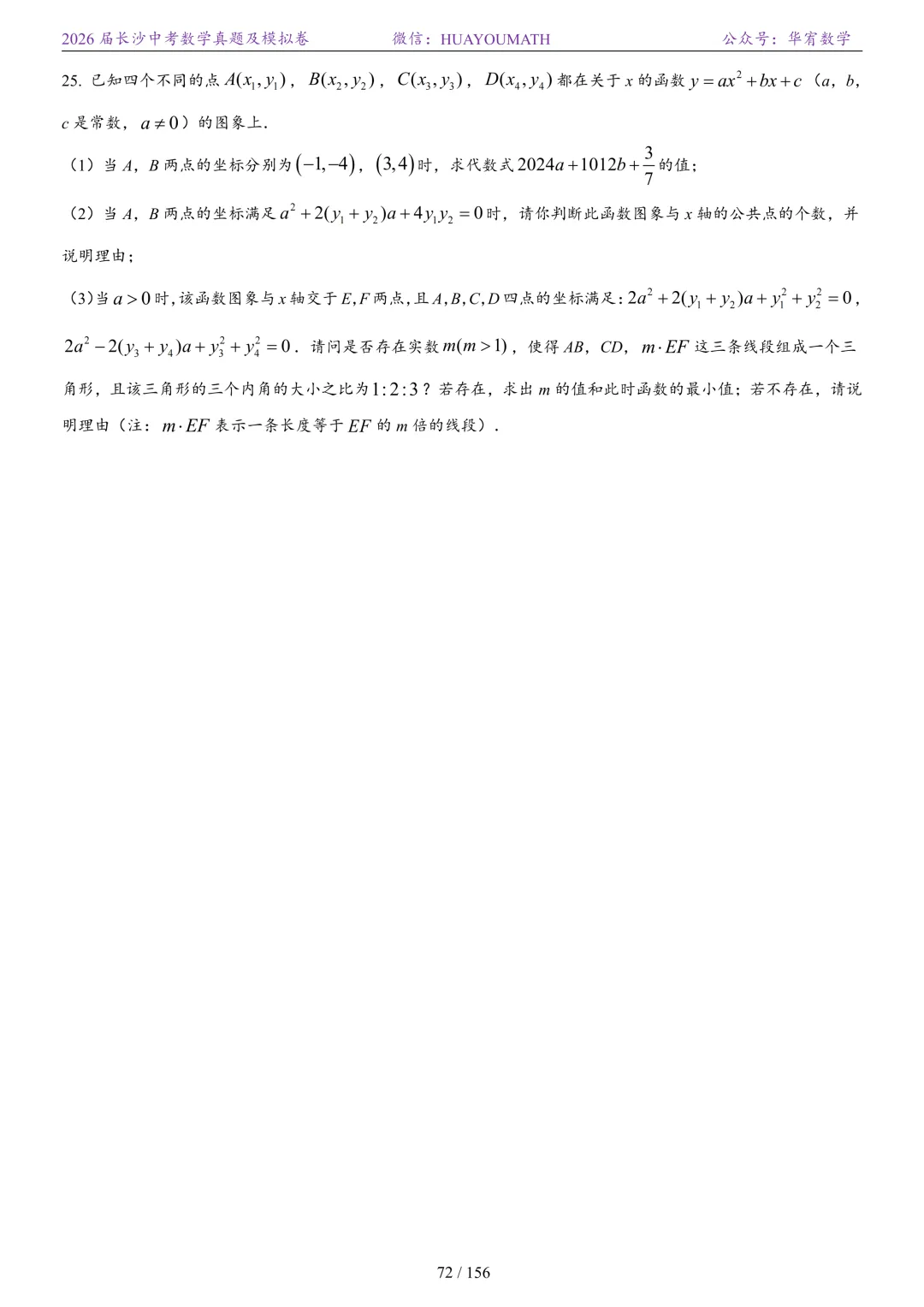 2025年春季长沙初三数学校考真题