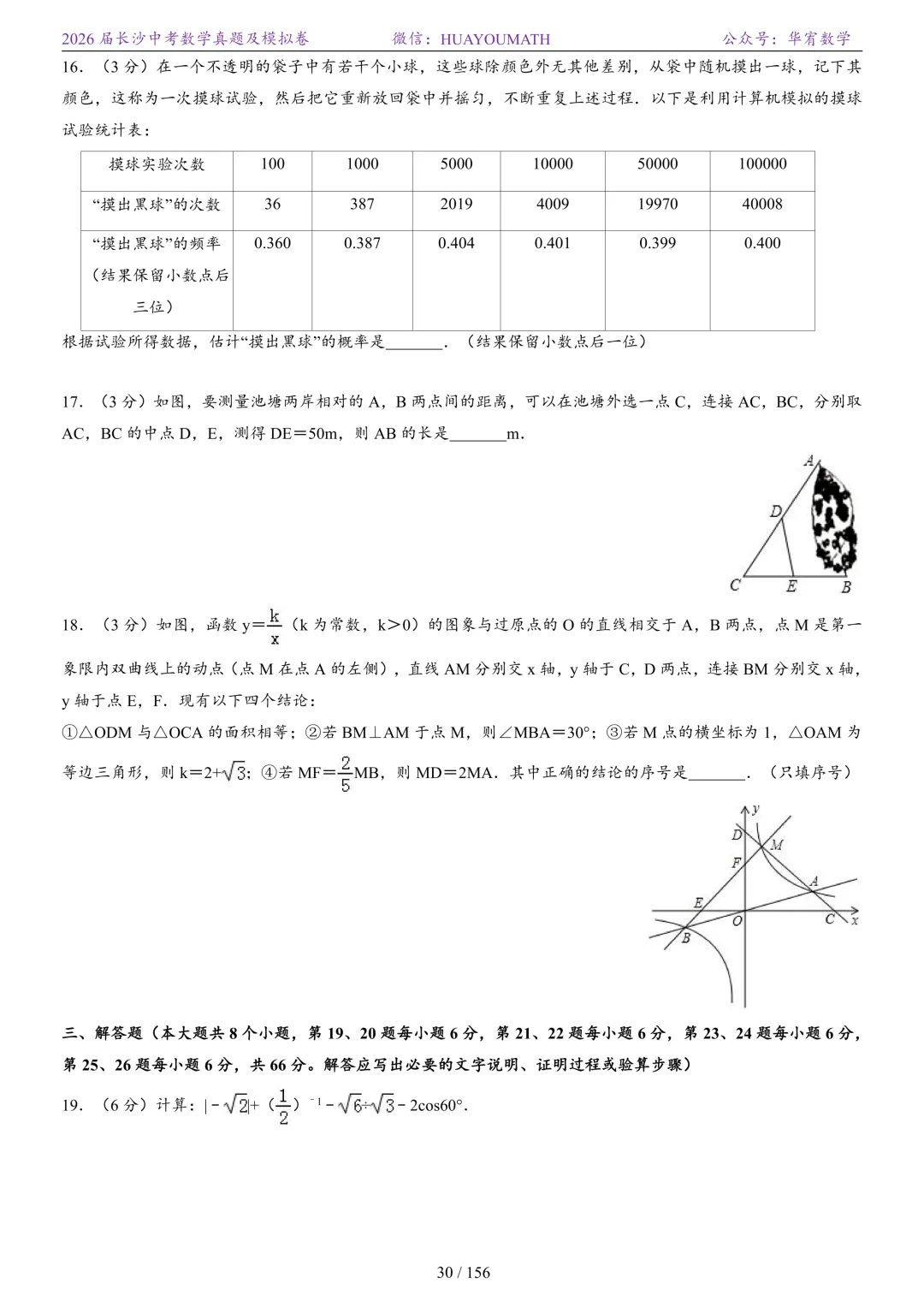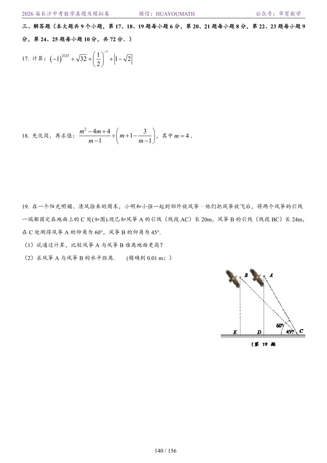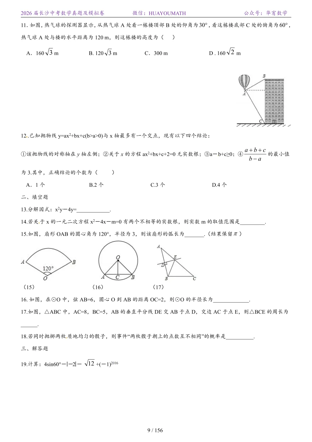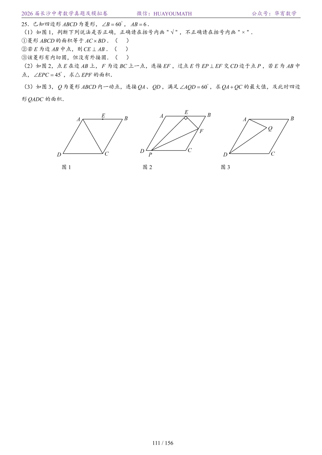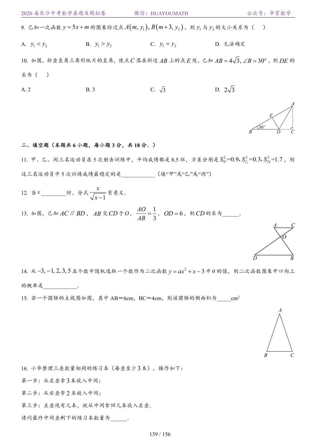 2025年春季长沙初三数学校考真题