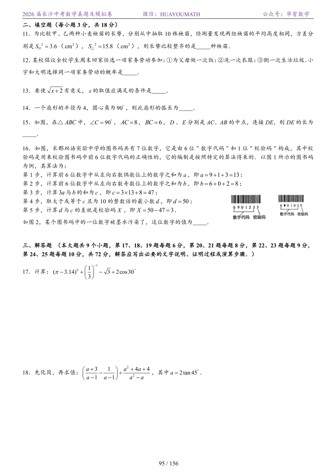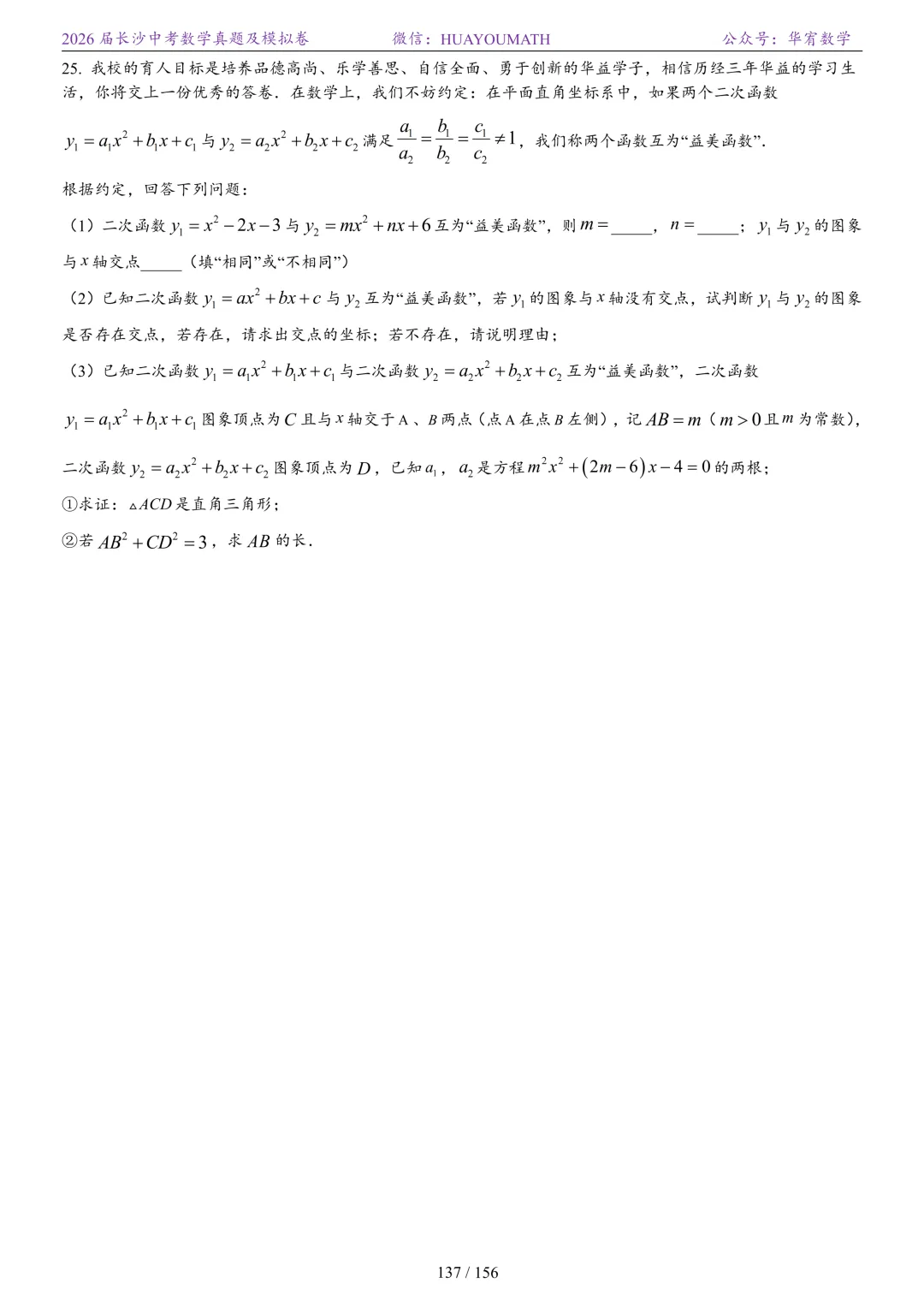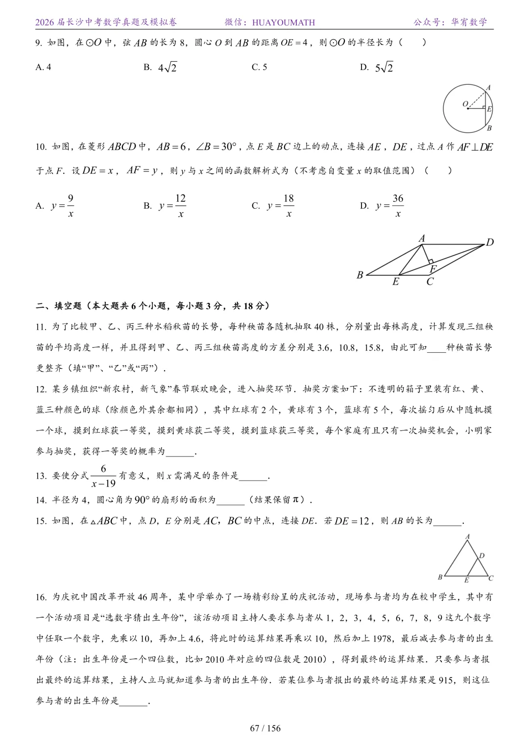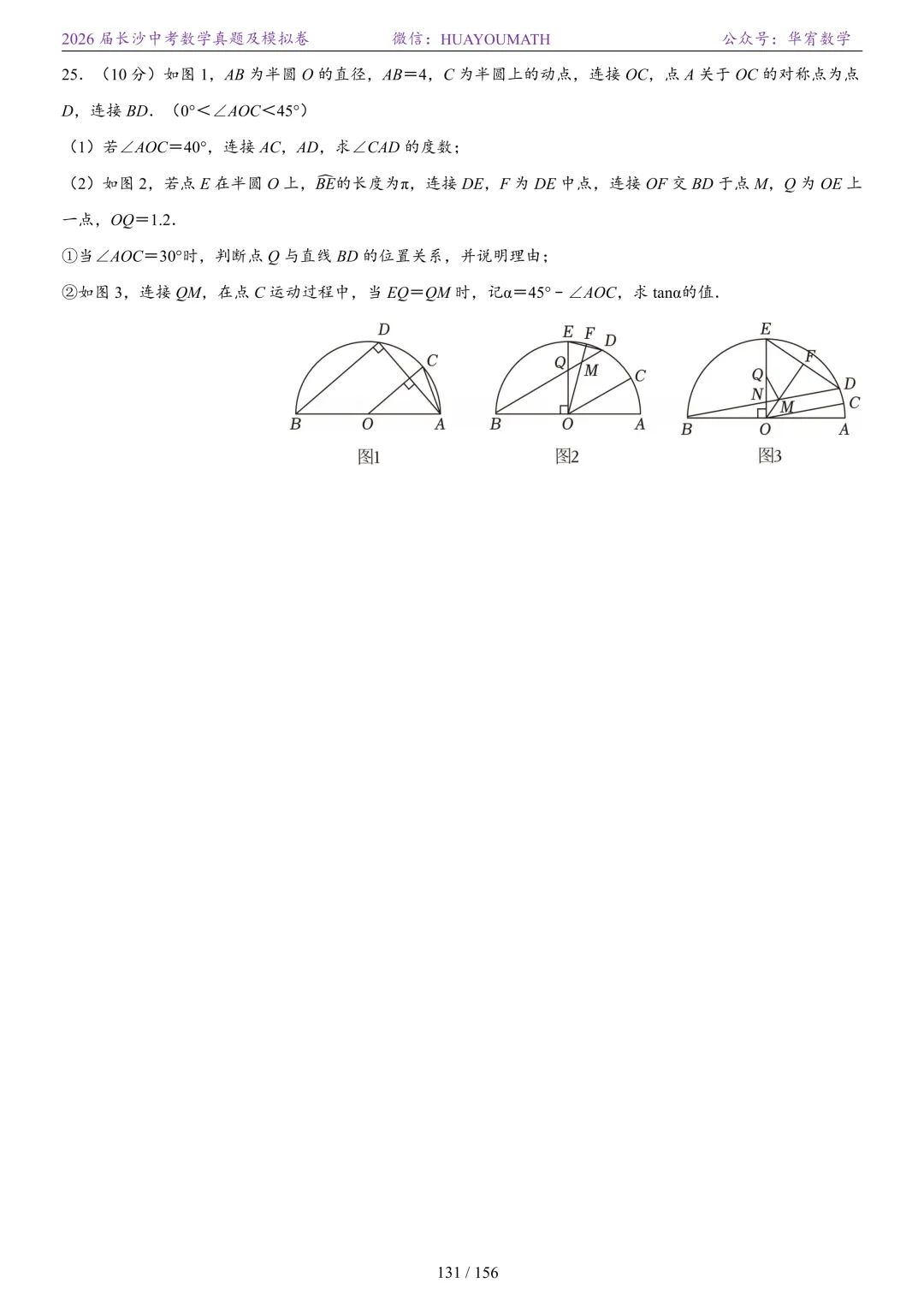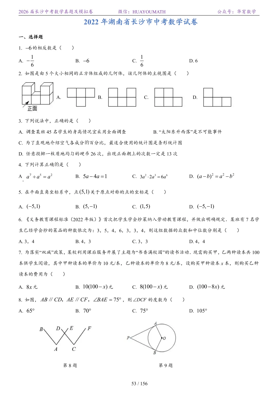 2025年春季长沙初三数学校考真题
