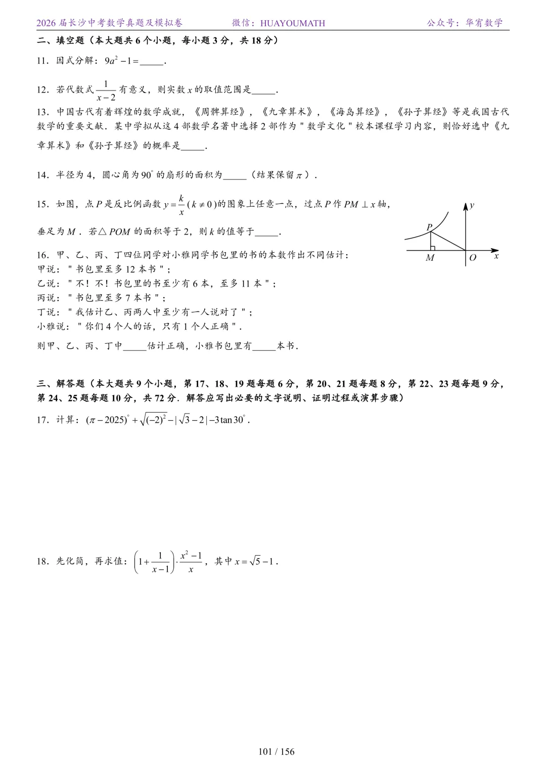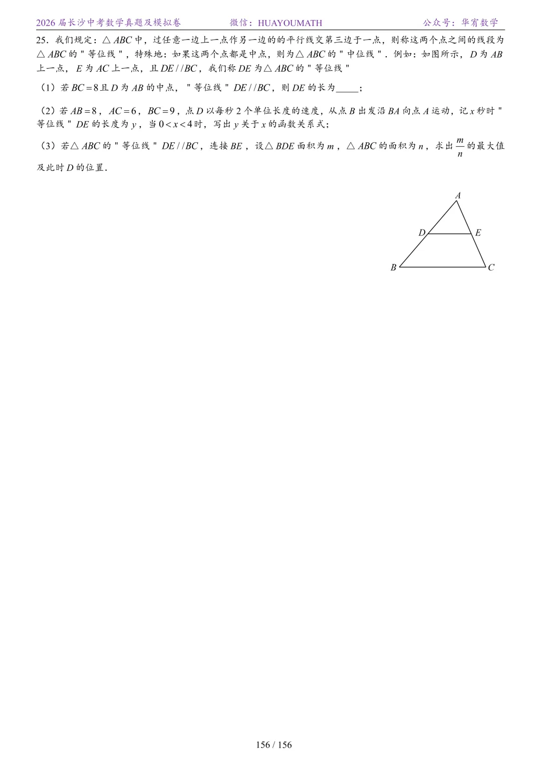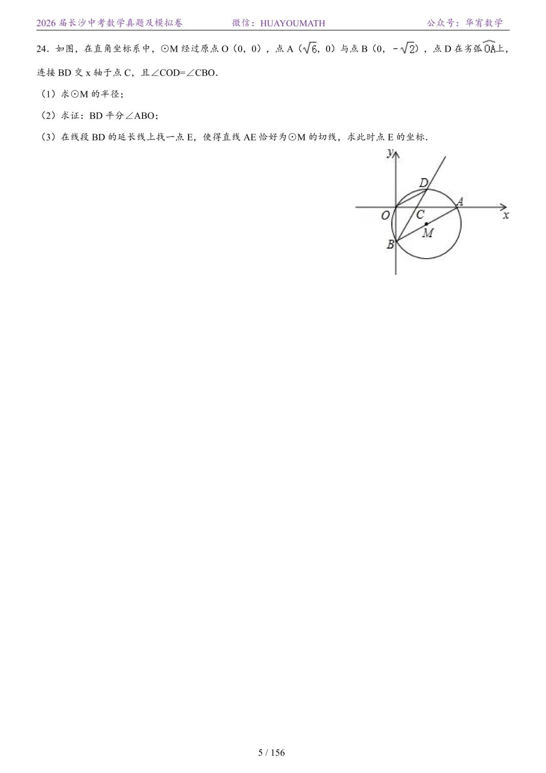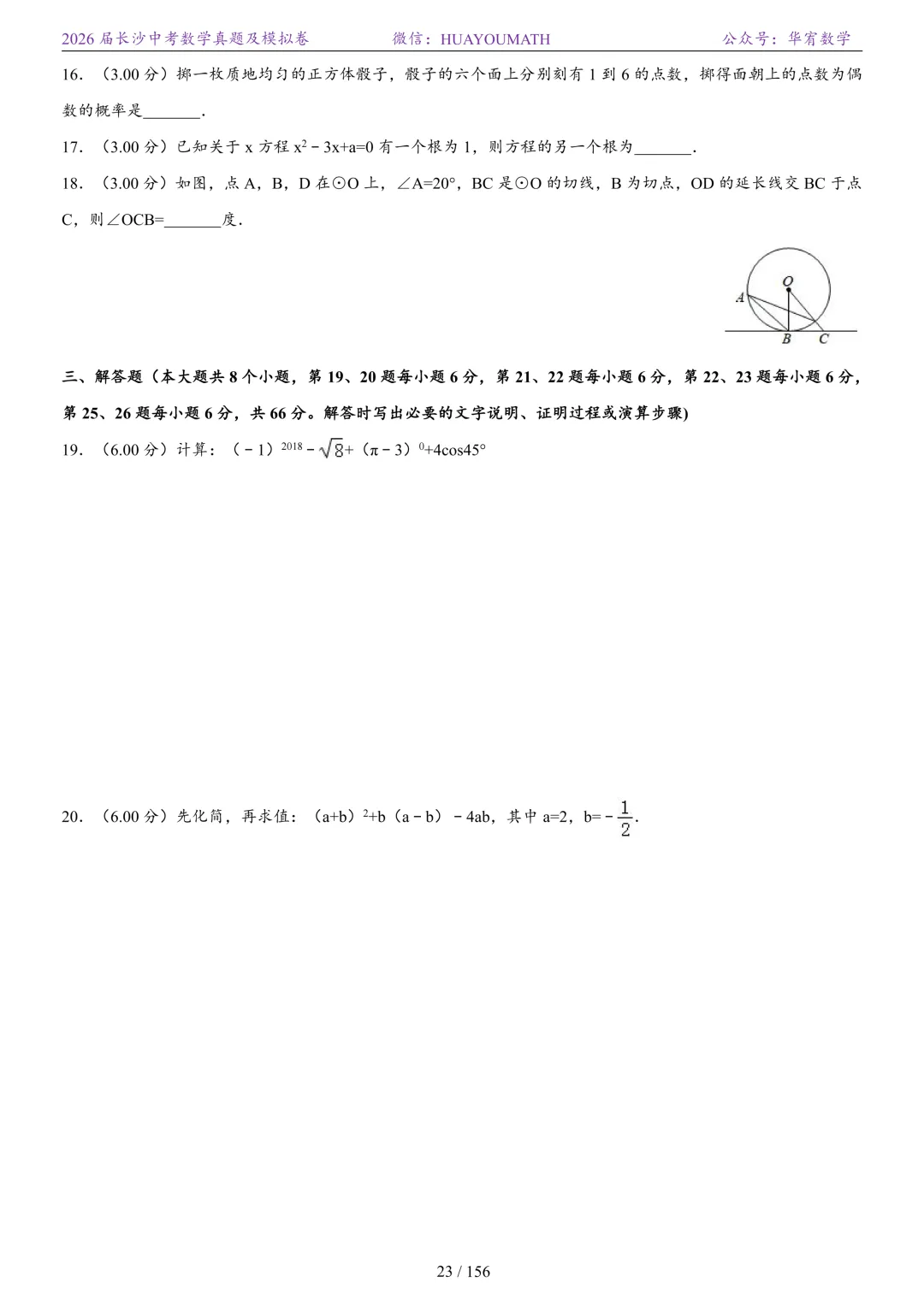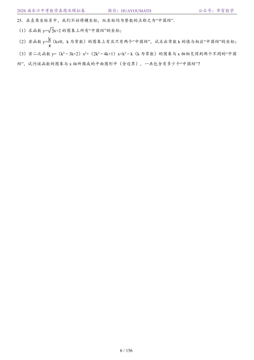 2025年春季长沙初三数学校考真题