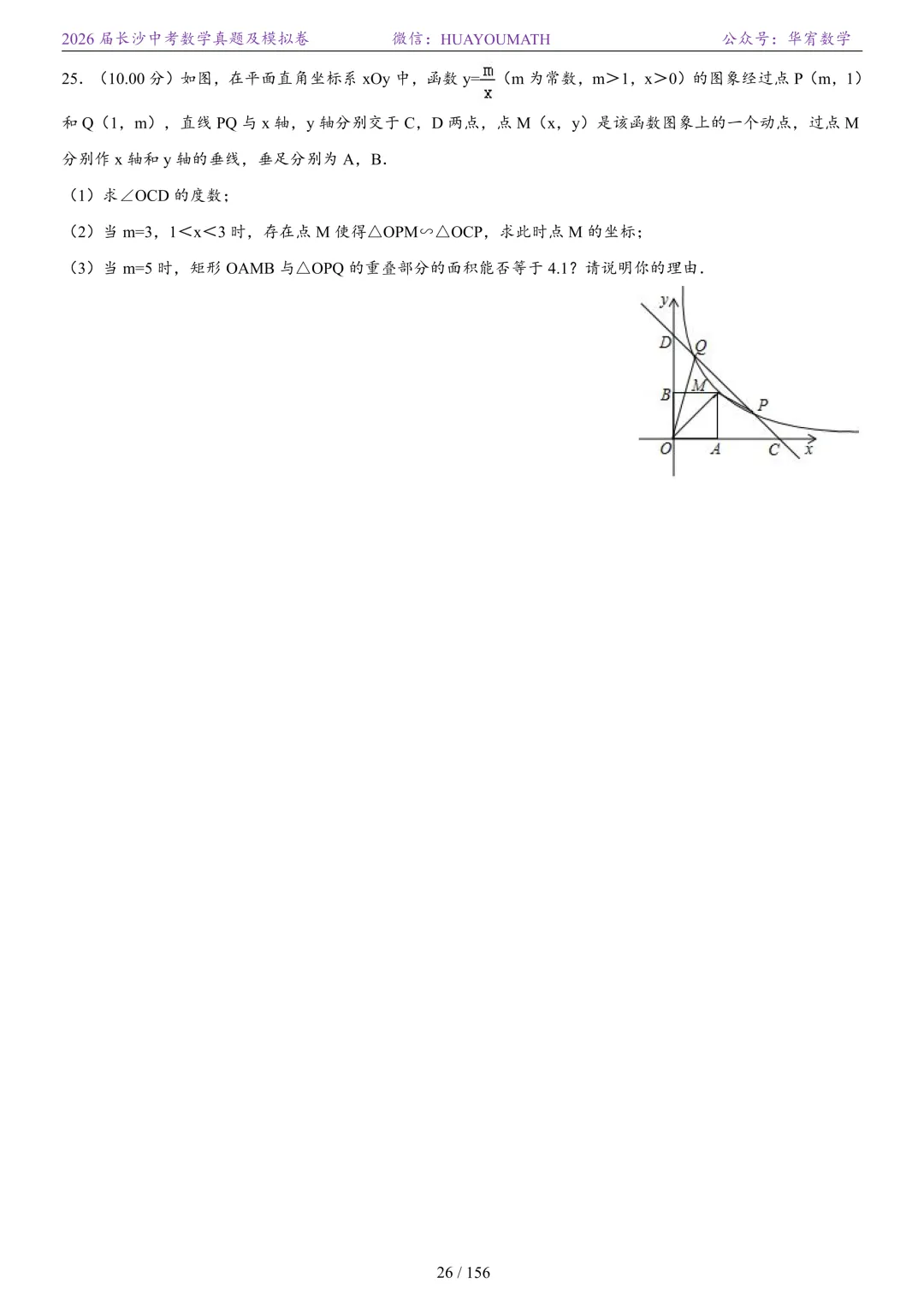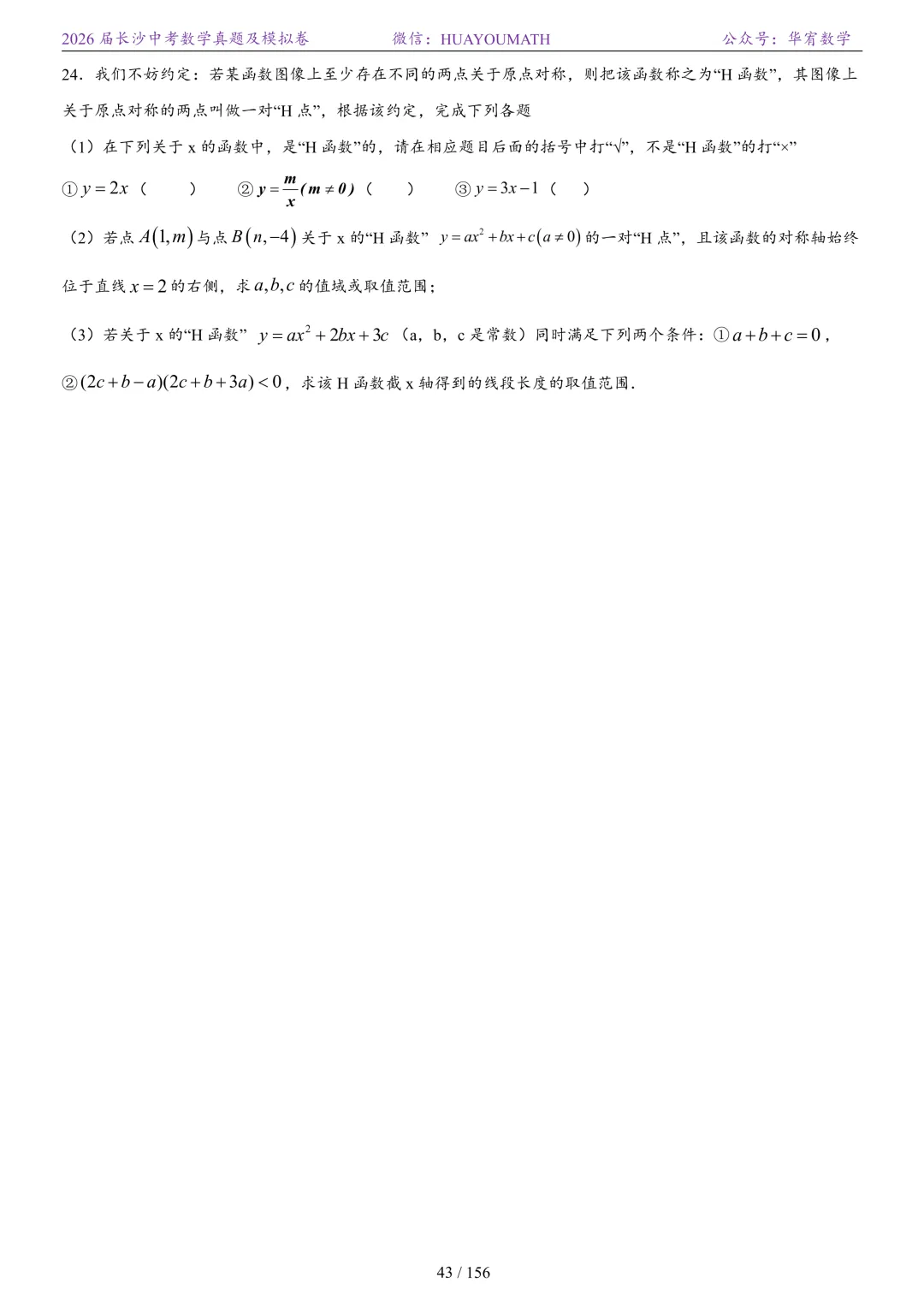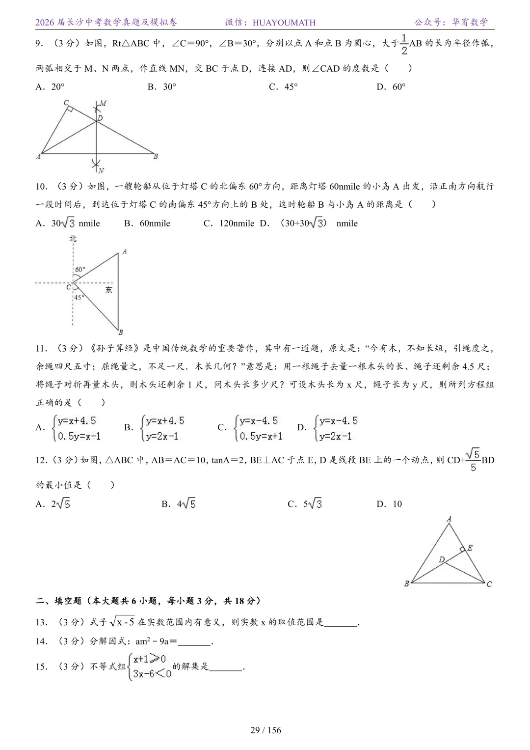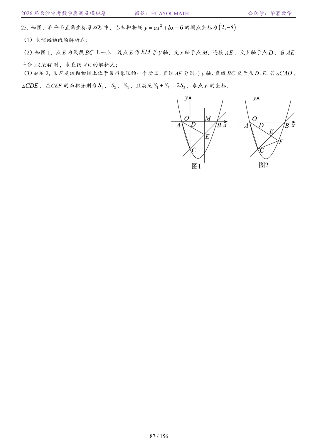 2025年春季长沙初三数学校考真题