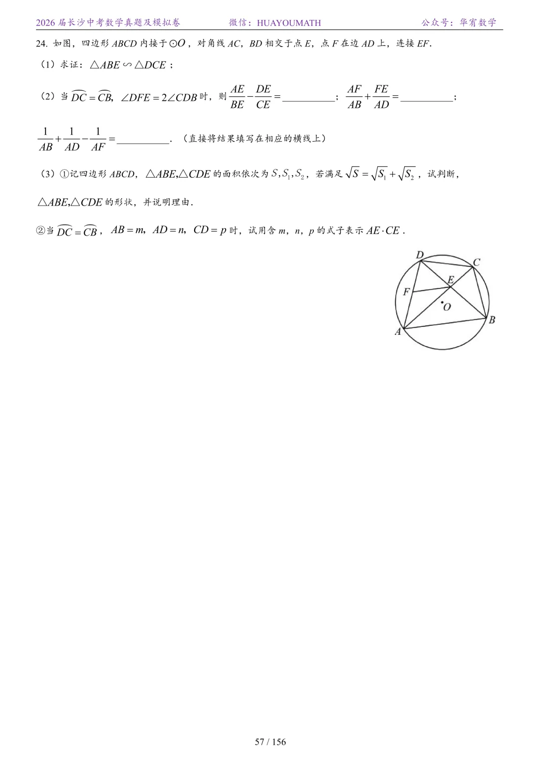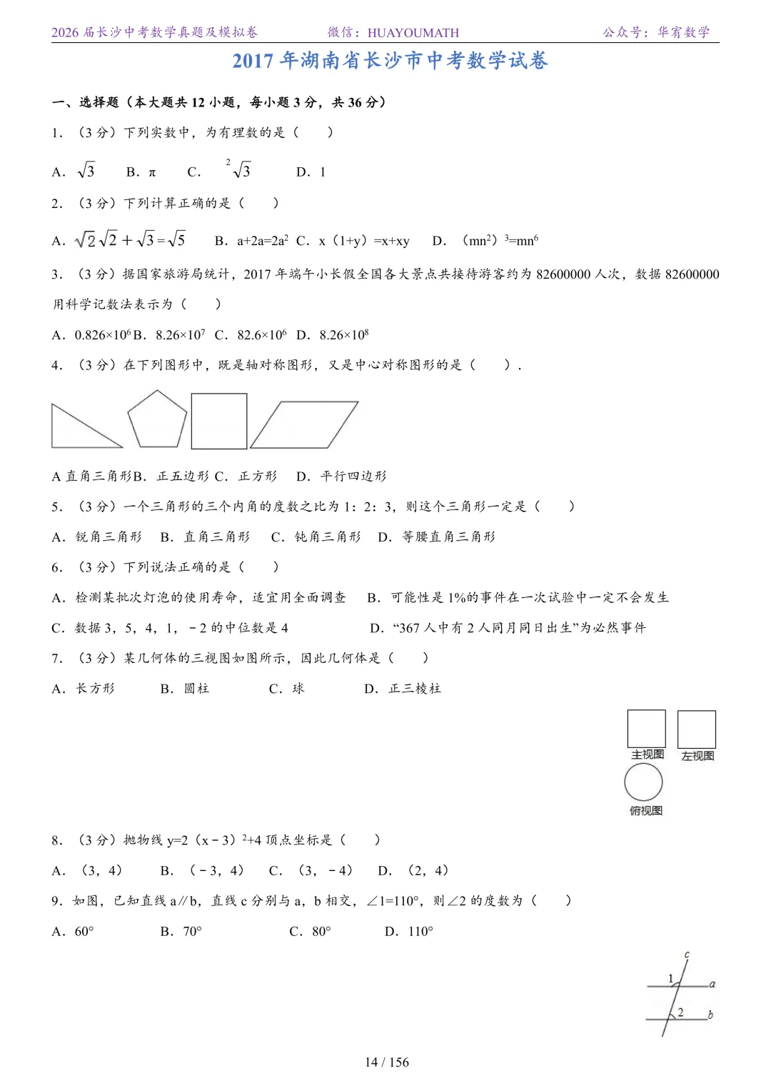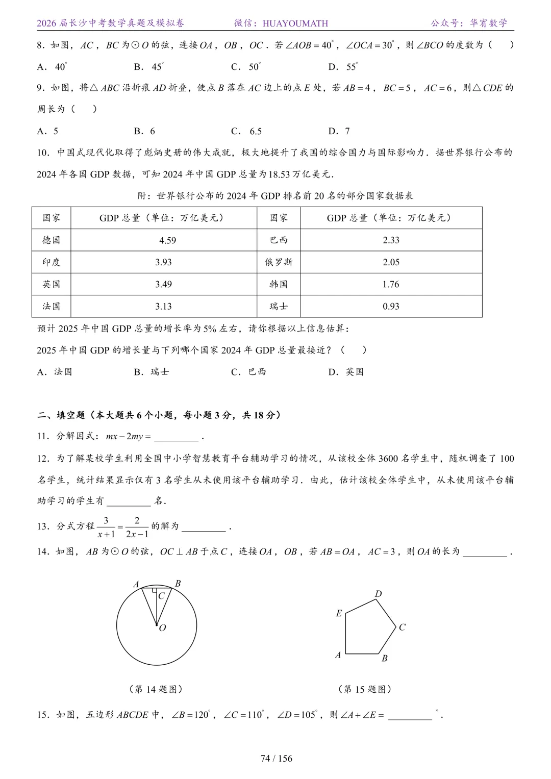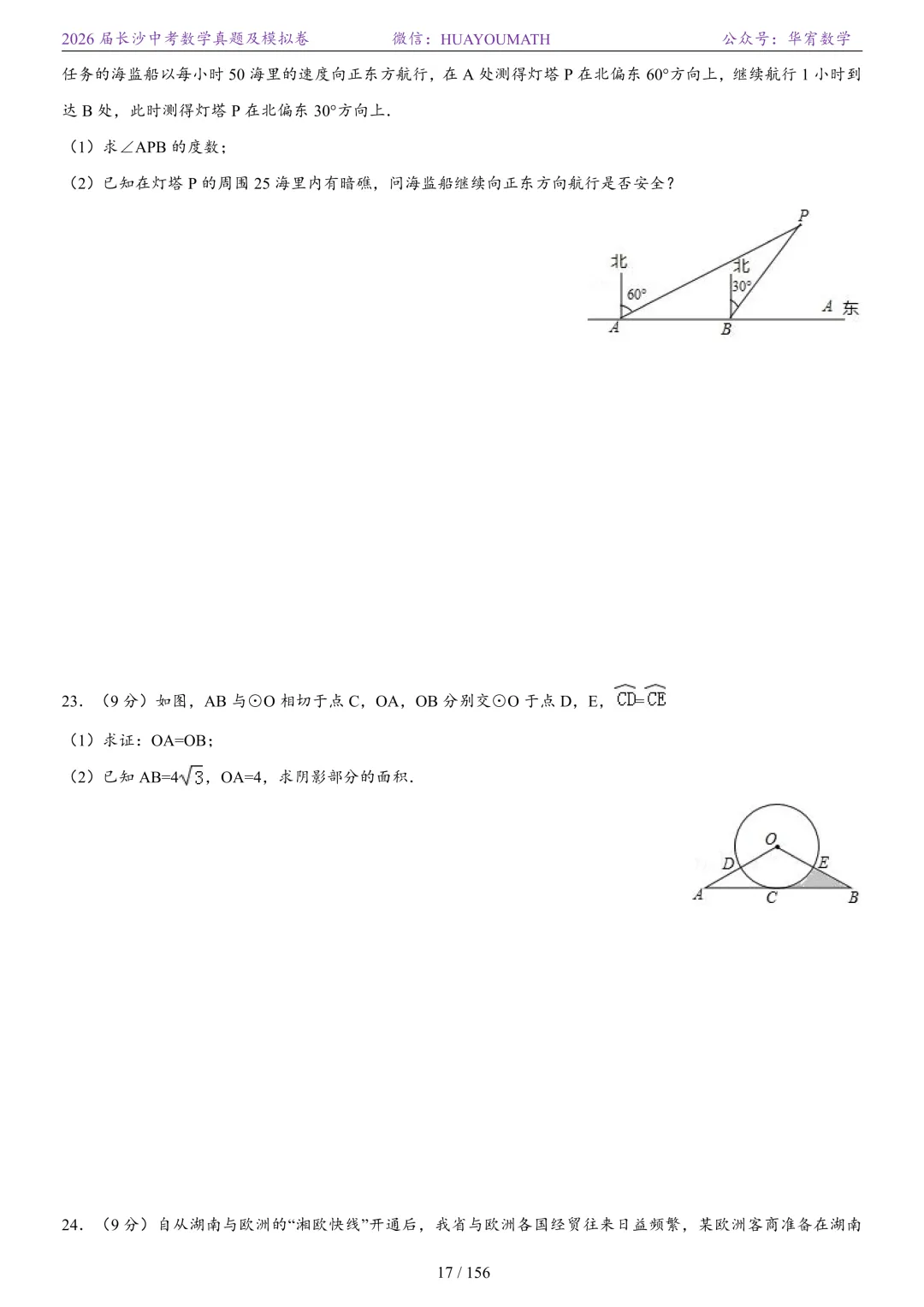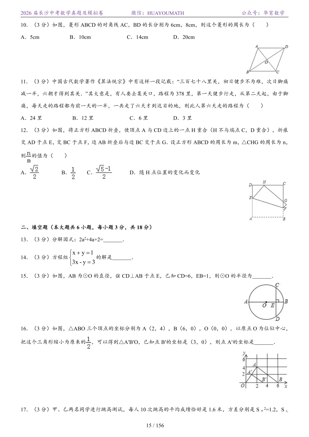 2025年春季长沙初三数学校考真题