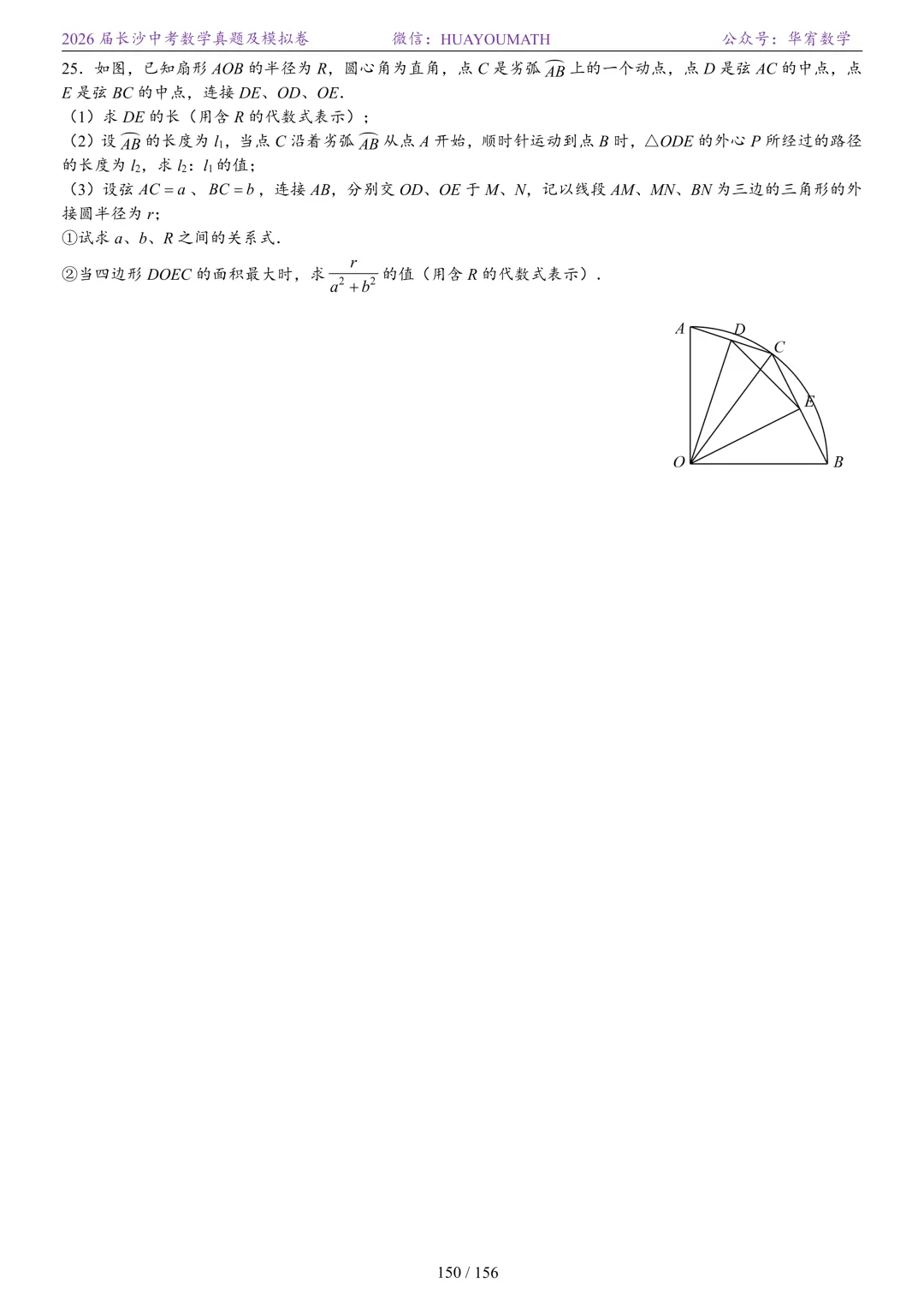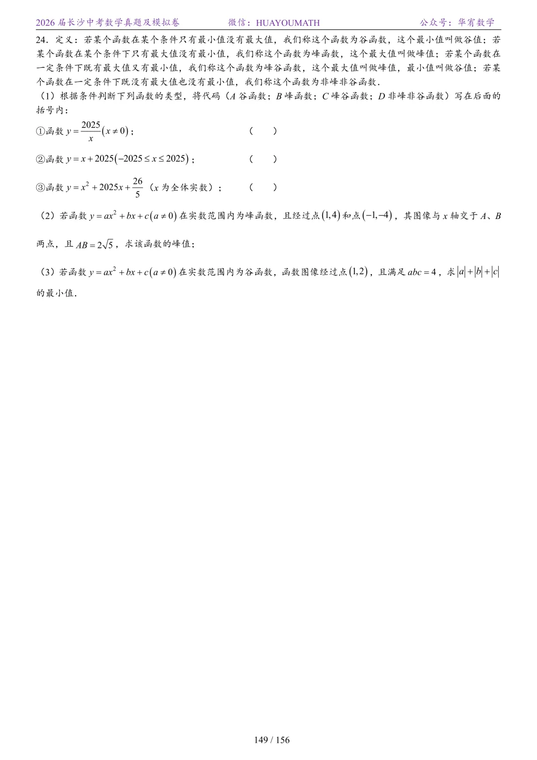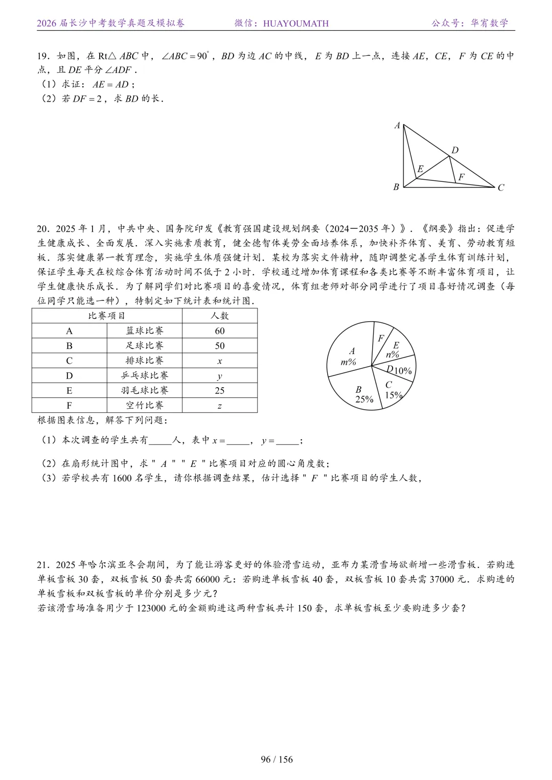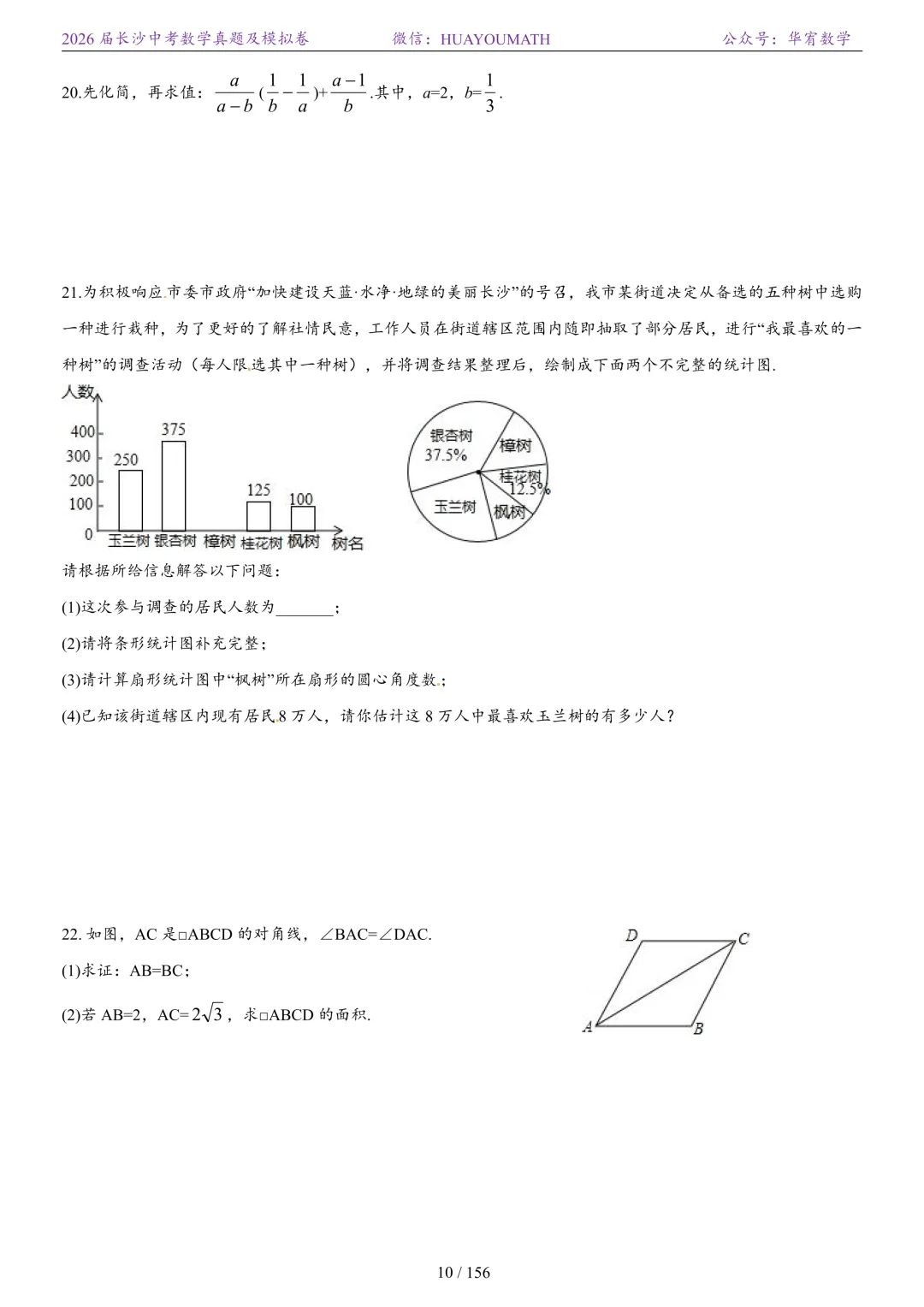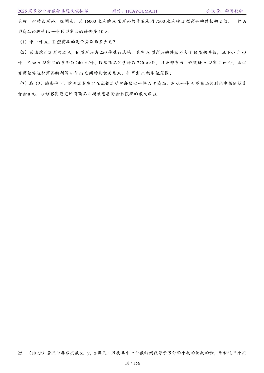 2025年春季长沙初三数学校考真题