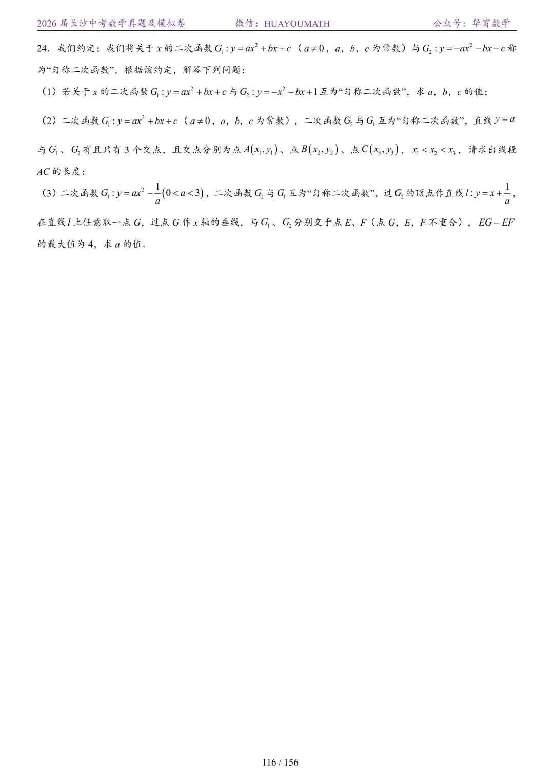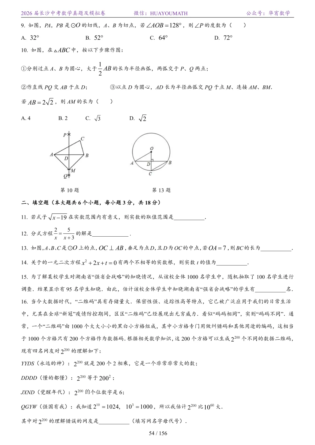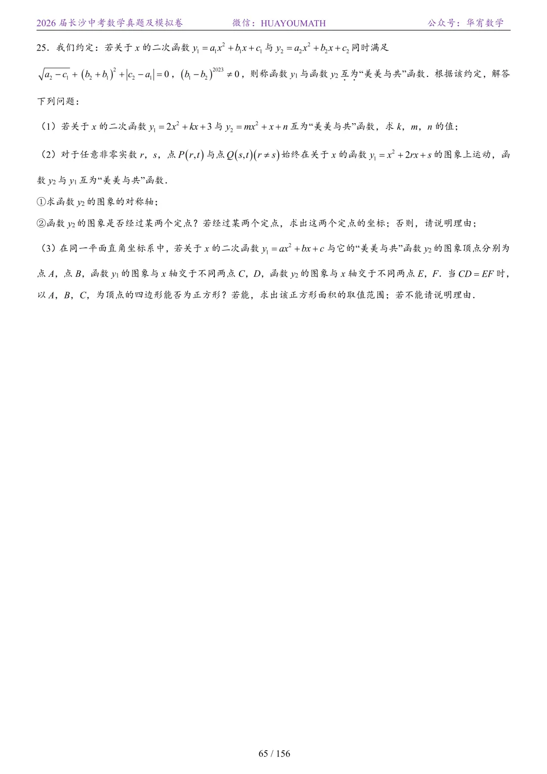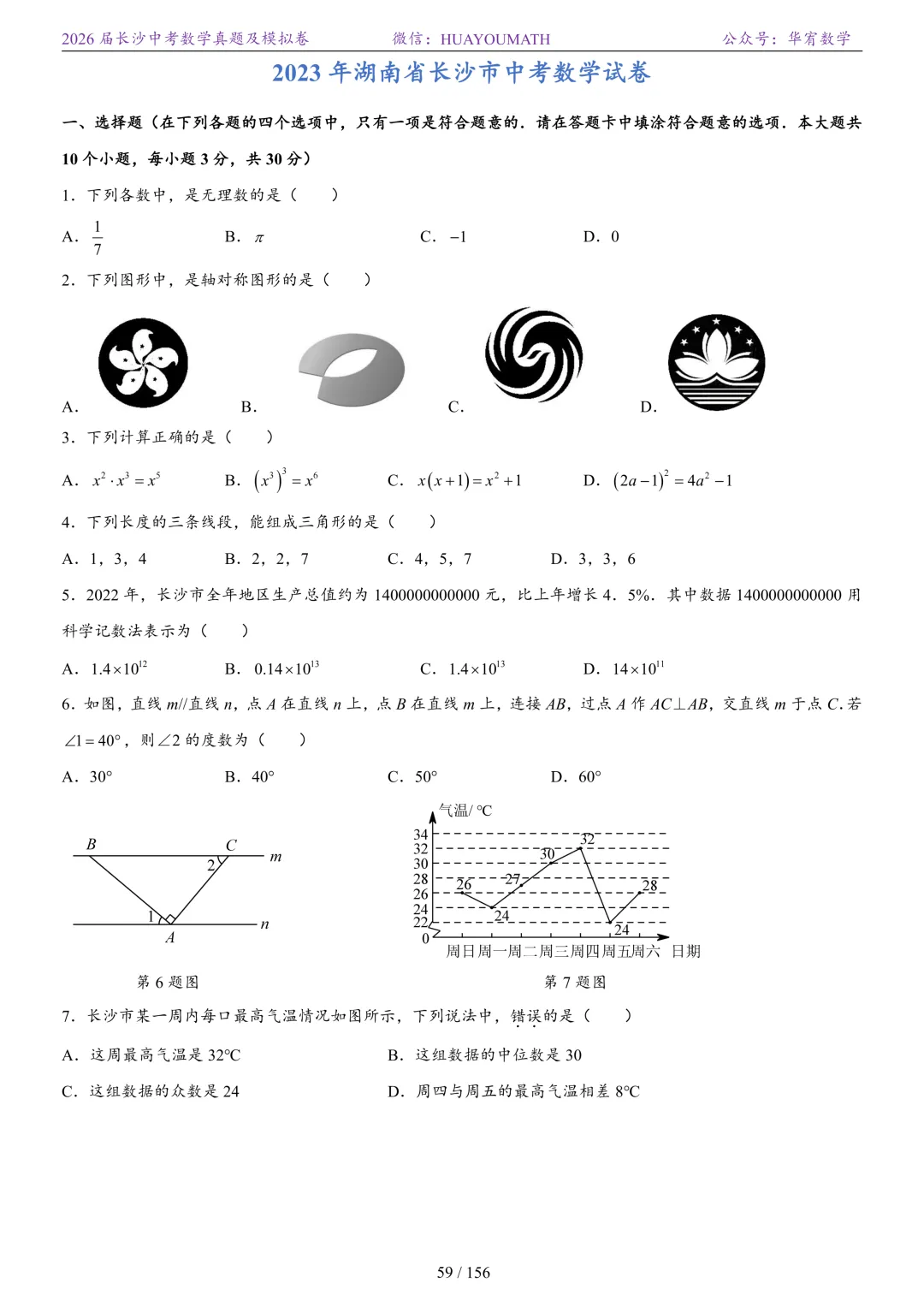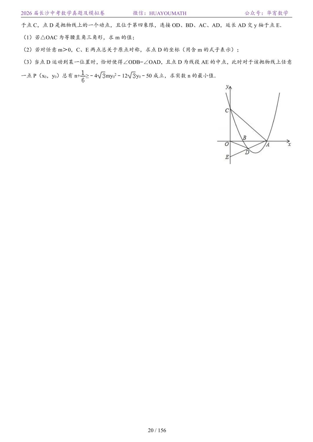 2025年春季长沙初三数学校考真题