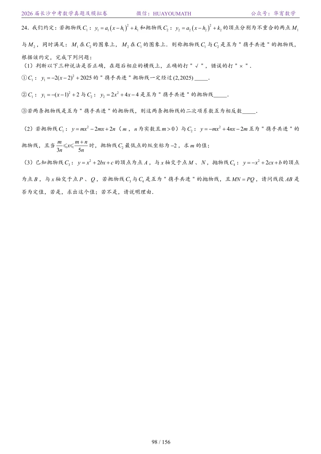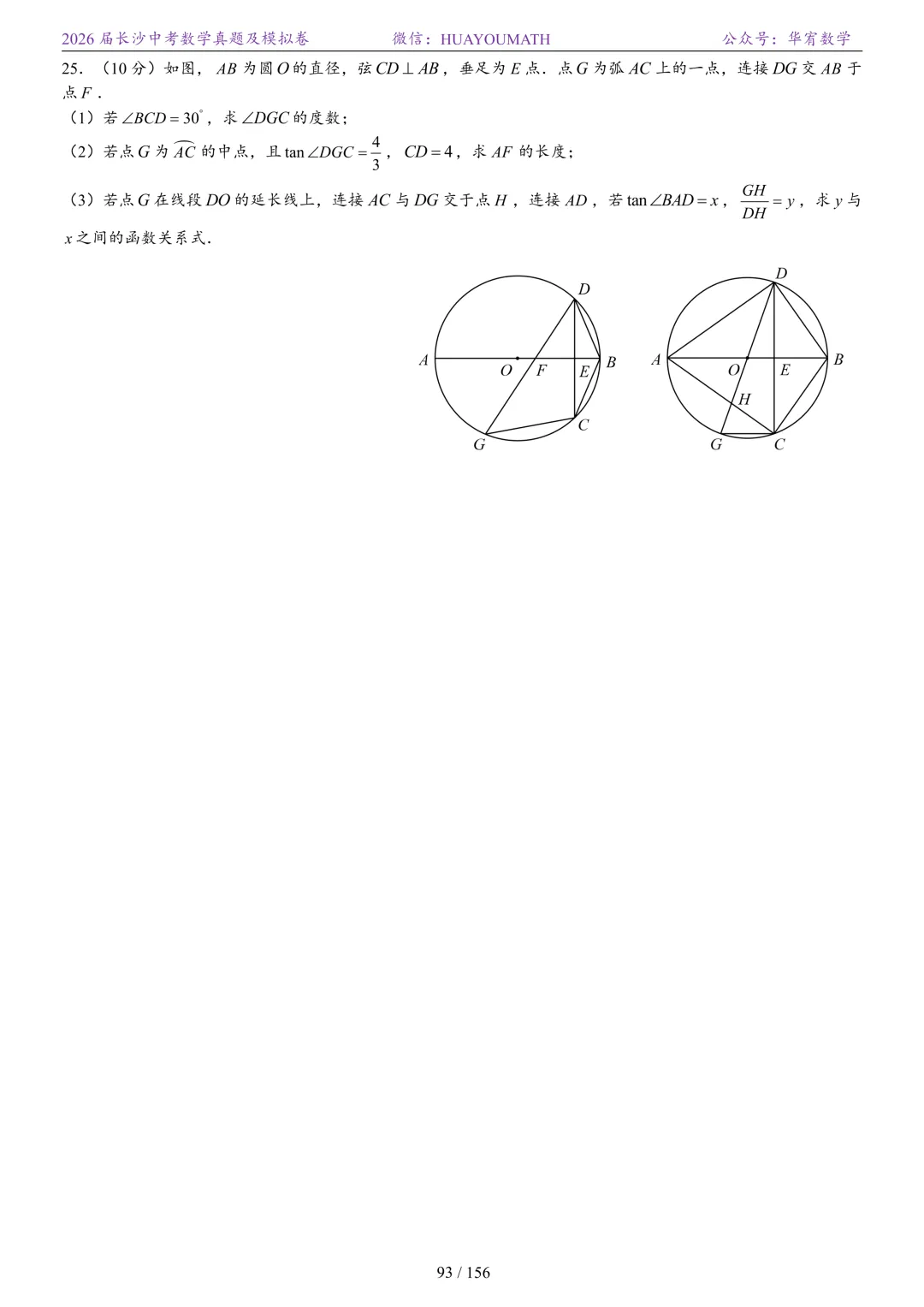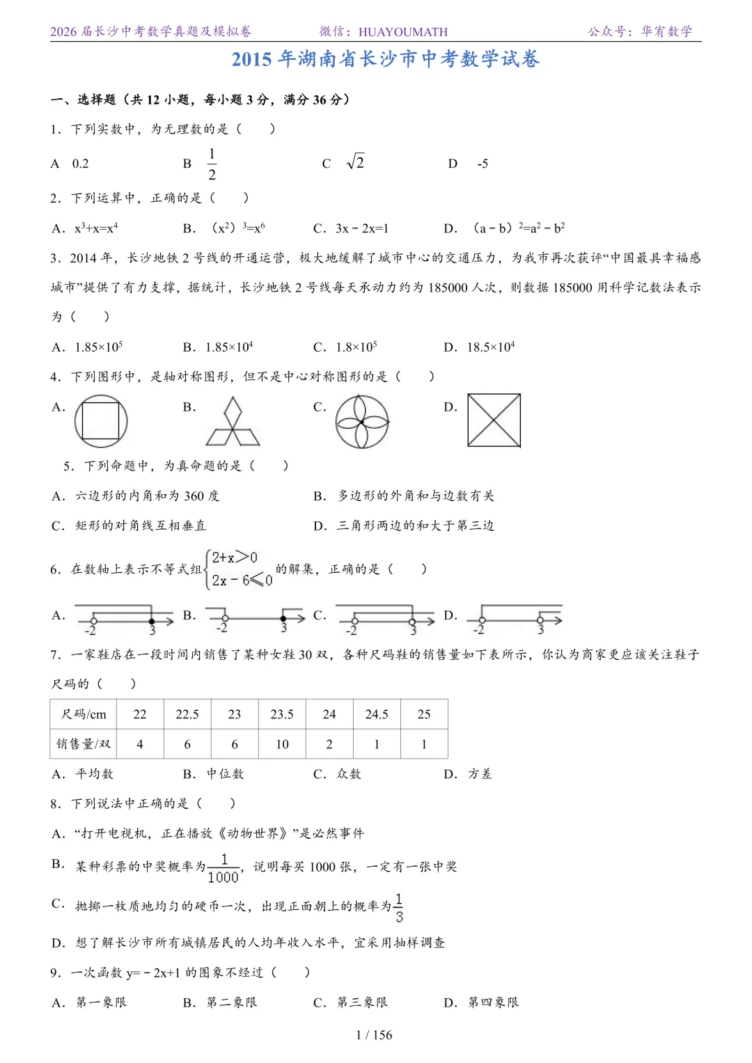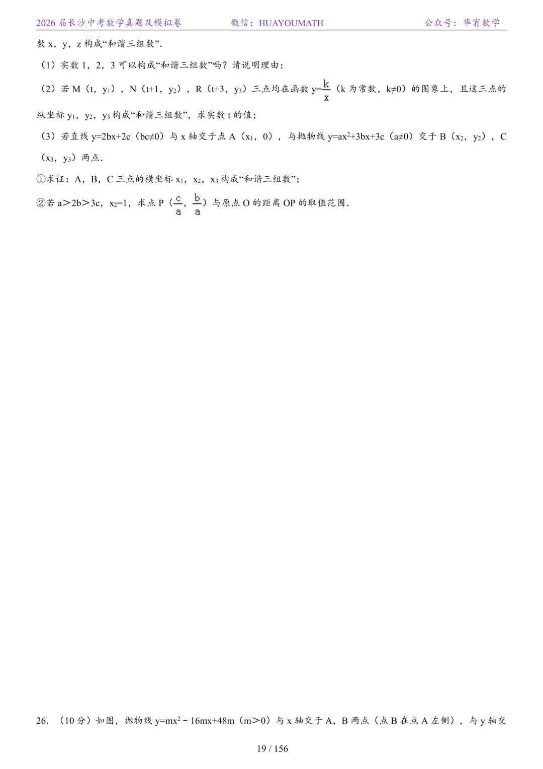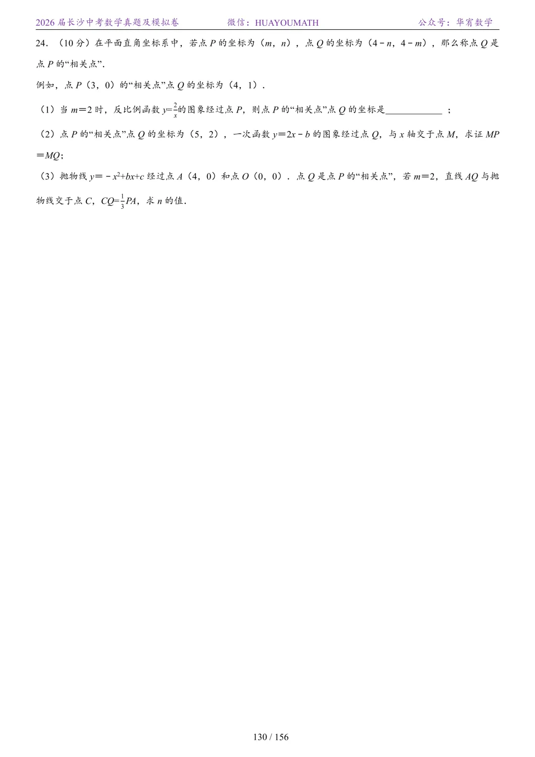 2025年春季长沙初三数学校考真题