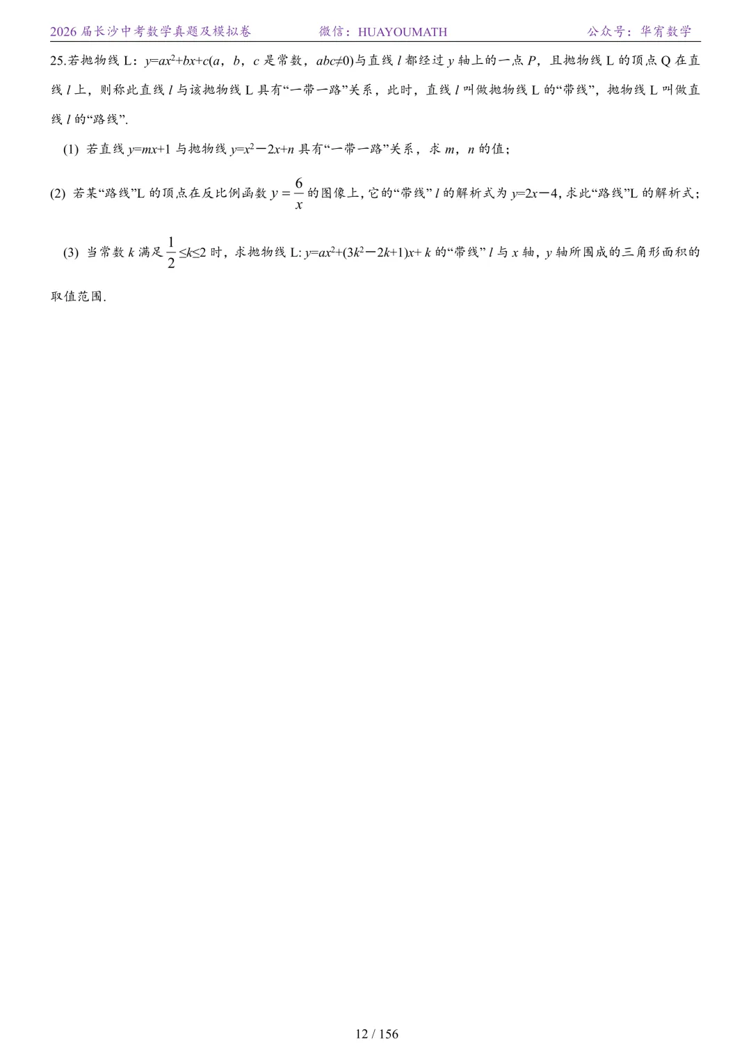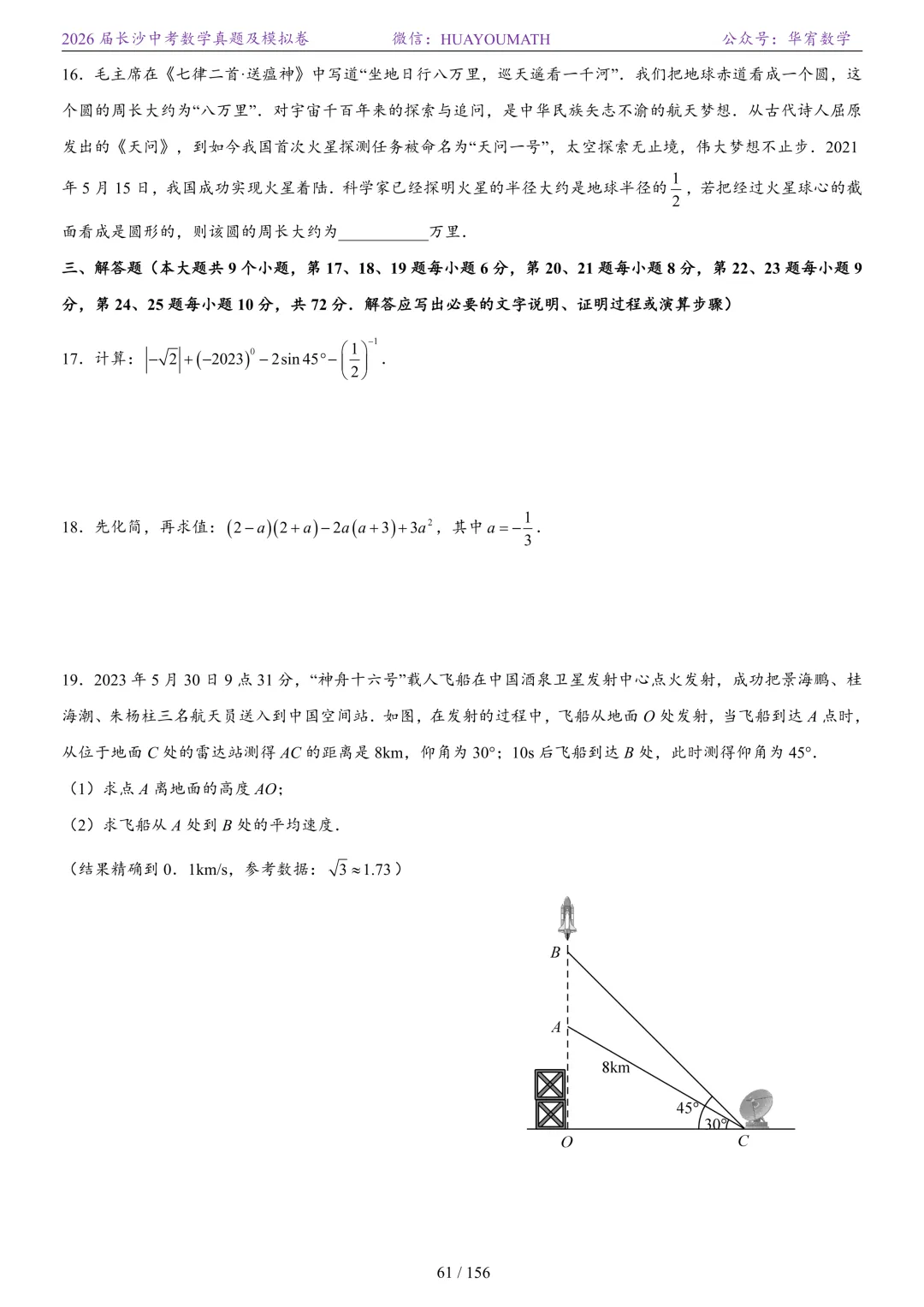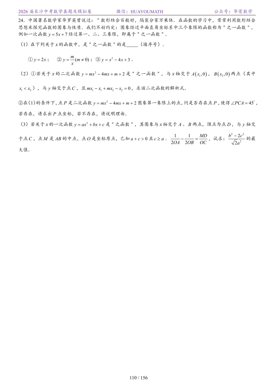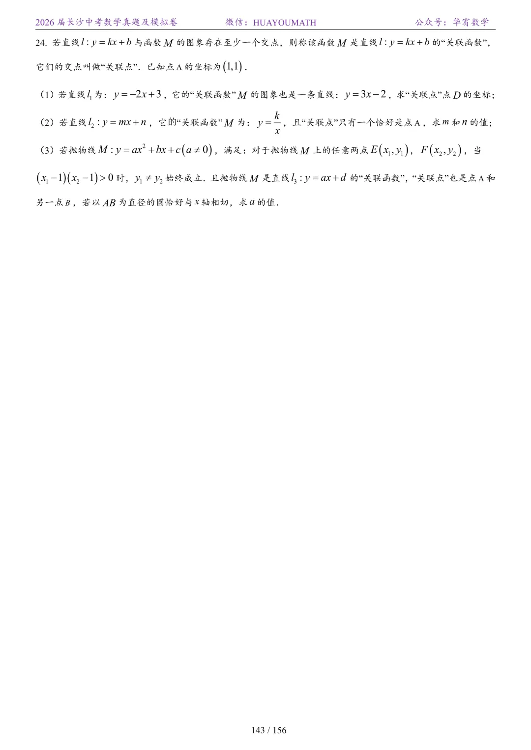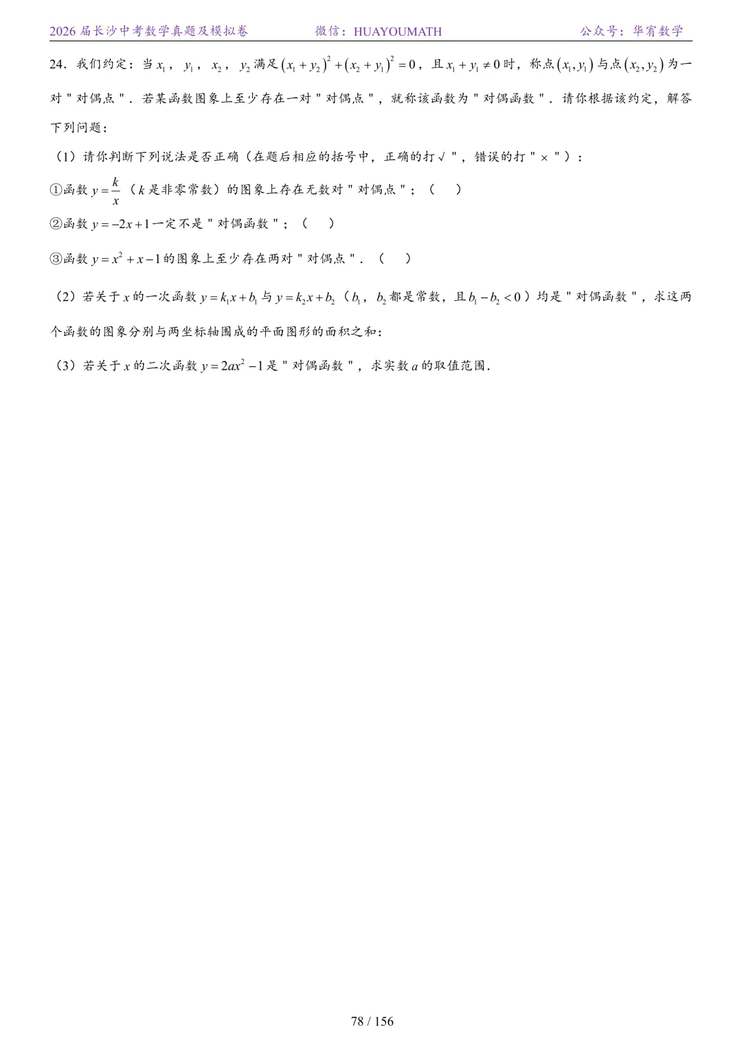 2025年春季长沙初三数学校考真题