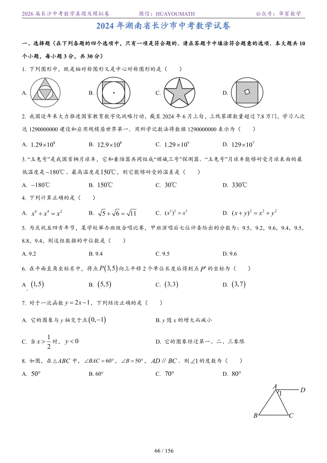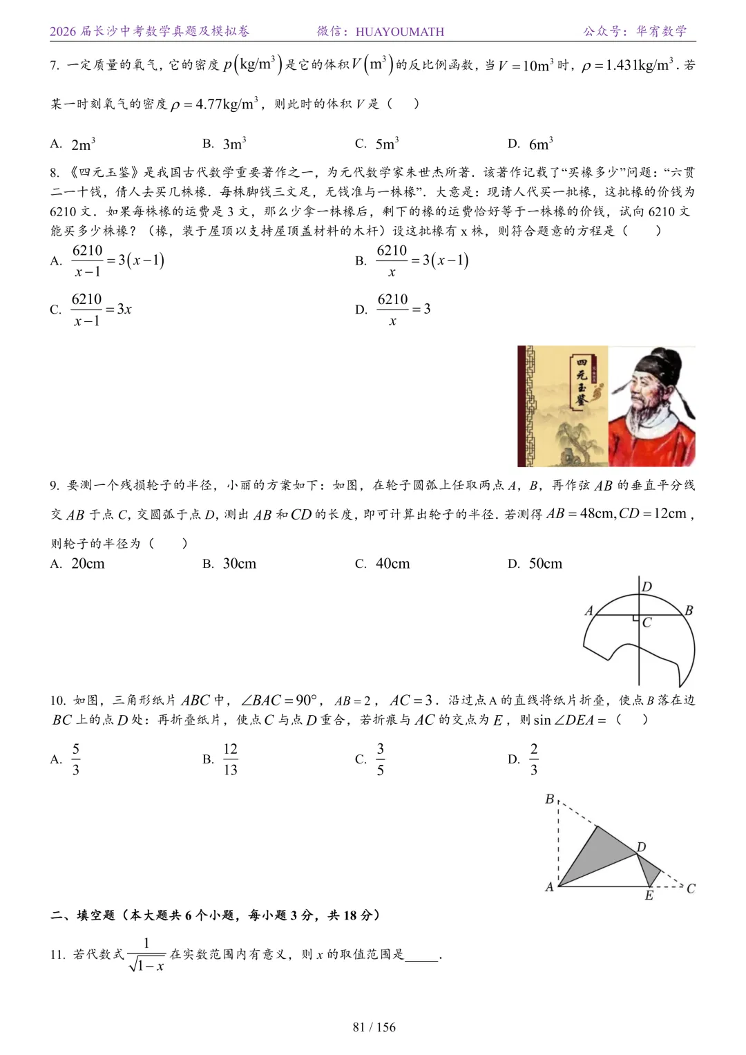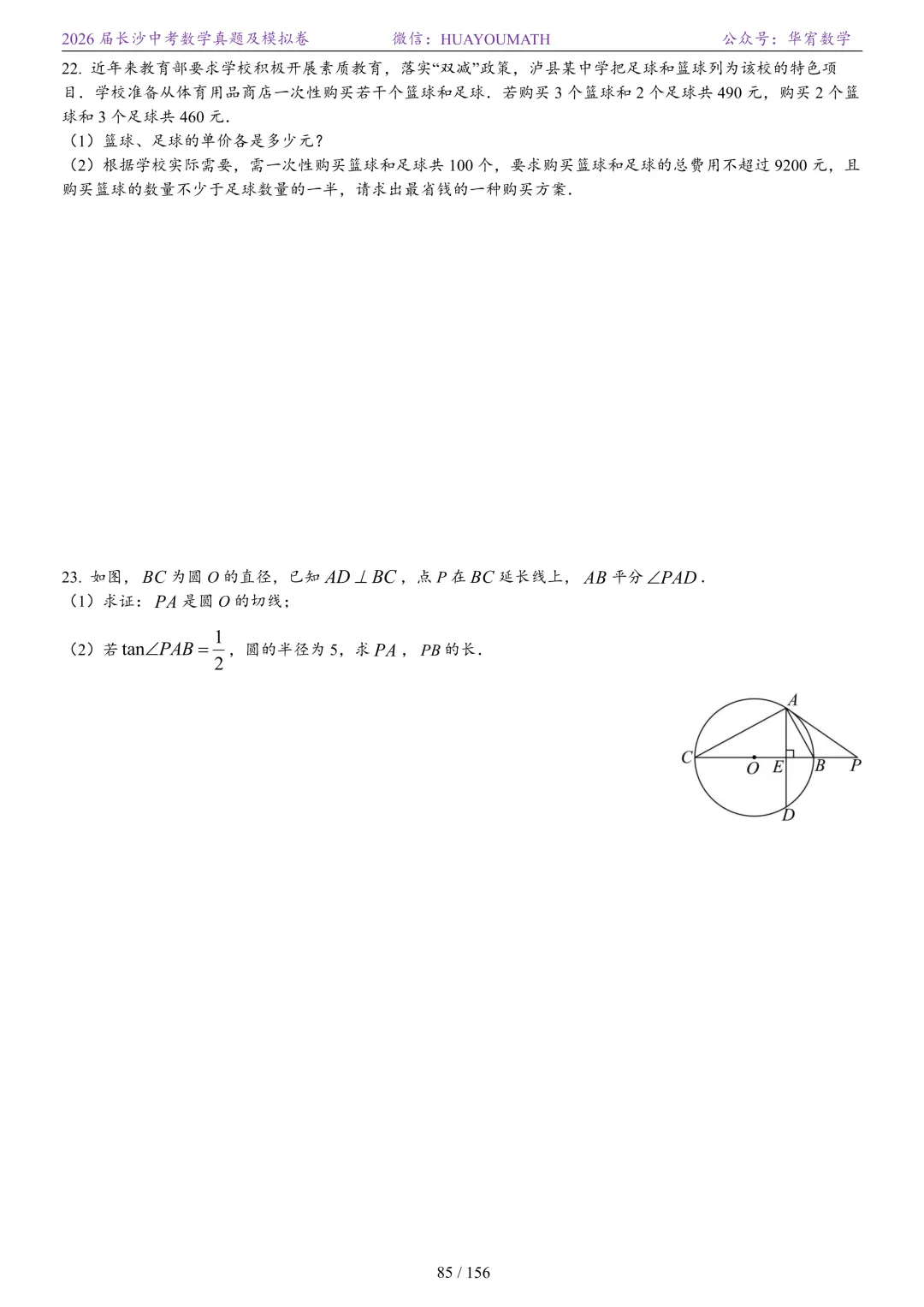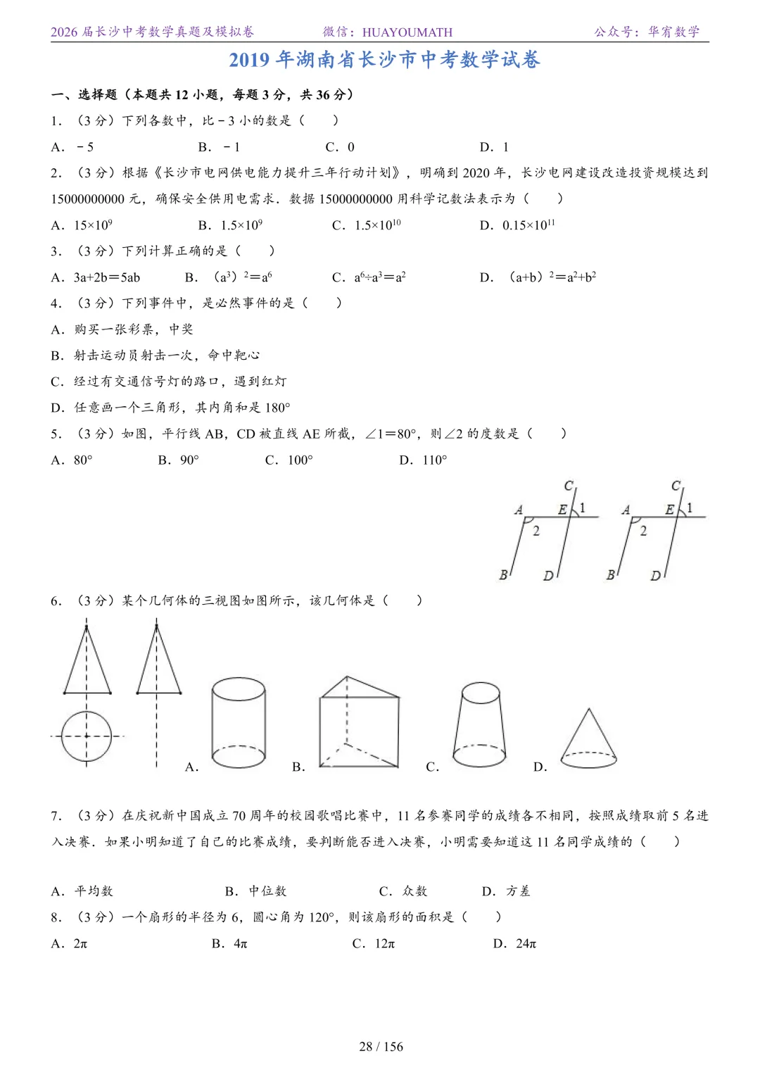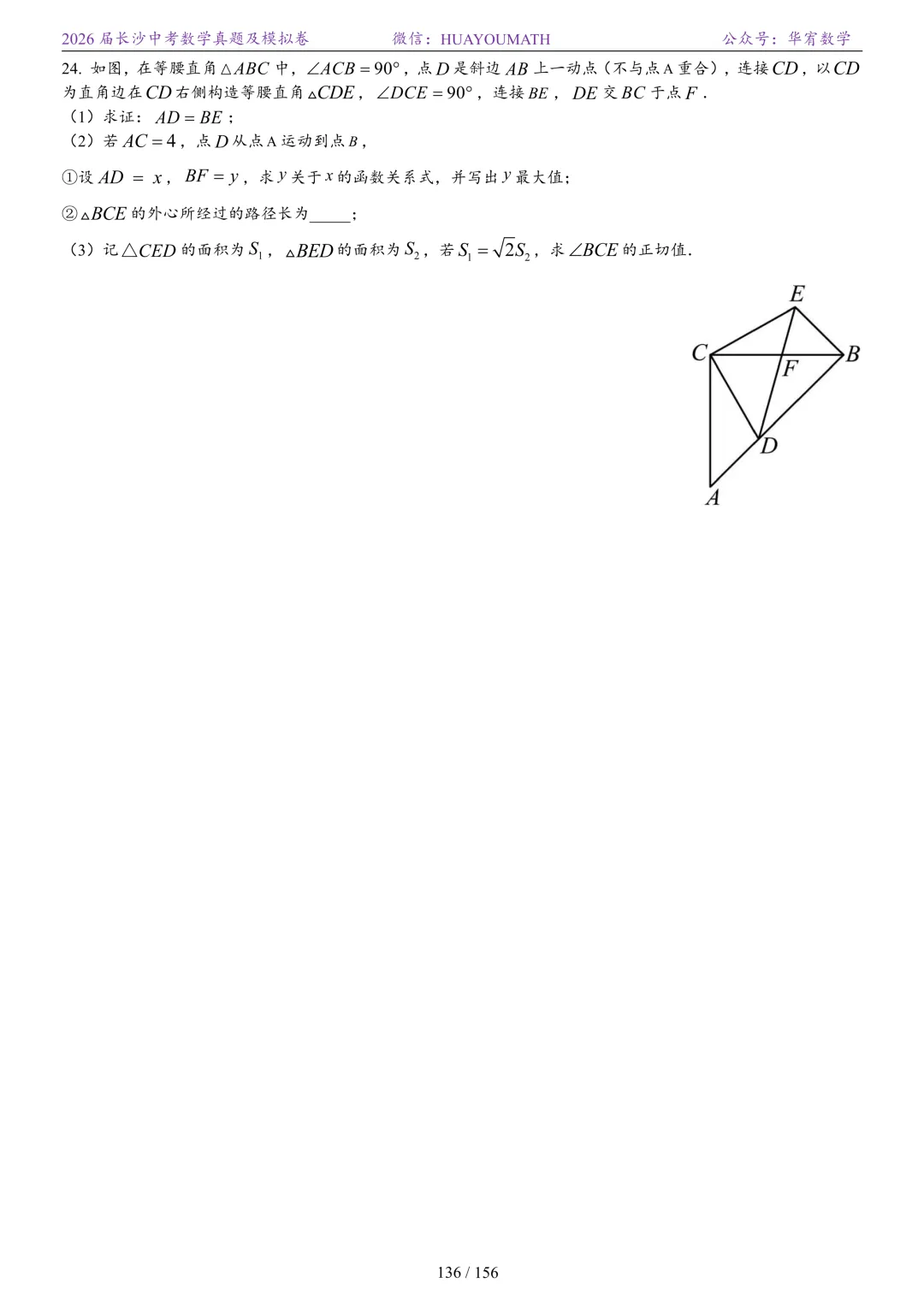 2025年春季长沙初三数学校考真题