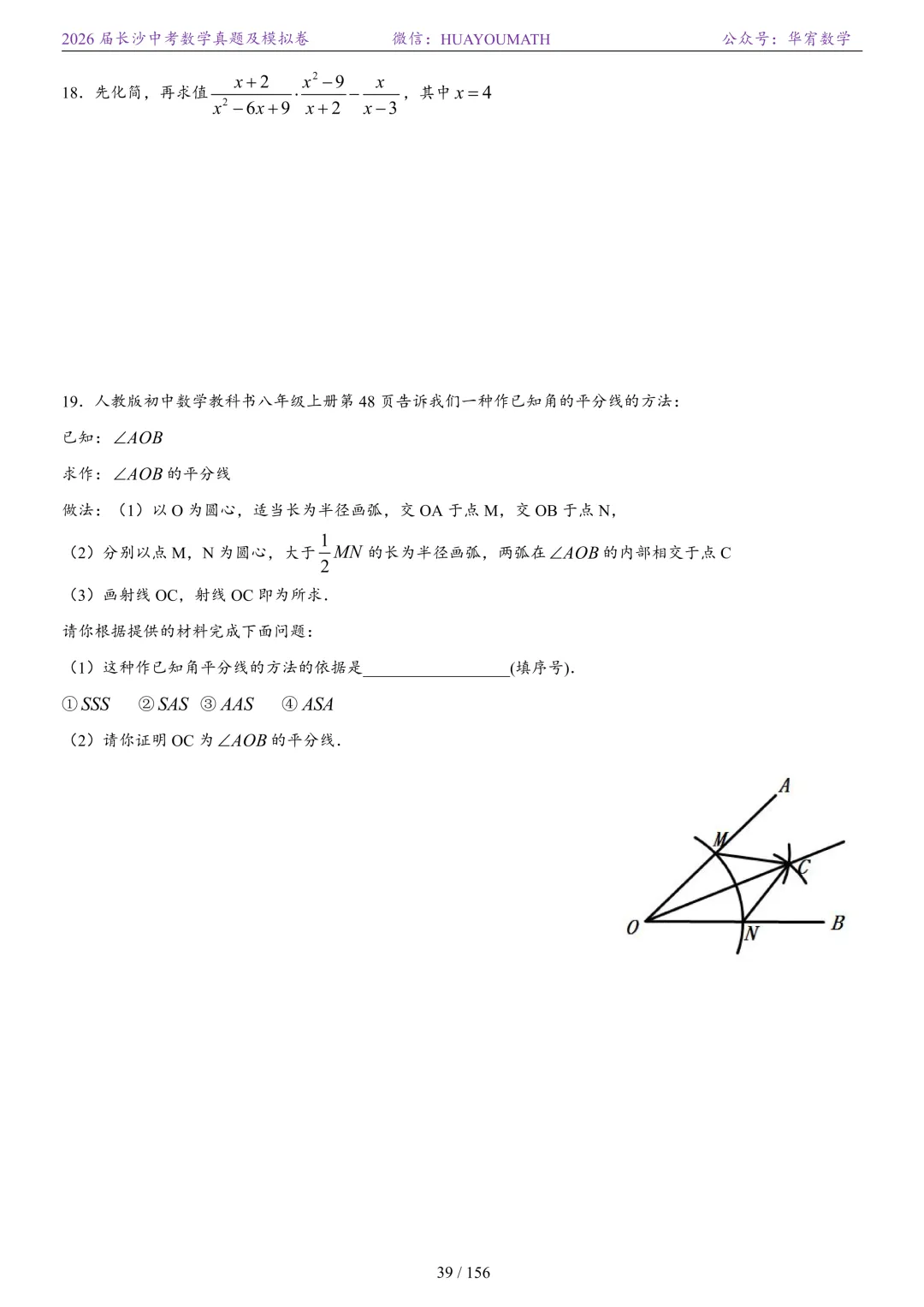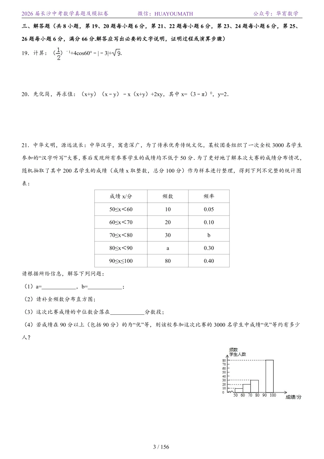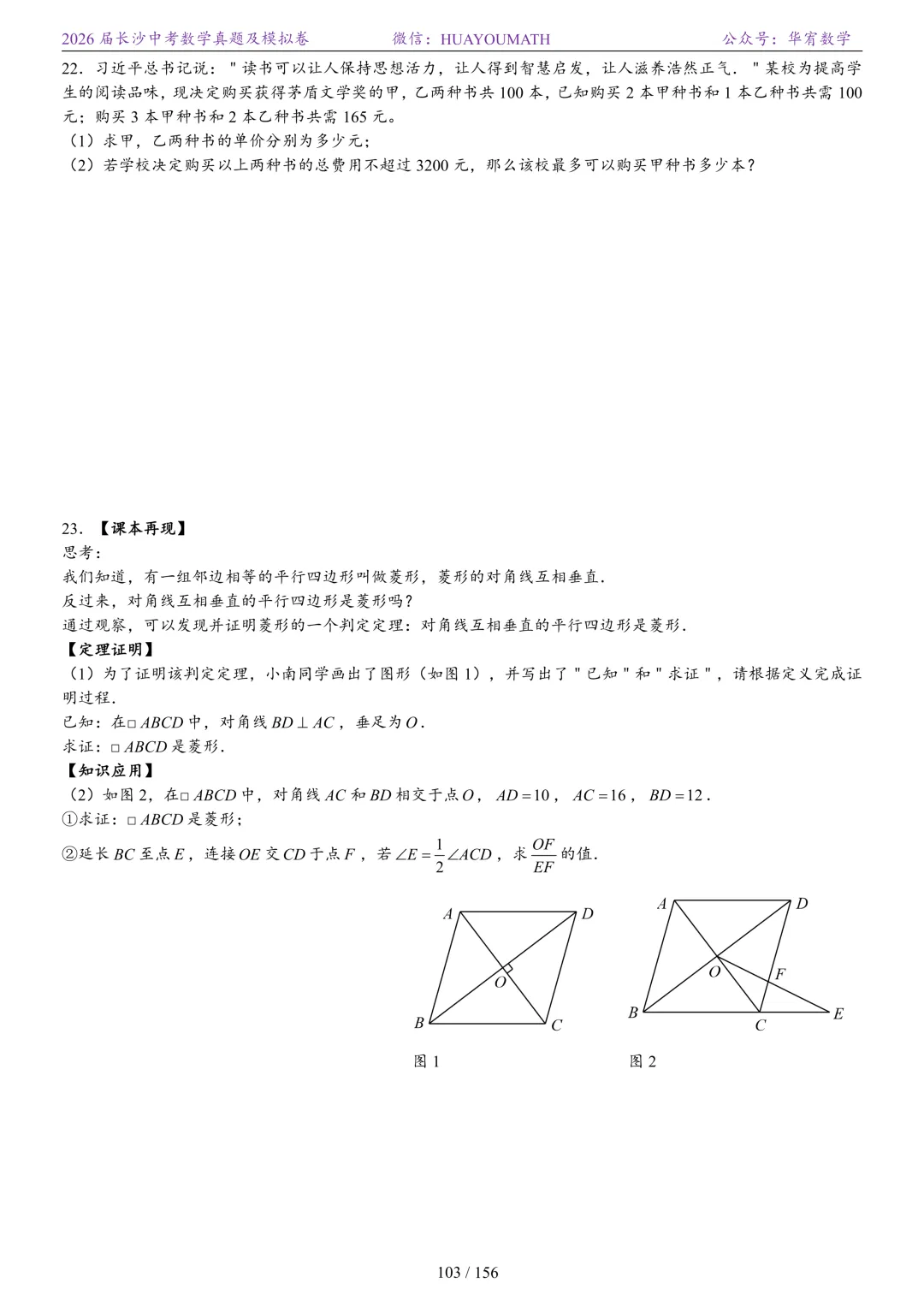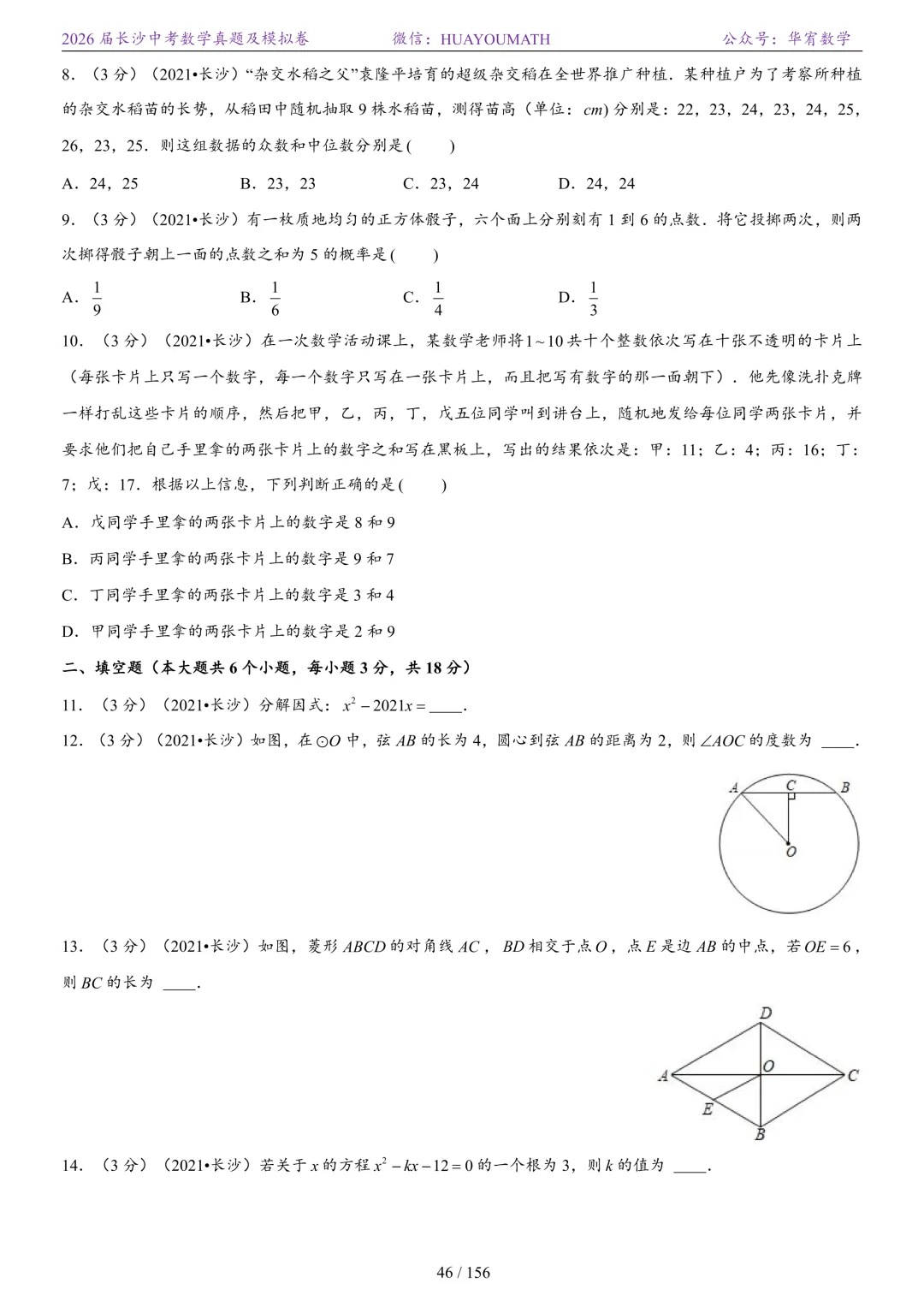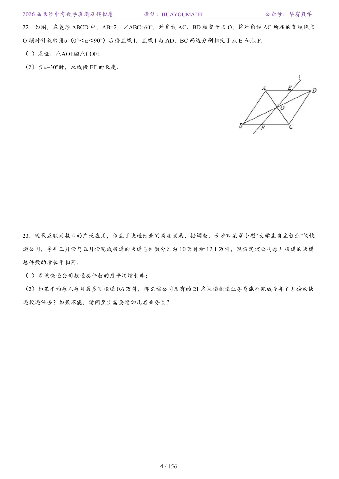 2025年春季长沙初三数学校考真题