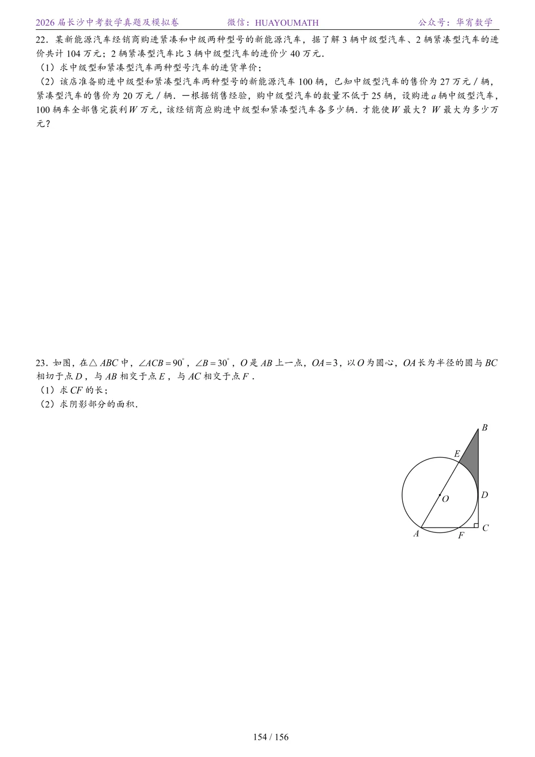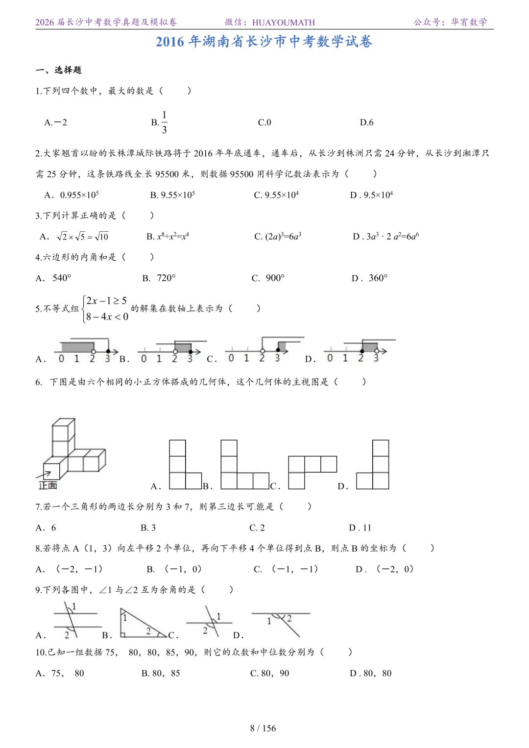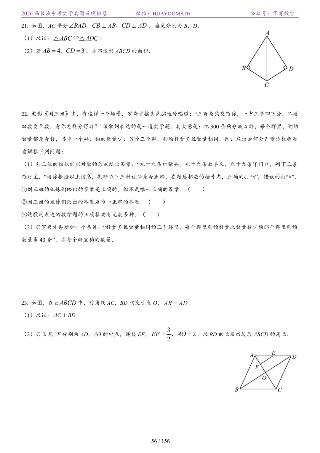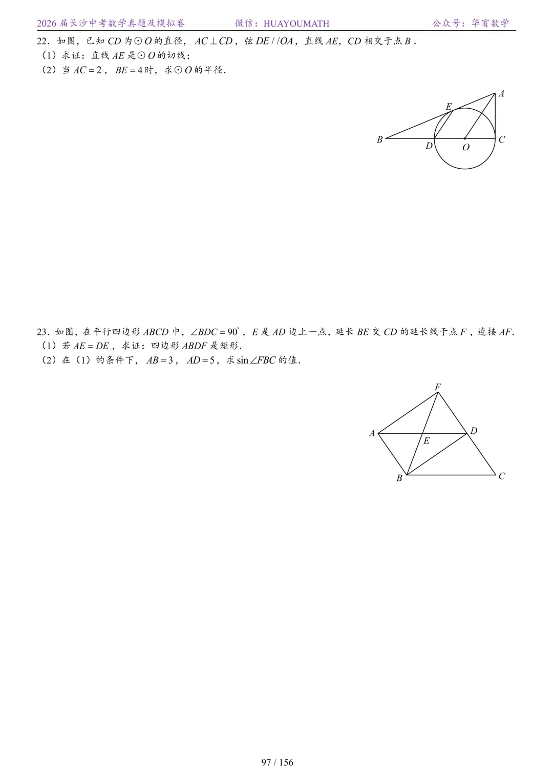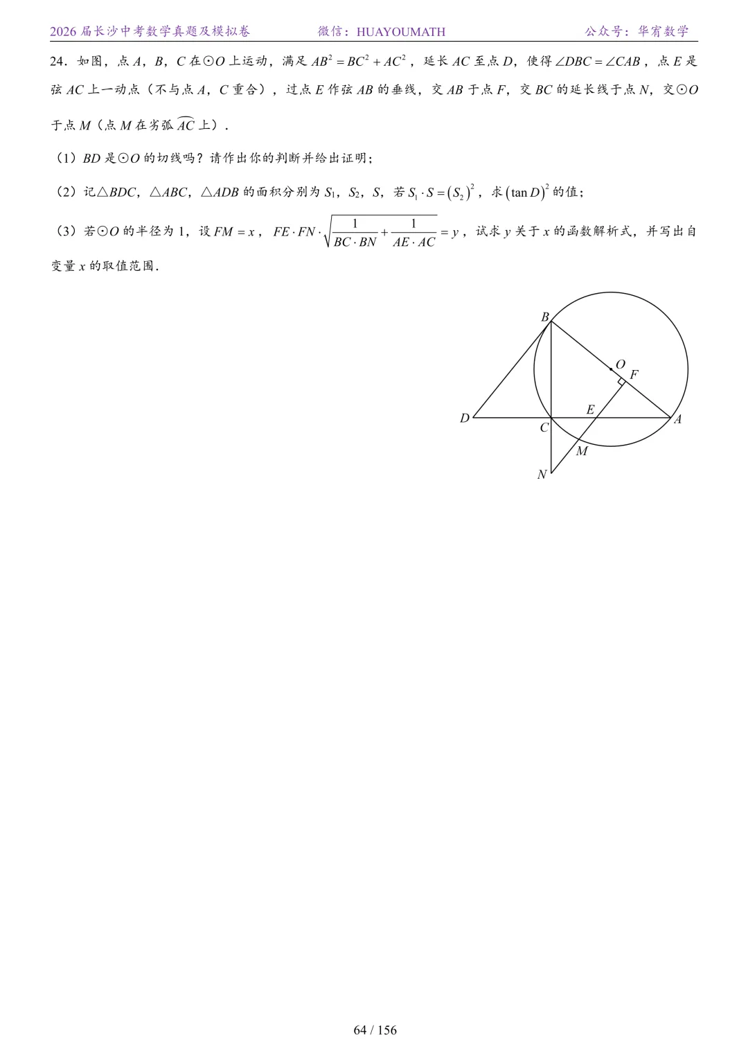 2025年春季长沙初三数学校考真题