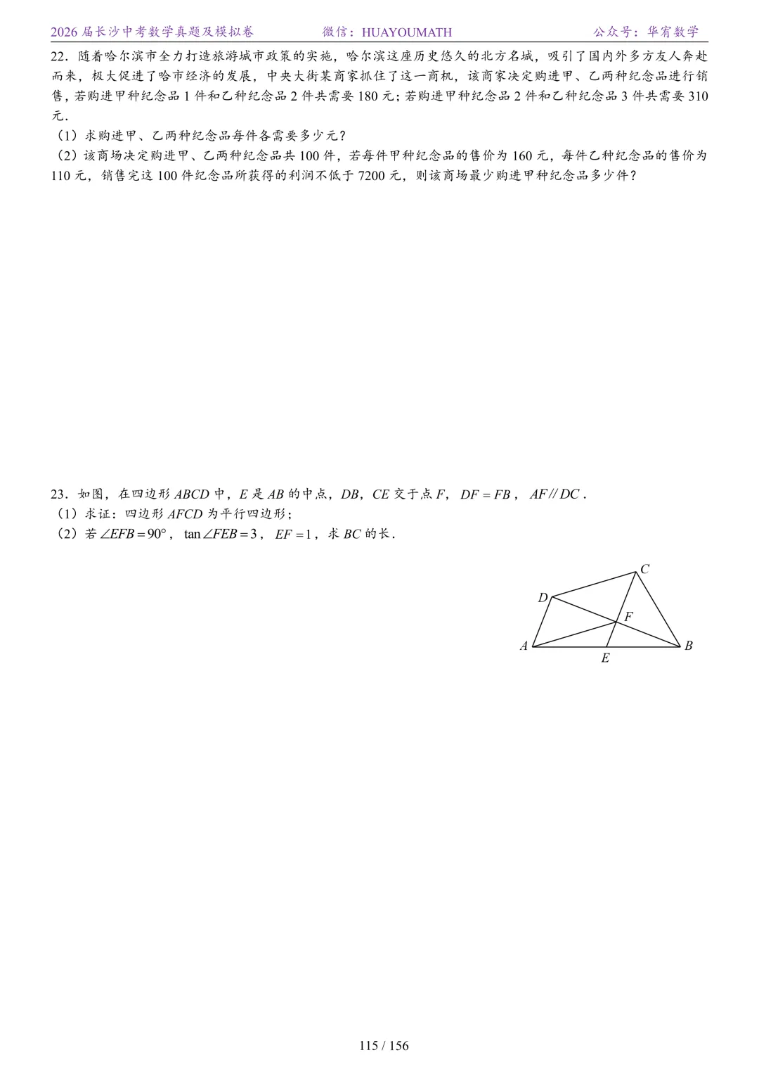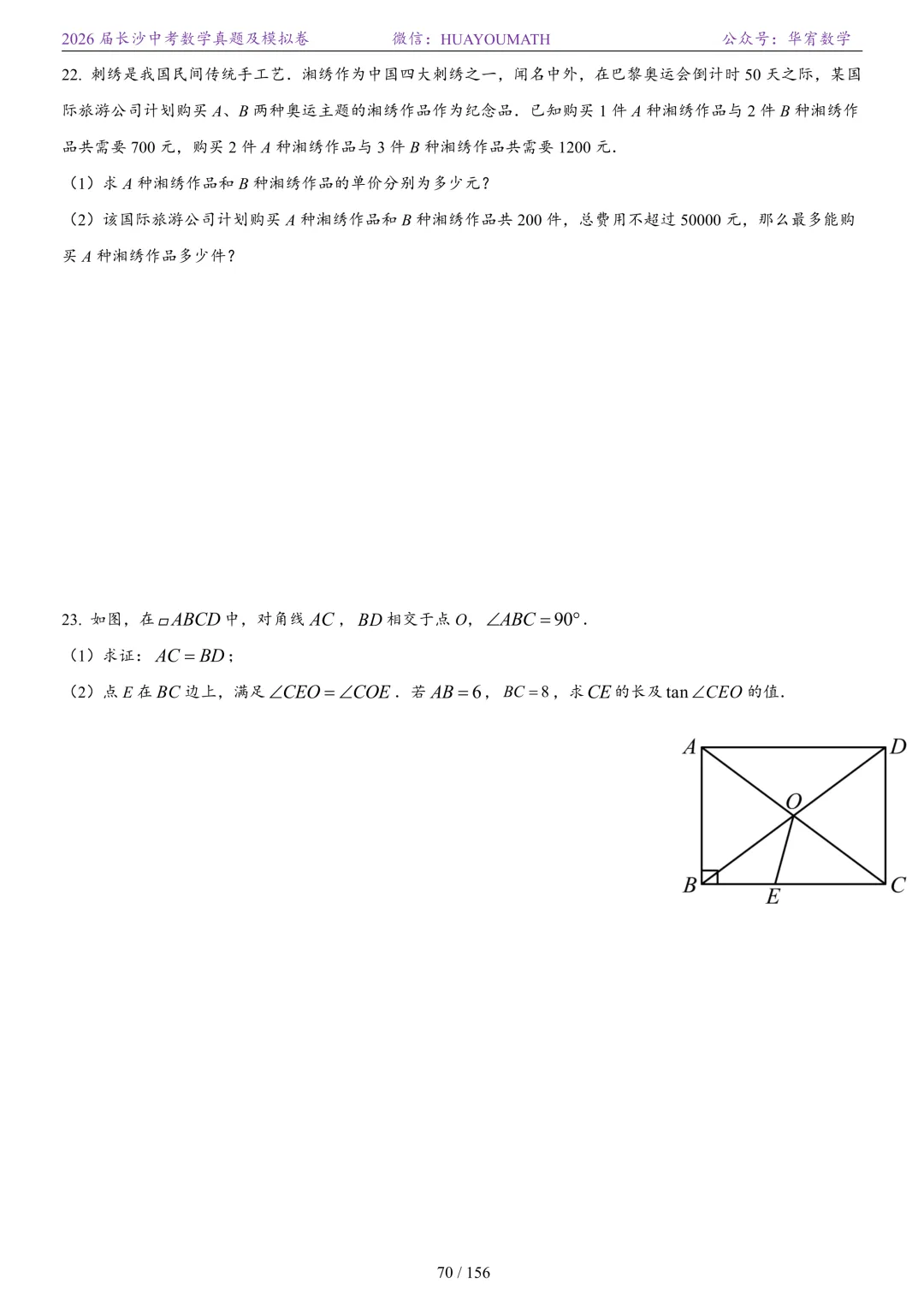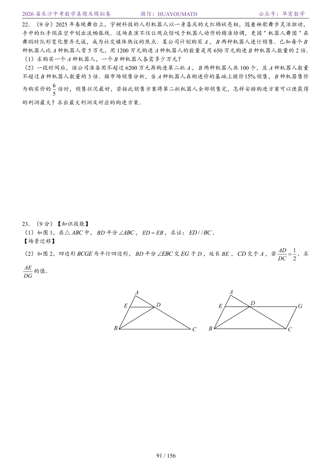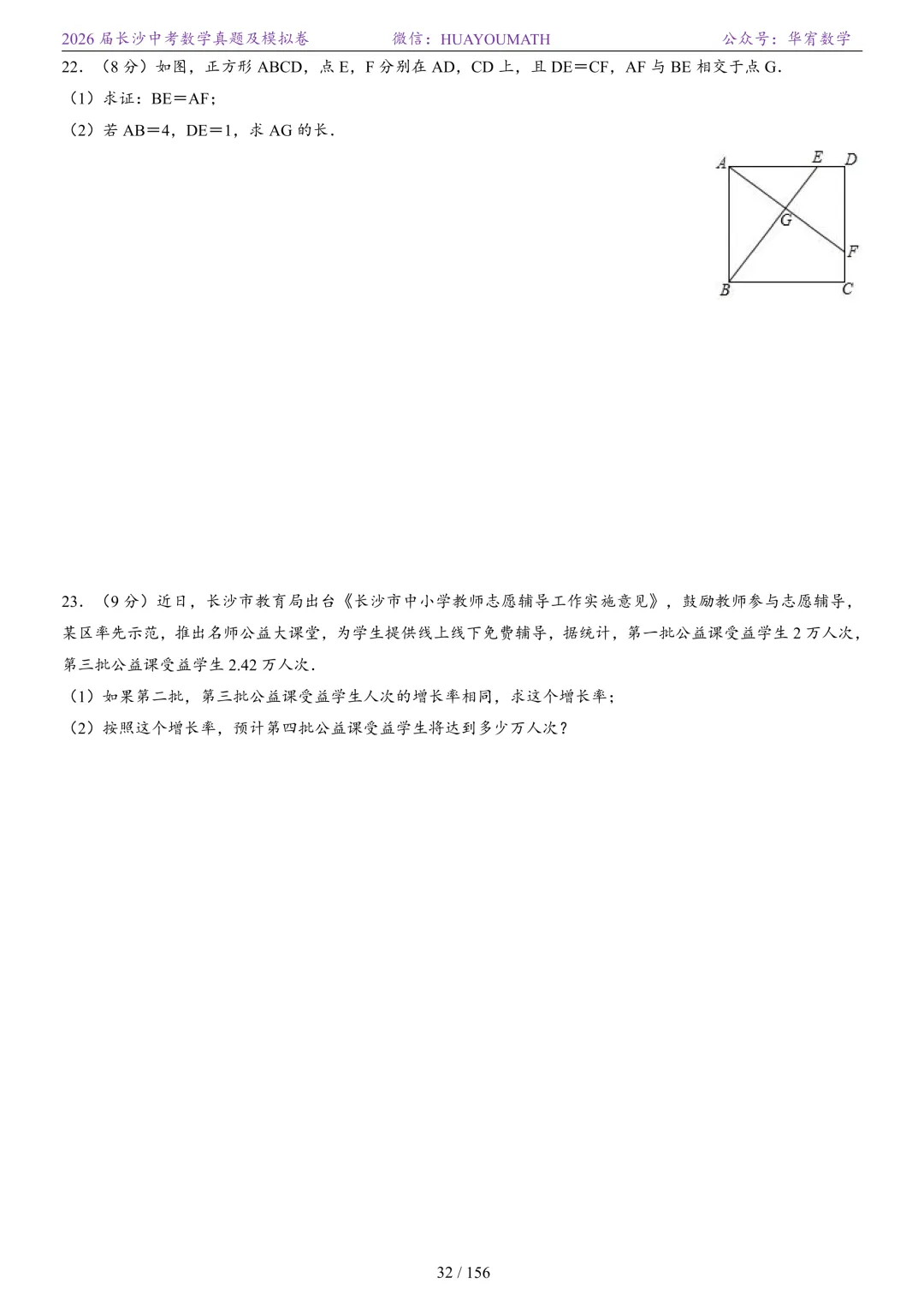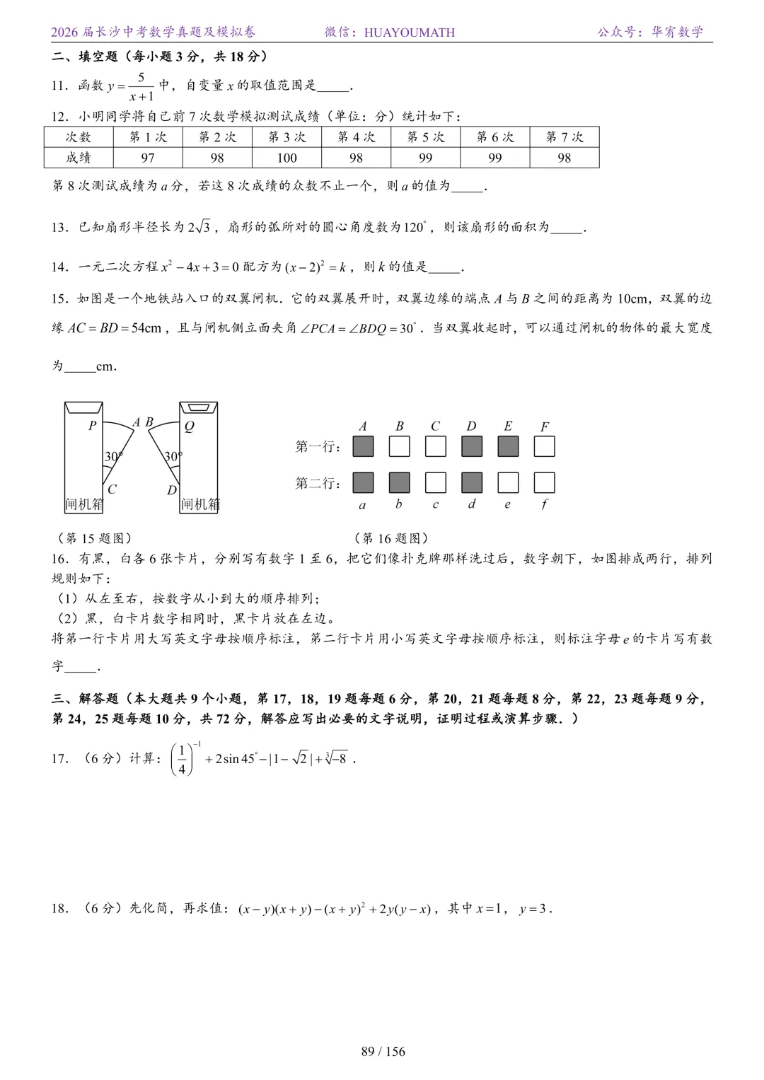 2025年春季长沙初三数学校考真题