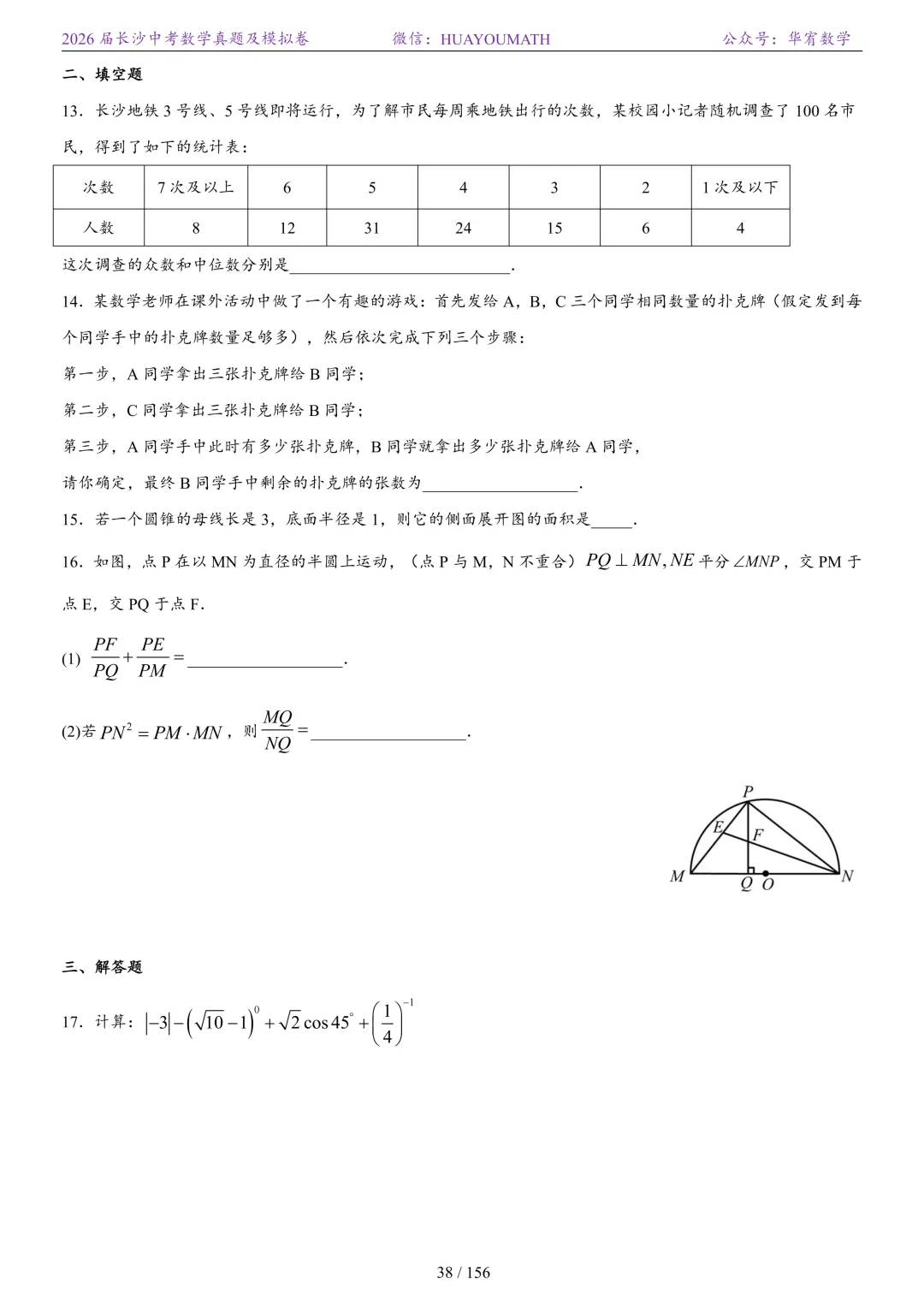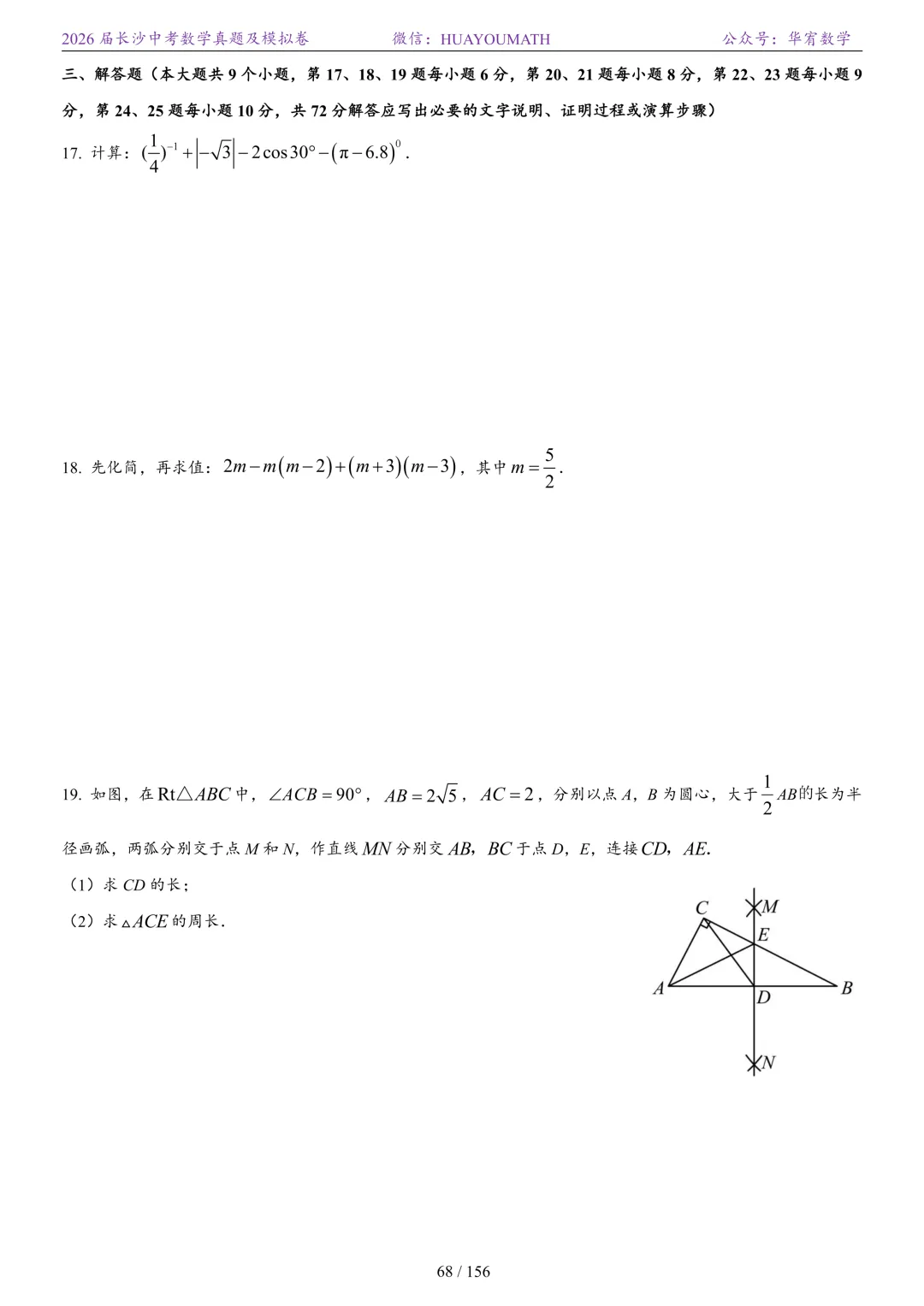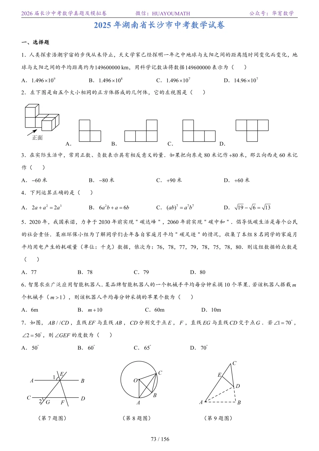 >2025年春季长沙初三数学校考真题