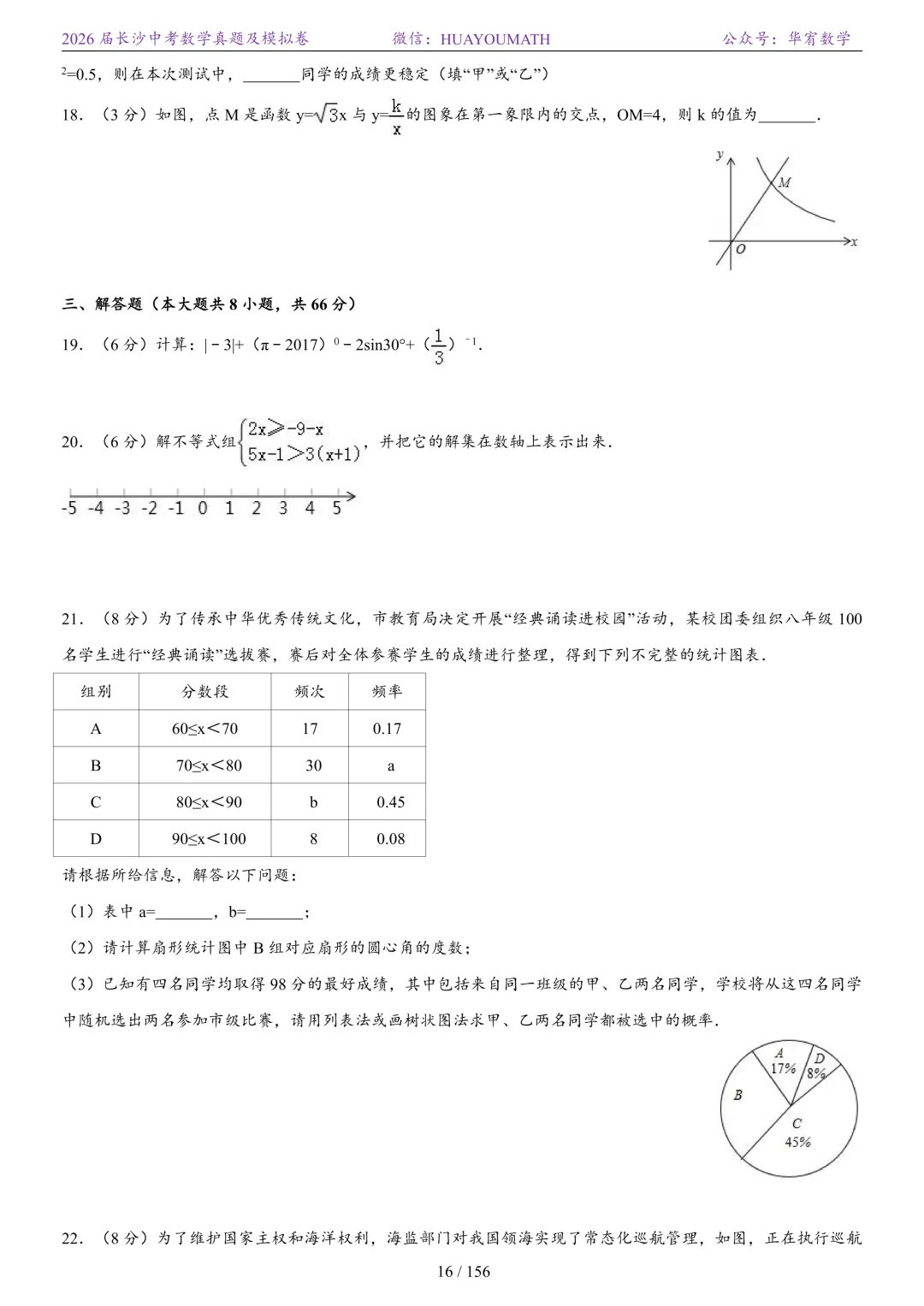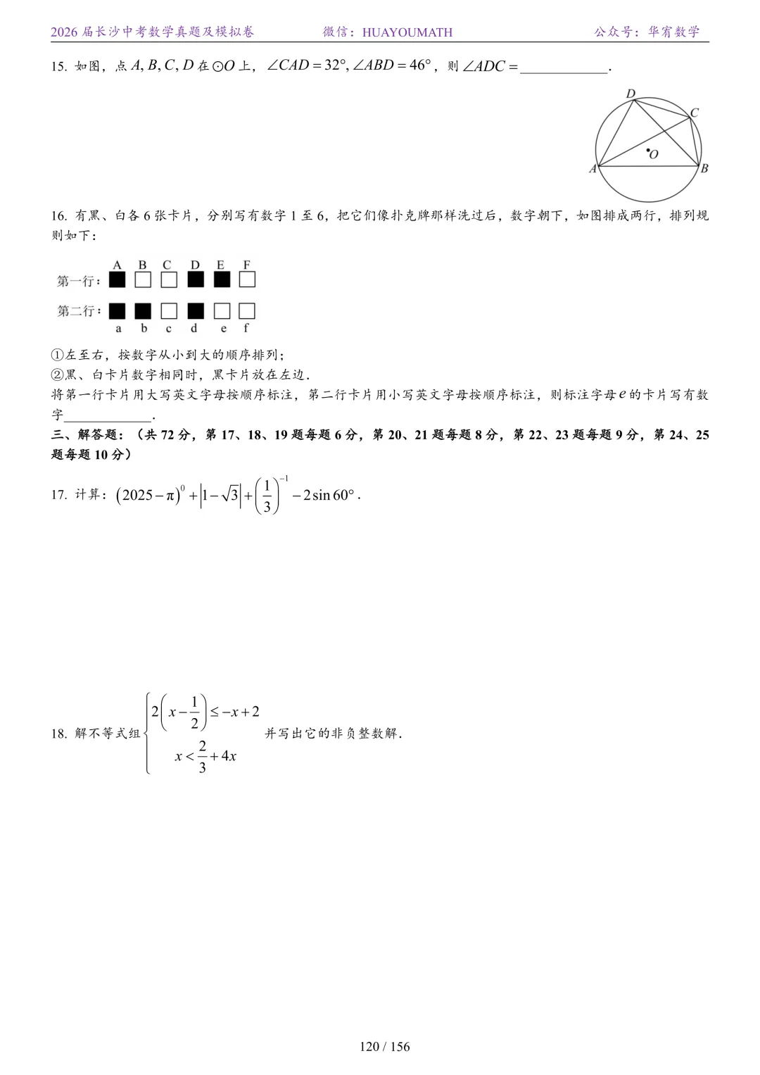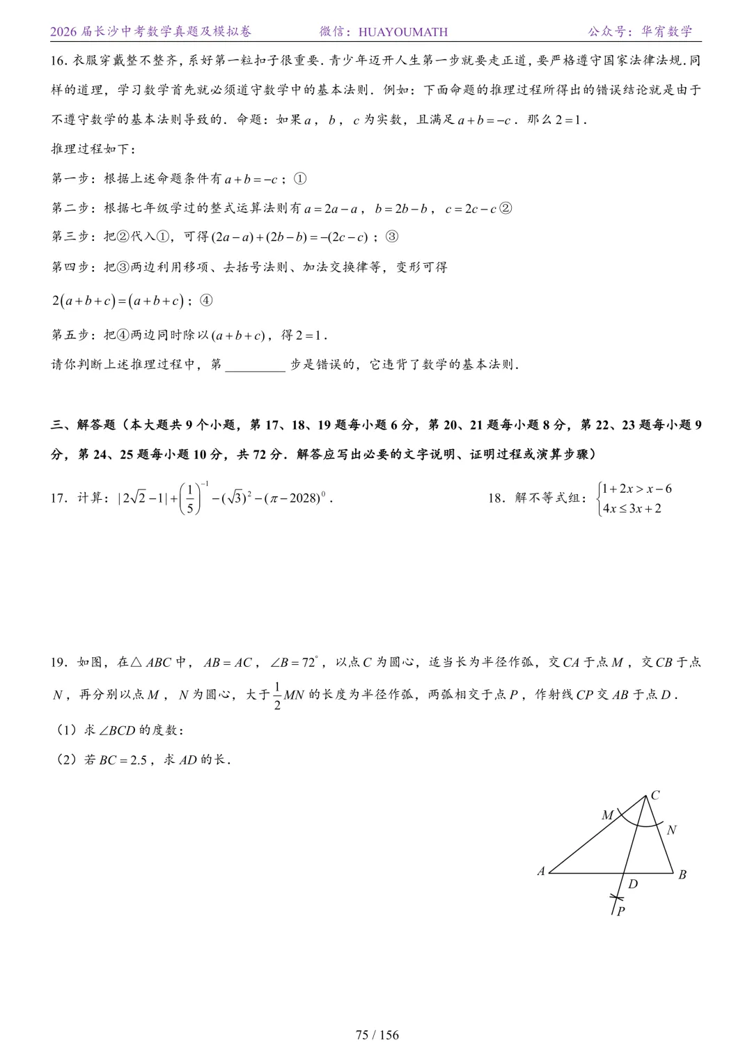 >2025年春季长沙初三数学校考真题
