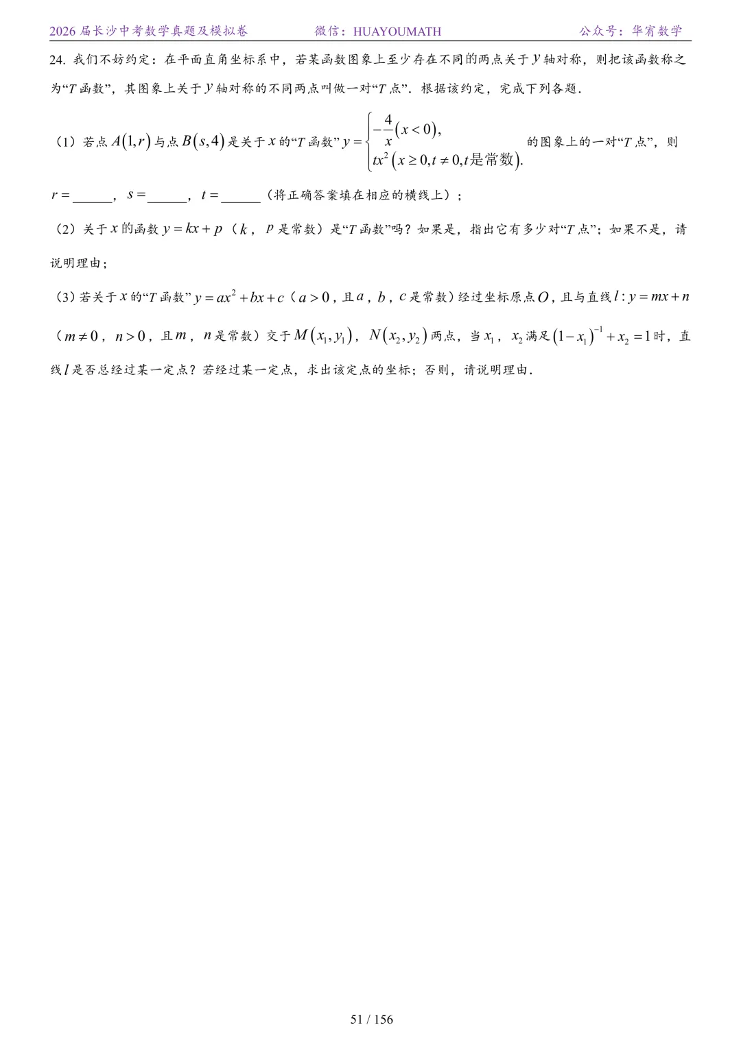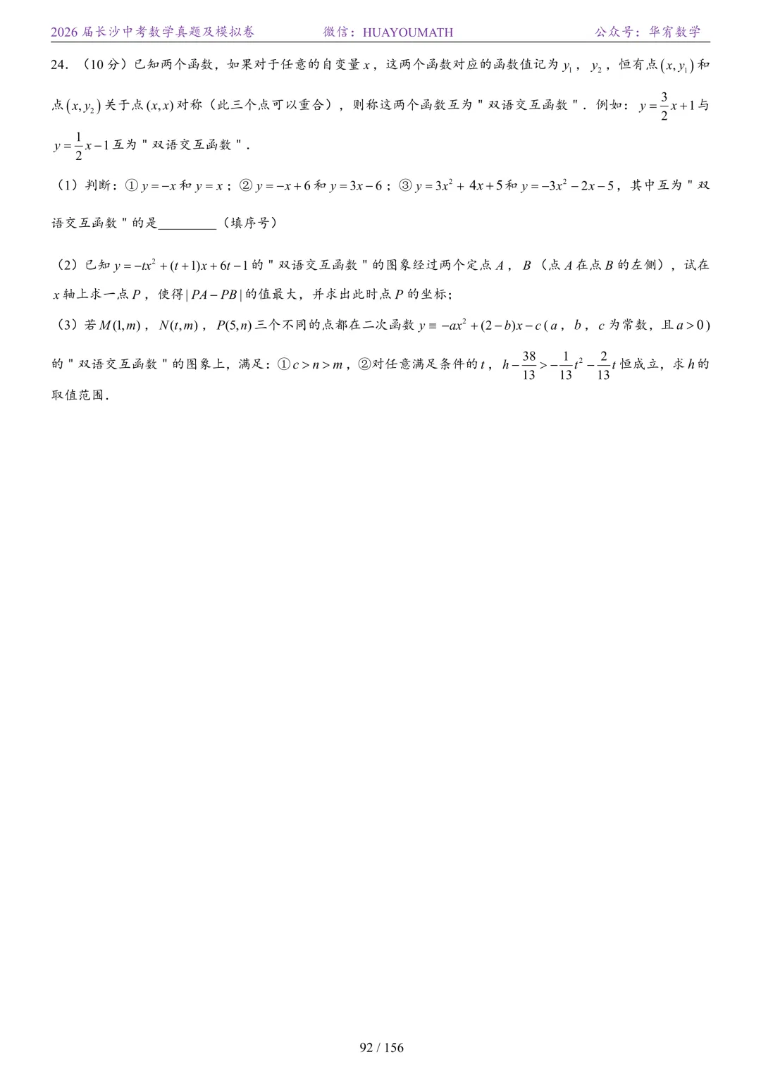 2025年春季长沙初三数学校考压轴