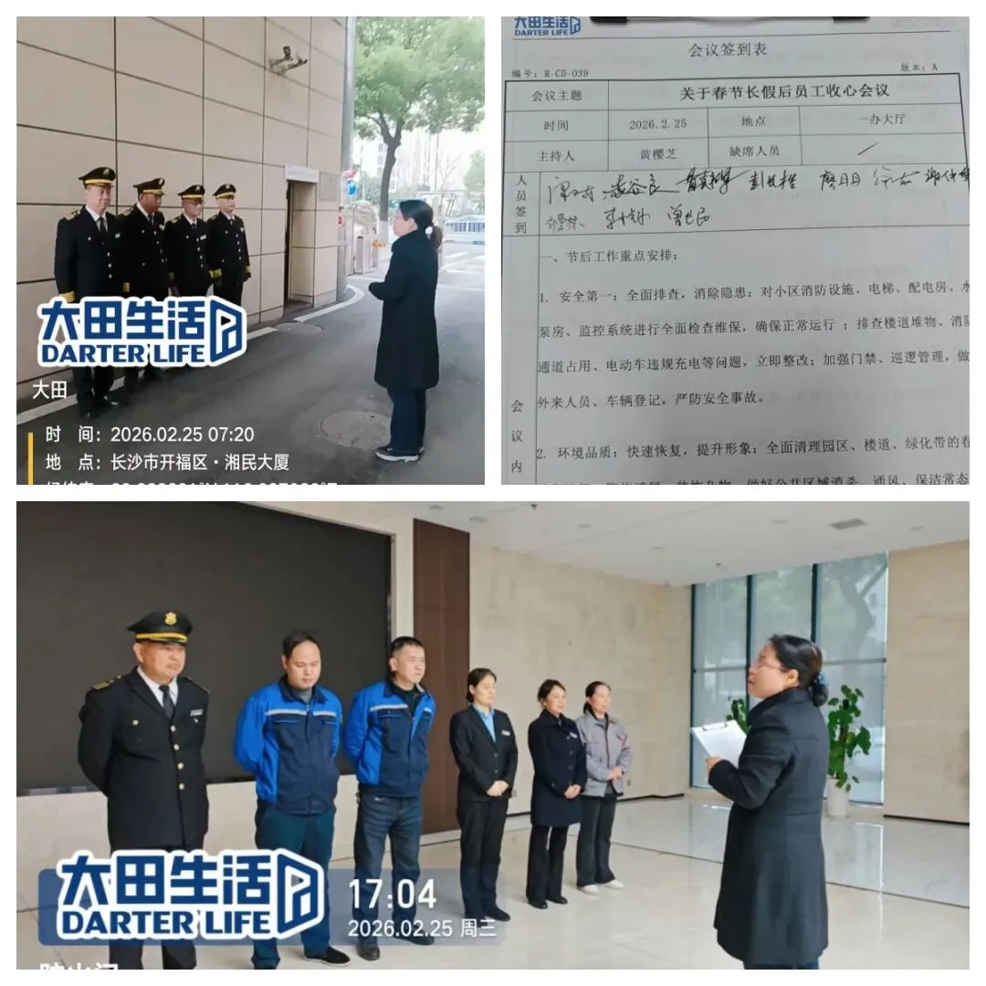 与此同时,各项目同步召开节后收心会,总结春节期间值守情况,部署节后环境整治、设施维护、安全巡查等重点工作。各项目团队迅速集结,以饱满热情投入新一年的服务工作中,表示要在马年跑出加速度、干出新气象。
