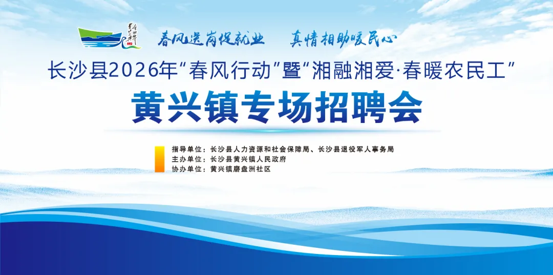 长沙县2026年“春风行动”暨“湘融湘爱·春暖农民工”黄兴镇专场招聘会启动啦!在这里,您将有机会了解到众多企业的最新岗位需求,亲身体验到企业文化,与HR面对面交流,从而找到最适合自己的工作机会。