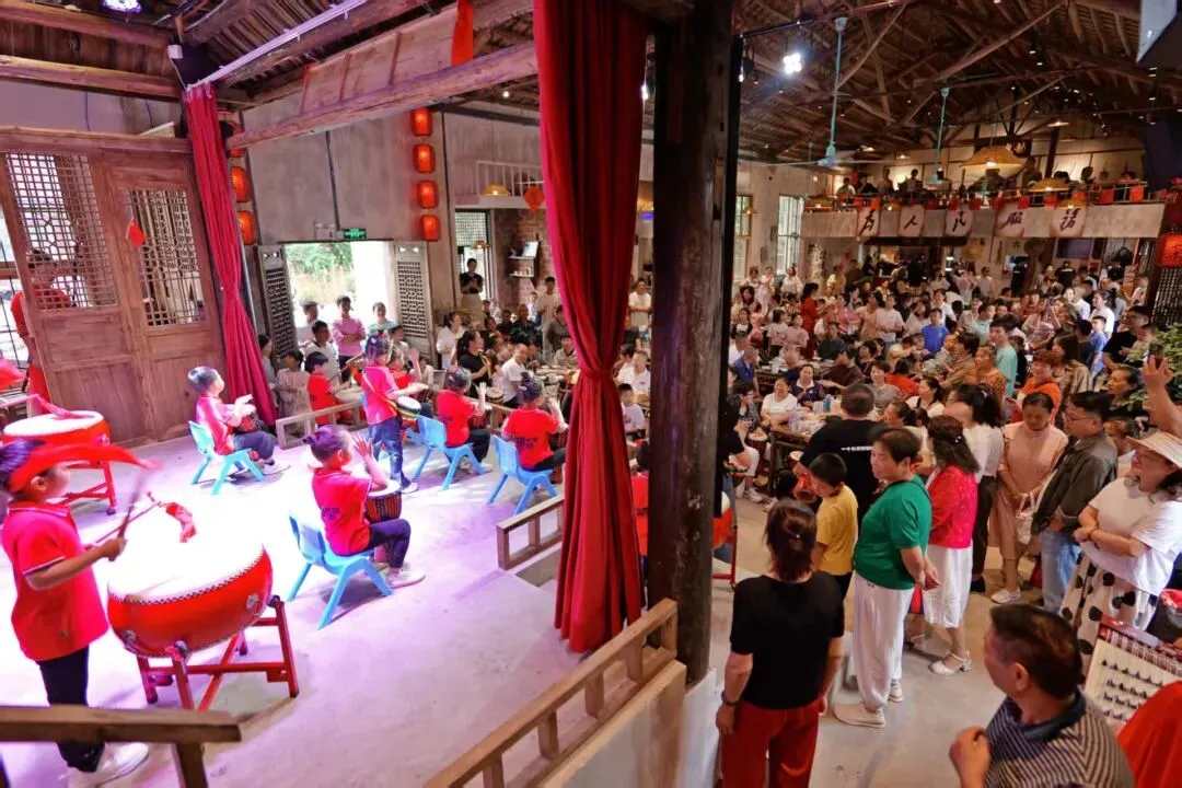 全天非遗与文艺轮番上演:上午舞龙舞狮气势如虹,中午变脸、花鼓戏、韵味十足,下午开慧手鼓、红歌教唱热血暖心,前庭与小剧场双区联动,视听盛宴不打烊。