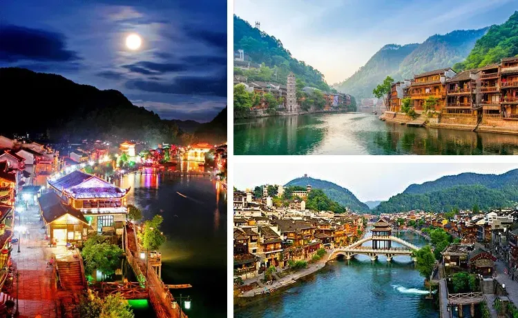 l随后前往曾被新西兰作家路易艾黎称作中国最美丽的小城---【凤凰古城】古城建于清康熙时期,因沈从文的小说《边城》而闻名于世。古城依山傍水,沱江穿城而过,红色砂岩砌成的城墙伫立在岸边,南华山衬着清朝年间的城楼。古城里北城门下的河面上,横着一条窄窄的木桥,以石为墩,是当年出城的通道。城内的青石板街道、沱江边的吊脚楼、众多的古建筑以及浓厚的风情,构成了独具一格的湘西韵味。后自行参观美丽的凤凰古城夜景!