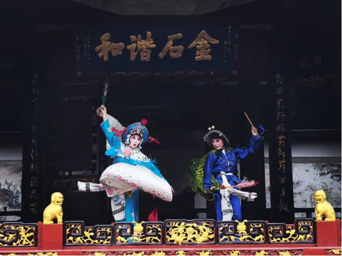 走进庙会核心区域,非遗展示与互动体验交相辉映。古戏楼上,湘剧高亢激昂,声声入耳;幕布之后,皮影戏灵动传神,妙趣横生;长沙弹词抑扬顿挫,引得观众驻足倾听,连连叫好。