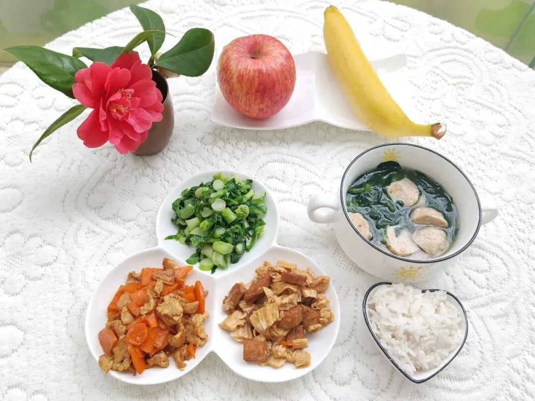 肉丸子青菜汤 红萝卜炒鸡胸脯肉