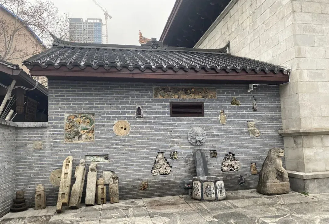 据记载:这地方清同治年间重修过,占地六百多平米;1950年办过小学;后来成了医疗器械厂的厂房;到二十世纪末,大部分建筑塌了,变成垃圾场,就剩几块残碑和一对石狮守着瓦砾。2009年有识之士不断努力,才从废墟里一点一点“抢救”回来。