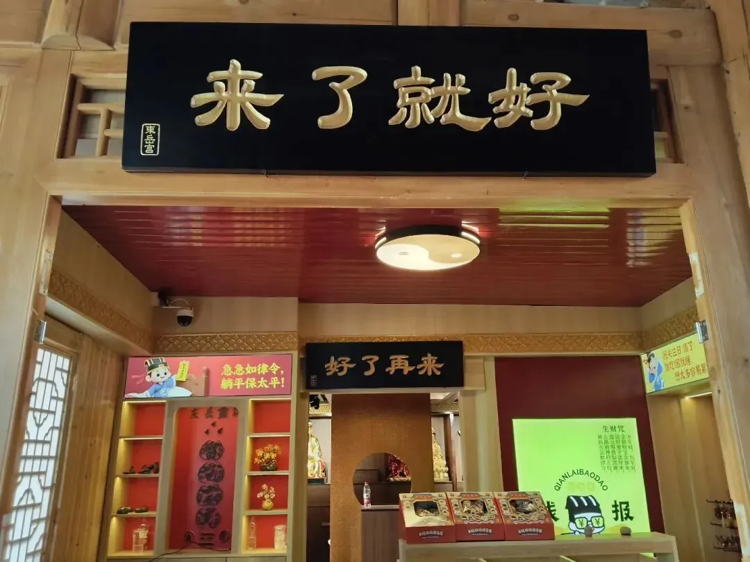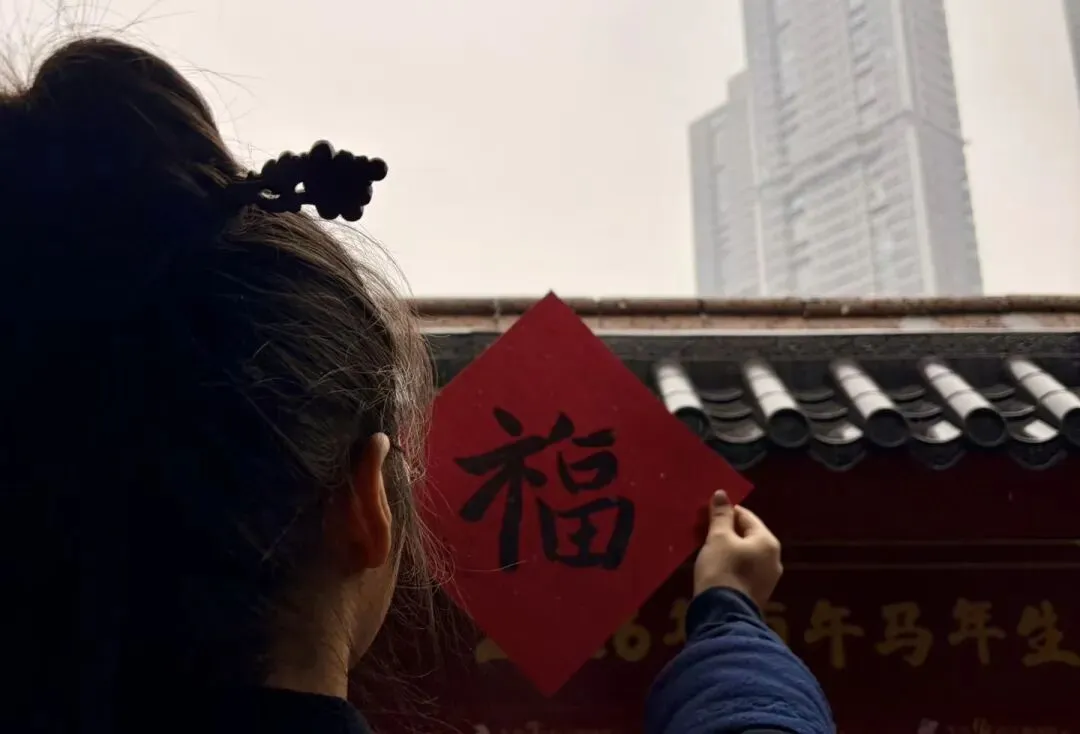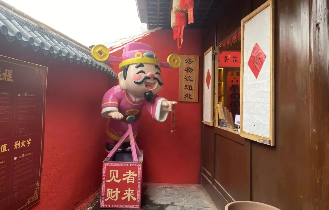 然后,她像变魔术一样,送我们一堆小玩意儿——马年护身符,小元宝,全是免费的。朋友说:“这比那些动不动几百块的‘开光’舒服多了。”准备走的时候,义工小妹追上来,往我手里塞了一张卷起来的春联。“拿回去保平安,不要钱。”我铺开来一看,大大的“禄”字——