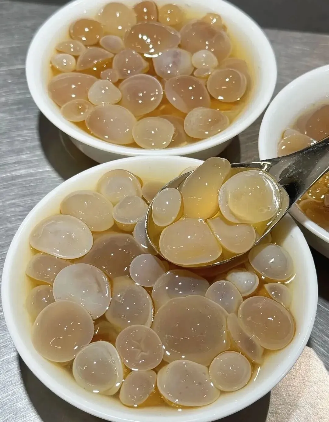 白白嫩嫩、晶莹剔透,看着就很清爽。入口冰冰凉凉,滑溜溜还带点 Q 弹,咬下去会爆汁,糖水清甜不腻,满嘴都是润润的香气。吃完辣乎乎的湘菜来一碗,直接解辣又解暑,舒服到跺脚!
