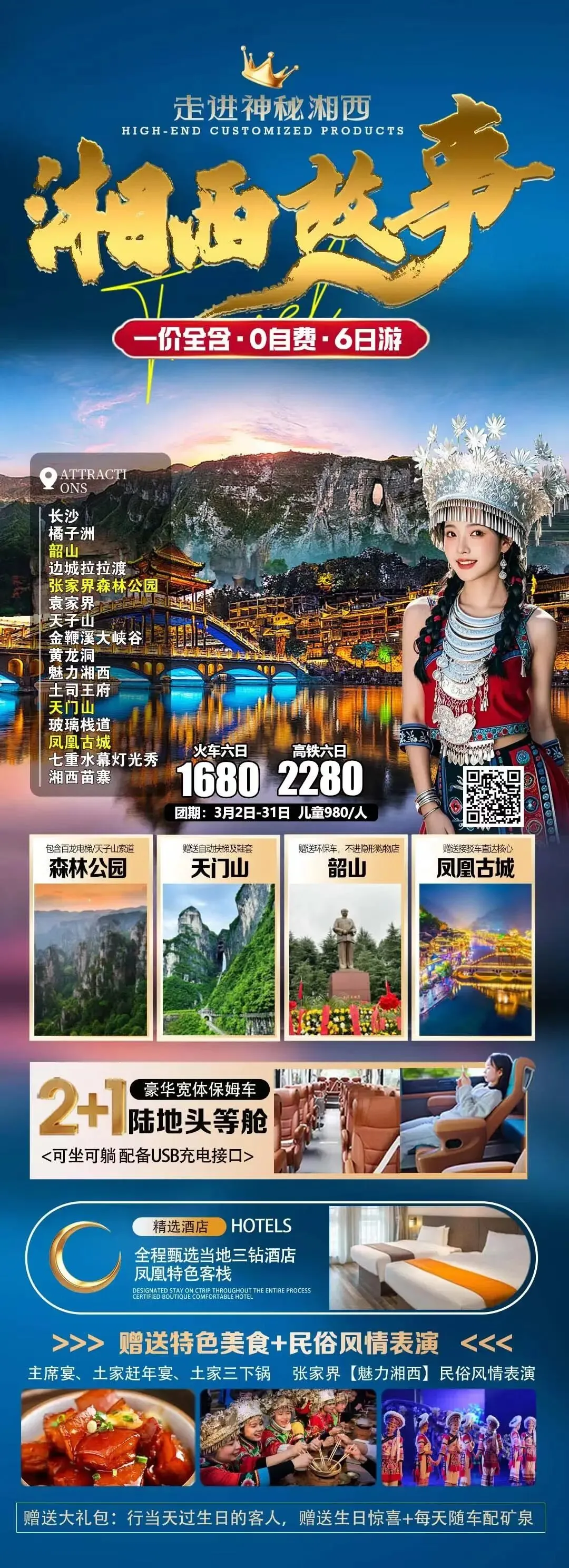 ❇️尊享VIP2+1豪华保姆车躺着游湘西
