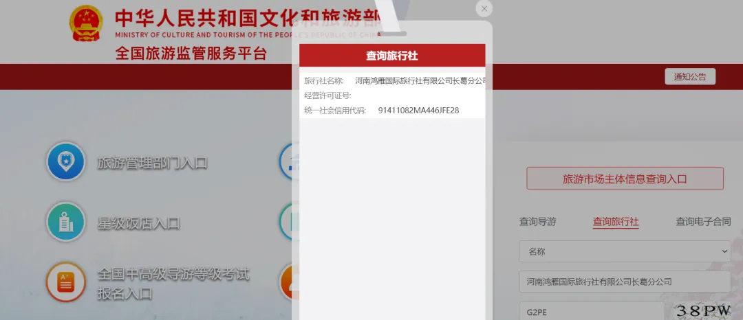 请登录中华人民共和国文化和旅游部全国旅游监管平台