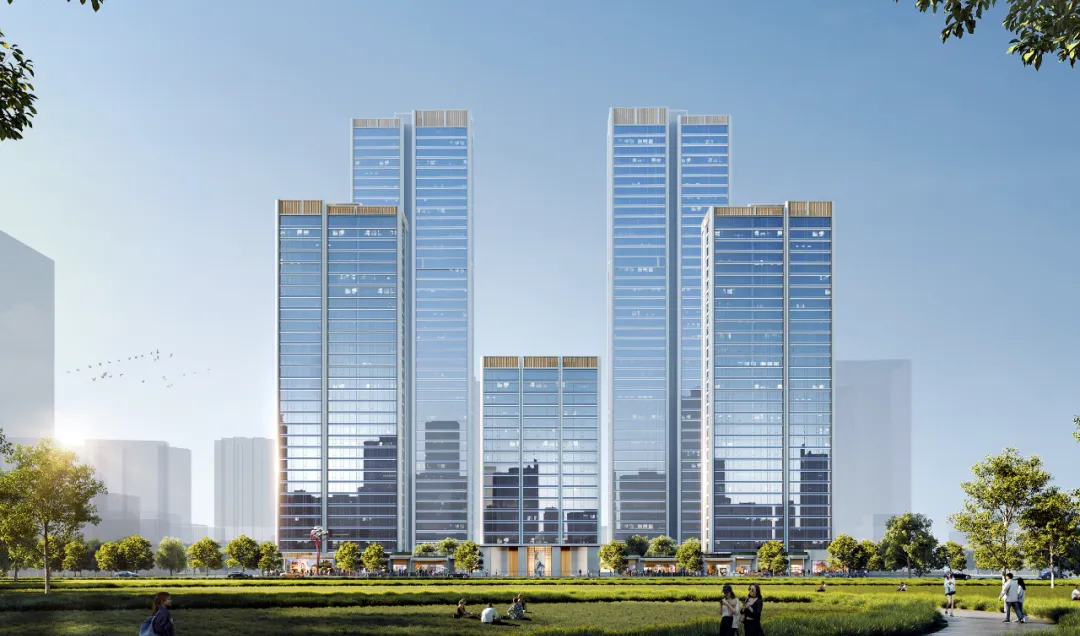 所有楼栋外立面均采用大面积中空LOW-E玻璃幕墙,辅以金属铝板勾勒,环幕弧面公建化立面,精心打造屹立中心的地标封面。