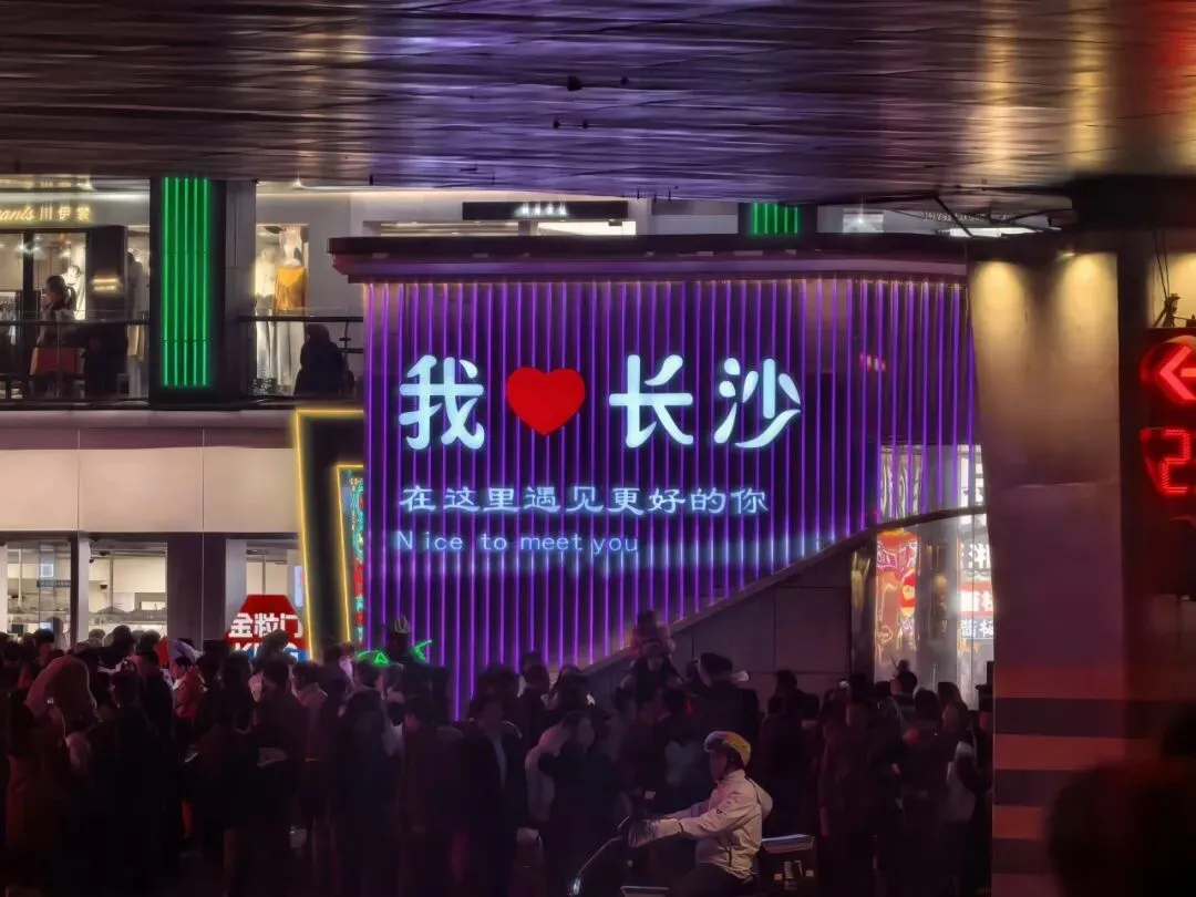 长沙的夜生活早已声名远扬。傍晚时分,我们来到五一广场,彻底沉浸在这座城市的热闹与繁华之中。无论白天黑夜,这里始终人山人海,灯火璀璨,年味与烟火气交织,热闹非凡。步行街两侧商铺林立,商品琳琅满目,各色小吃摊前排起长队,吆喝声、谈笑声、音乐声交织在一起,汇成一曲活力四射的都市乐章。我们漫步街头,看万家灯火,品人间烟火,感受着长沙这座城市的热情与活力。