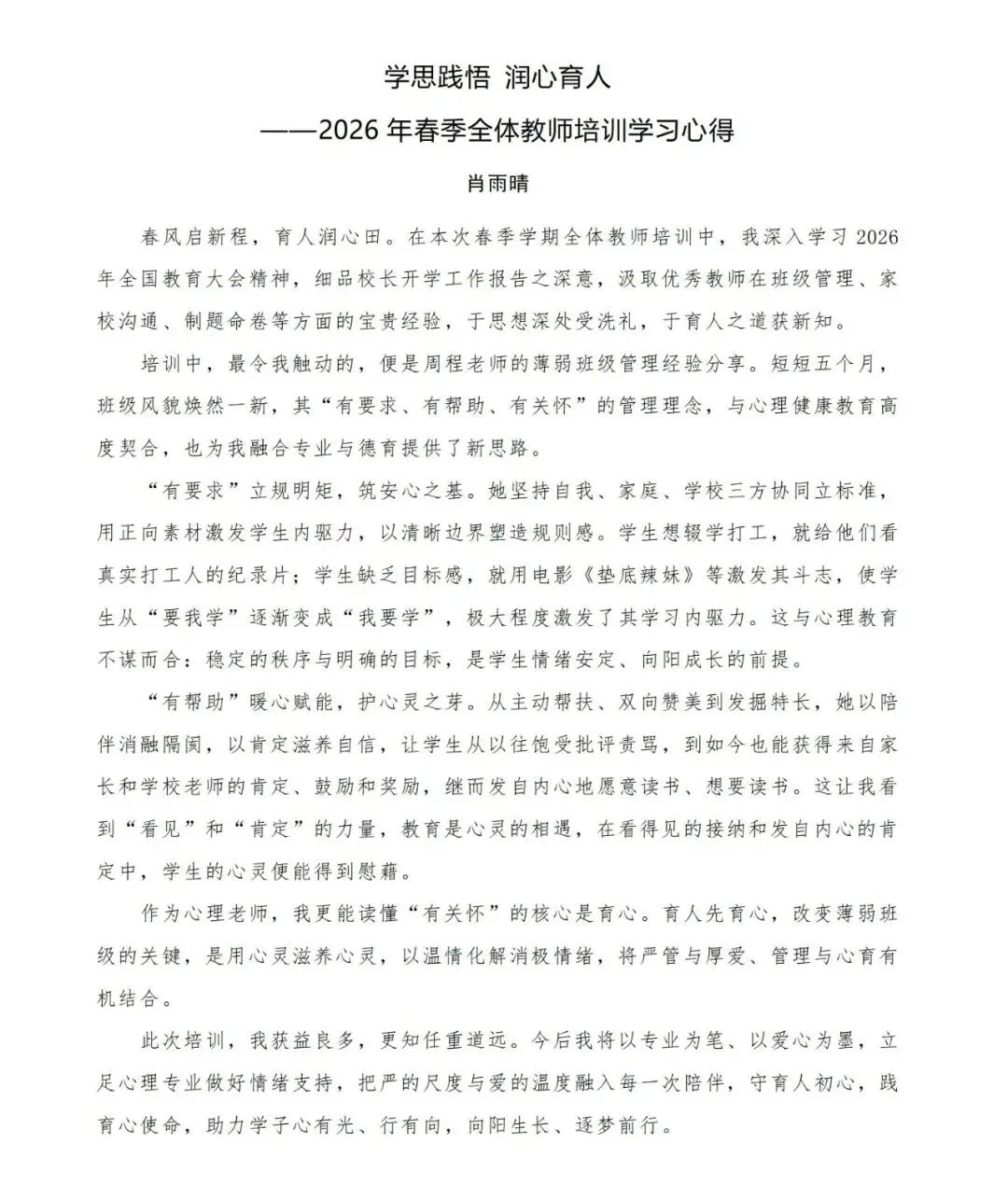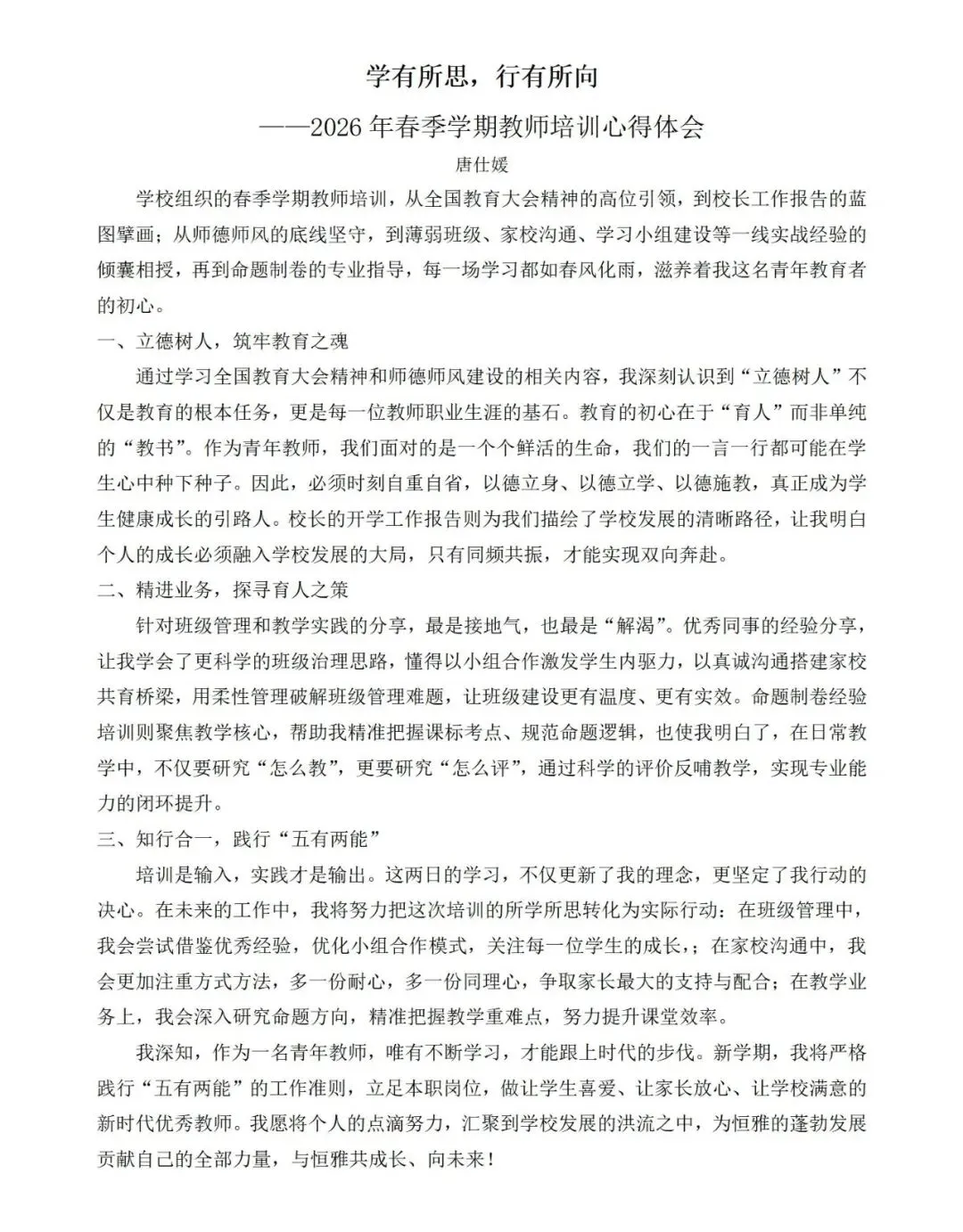 郑总寄语全体教师,教育是温暖的修行,愿大家带着培训收获与教育热爱深耕课堂,以实干成就未来。他坚信,全体恒雅人同心同德、携手并肩,定能将学校建设成为学生向往、家长信赖、社会赞誉的三湘名校。