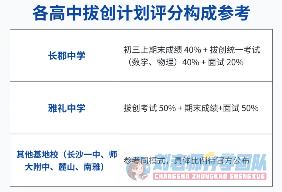 今年最关键的变化是:彻底告别“唯竞赛论”,综合评分占比增加。往年拔创录取,基本只看校内笔试+面试成绩,而今年,长郡、雅礼两大名校都向家长透露:录取会新增重要参考,即初三上学期期末考试成绩。
