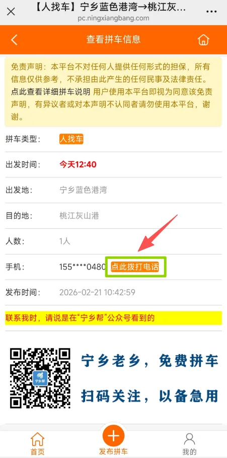 识别下方二维码,直达拼车专属页面,拼车信息免费发布!