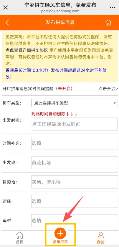 4.把拼车的类型、时间、出发地、目的地等填写清楚即可。