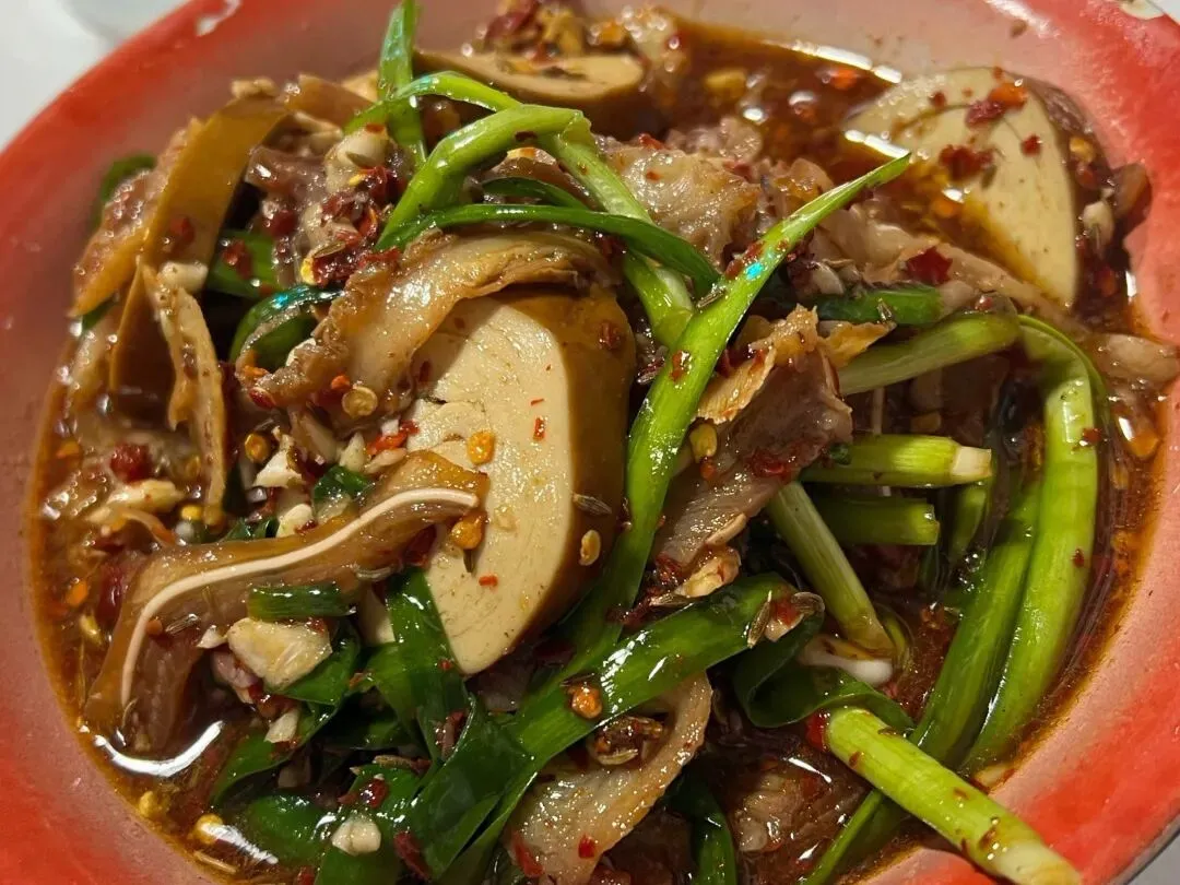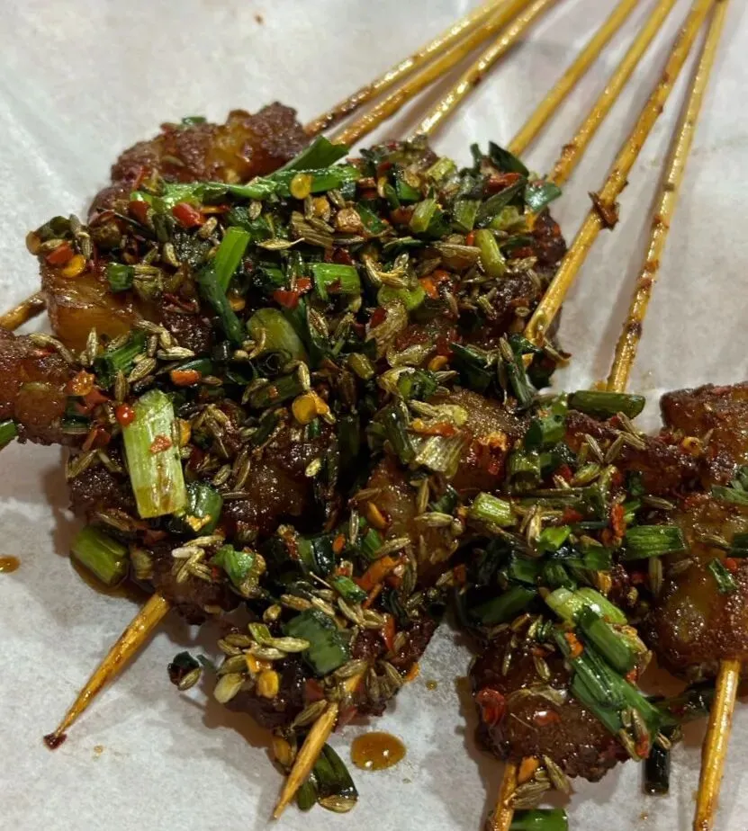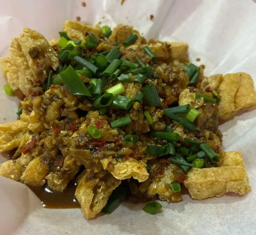 肉臊粉,非常符合我的口味,个人很喜欢又薄又软烂的米粉,湘潭粉就是这个口感!汤有猪油香,但相对开始比较清淡,不是那种很浓郁的,也是我喜欢的清澈的感觉。各人有各人的喜好,也许这个粉不是每个人都喜欢的,但是我个人觉得挺好,我一直喜欢长沙、湘潭、益阳和岳阳的米粉。炸兰花干子,炸得又香又糟,蘸点底部的汁水,咬下去还爆汁,也入味,很不错。铁板擂串,非常香,孜然辣椒香味扑鼻。牛板筋焦香有嚼劲。还有铁板鱿鱼须、牛肉和牛油……他家还有嗦螺、油饼包烧麦、热卤的毛肚和花甲等等。是个品类比较丰富的小吃店。