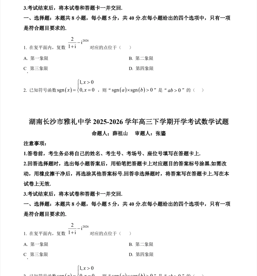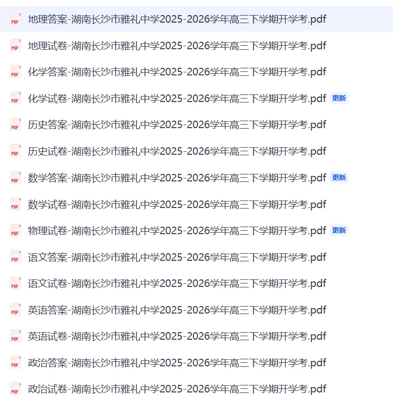 湖南长沙市雅礼中学2025-2026学年高三下学期开学考试(七)(实时更新)