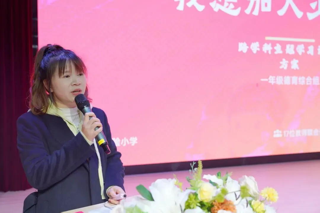 下午的活动以跨学科主题学习为核心展开经验分享与交流研讨。廖婵媛老师团队率先分享一年级“我想加入少先队”主题实践方案,团队将道德与法治、音乐、劳动等学科巧妙融合,让孩子们在活动中实现对少先队的情感认同与行动自觉。