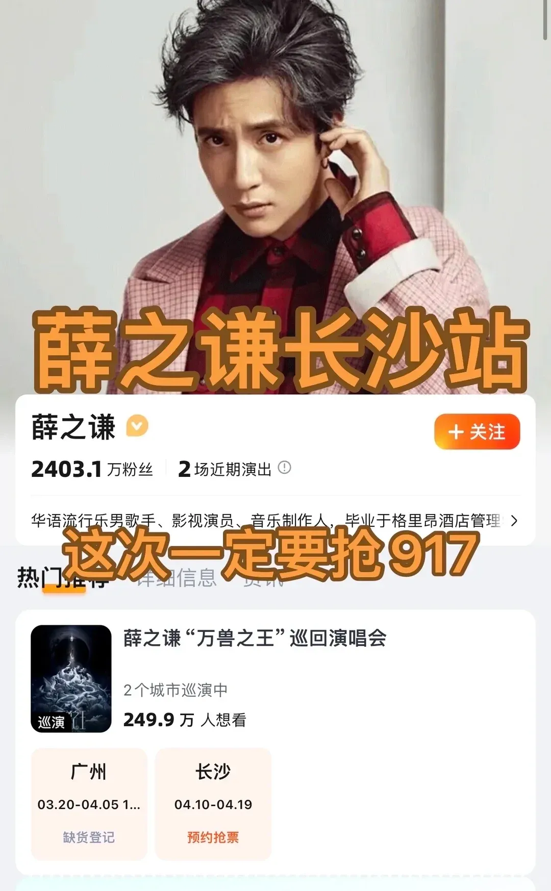 薛之谦长沙站!一定要抢917!