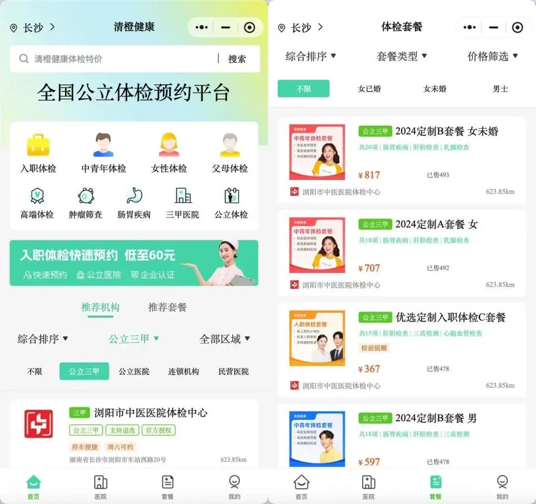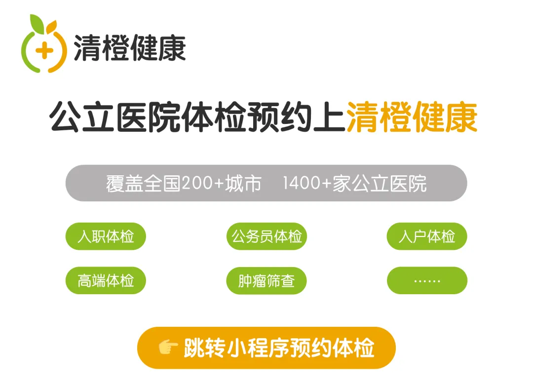 大家可以通过清橙健康小程序预约各大三甲医院的体检套餐,全国200+城市,1400+多家三甲医院授权预约。