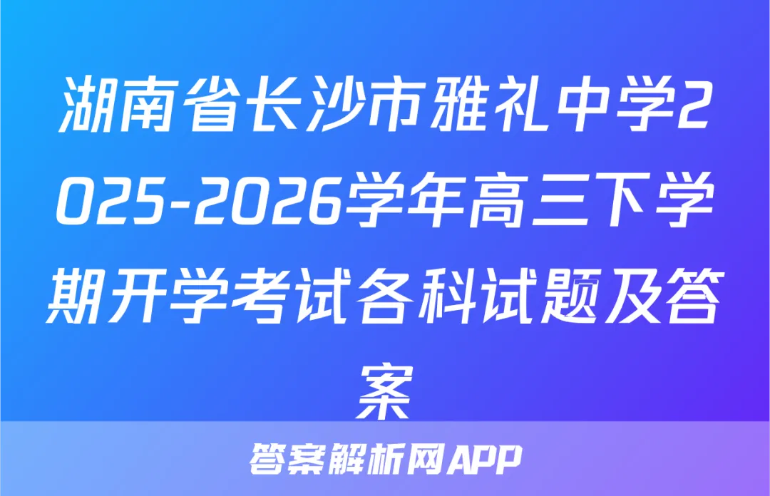湖南省长沙市雅礼中学2025-2026学年高三下学期开学考试各科试题及答案,答案解析网已经更新了湖南省长沙市雅礼中学2025-2026学年高三下学期开学考试各科试题及答案