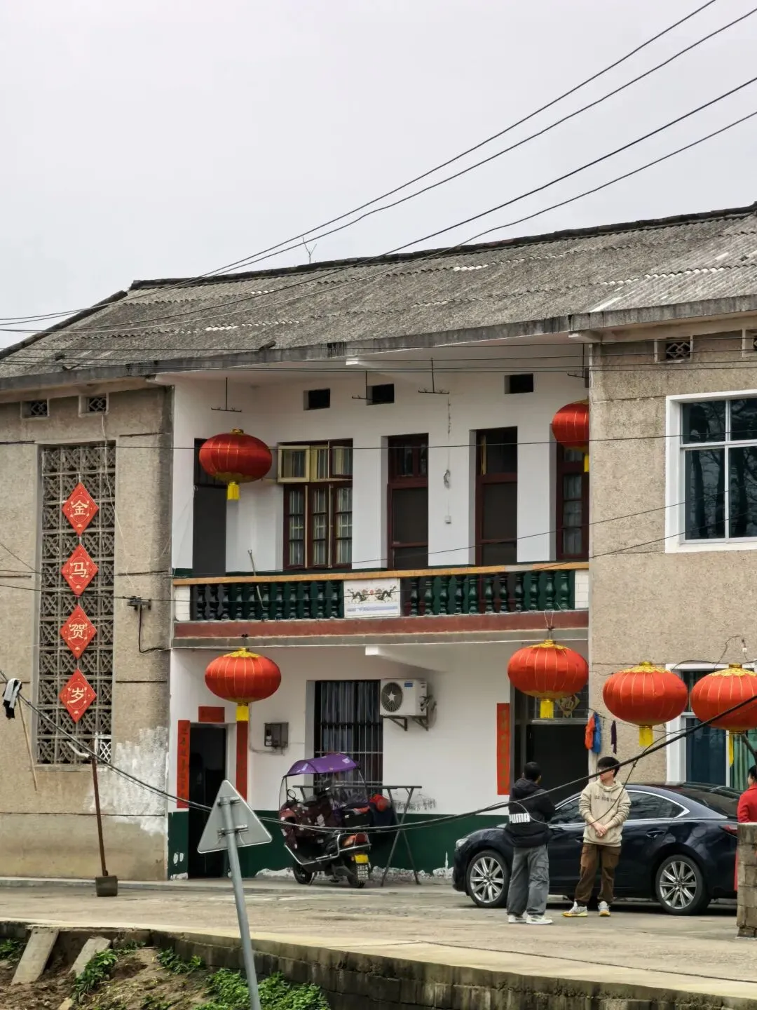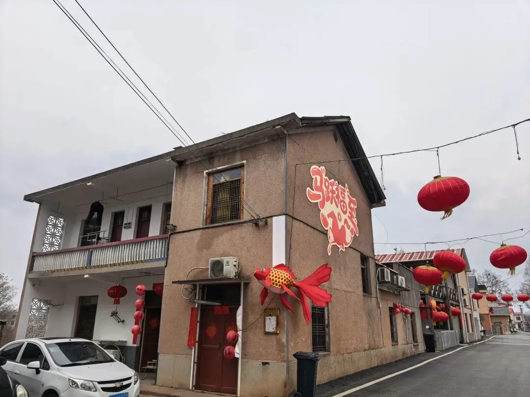 随着去岛上的人变多,这里的居民也在发展旅游产业,有提供露营地可以烧烤摆摊,有农家乐土菜馆,有咖啡馆,有饮品店。因为才举办过春节民俗活动,靠近上岛那一线民居室外,装扮的很喜庆。