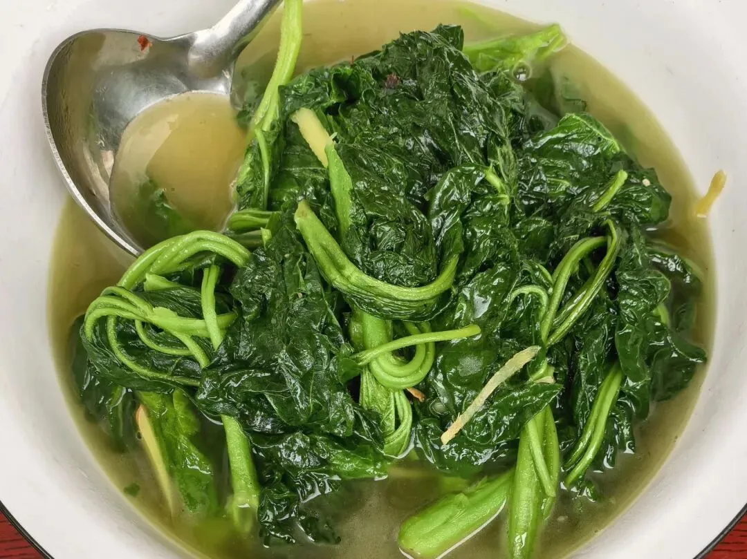 餐馆很多以吃鱼为特色,我们去了一户农家,老板说鱼是自己钓的,不知道是不是直接从湘江里钓上来的,估计没有岛民养鱼吧。不过价格还是有点溢价,一份蒸鲍盐鱼、一份冬寒菜,80块钱。不过,冬寒菜确实很嫩滑,看起来有点粗的茎杆,吃起来也不老。