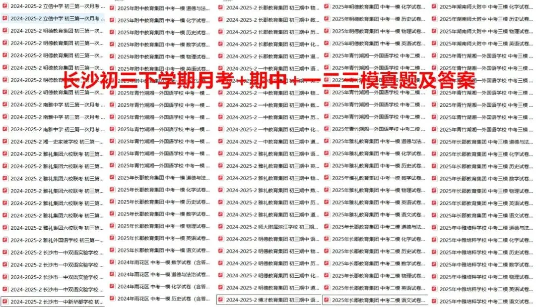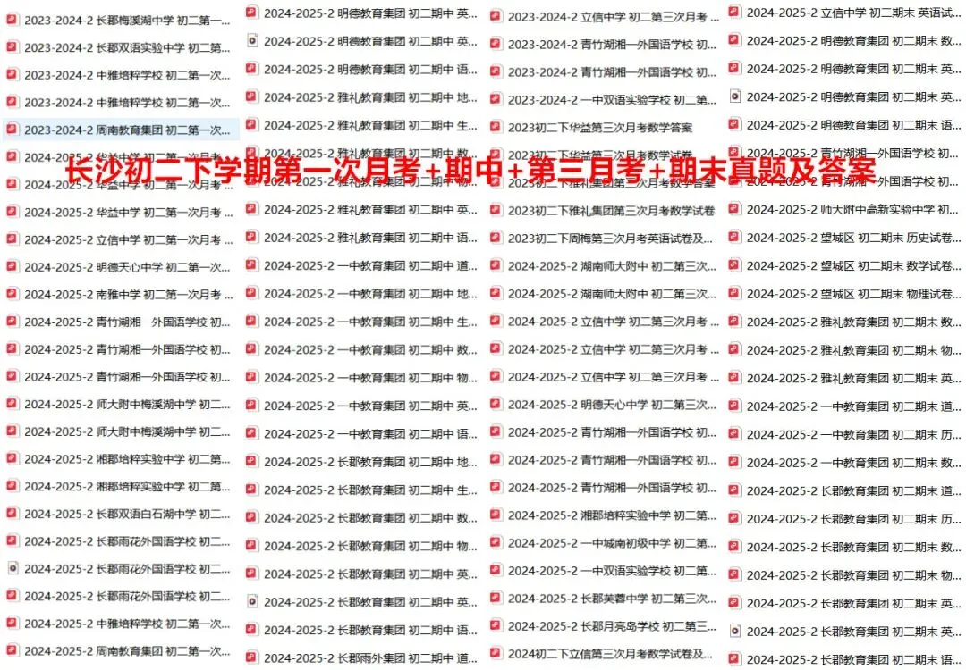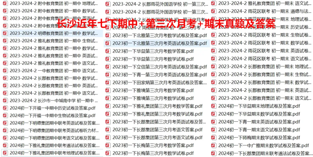 长沙七下第一月考+期中+第三次月考+期末真题合集,98元。