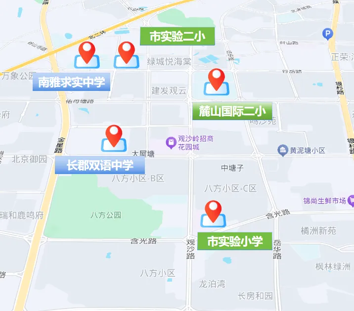 小学王牌:市实验小学和麓山国际实验小学这两所长沙顶级小学的本部也在此,这是梅溪湖、洋湖等板块目前都没有的顶级小学资源。