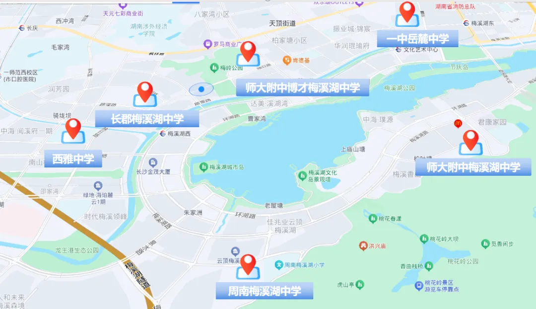今天,我们就来好好盘一盘河西各大板块的学区格局。现在的河西,可以说是“百花齐放”:有老牌名校坐镇的观沙岭,有学校整体实力均衡的梅溪湖一期,有在2025年中考打了一场漂亮“翻身仗”的洋湖,还有靠一所好学校就能“出圈”的大王山、谷山等板块。