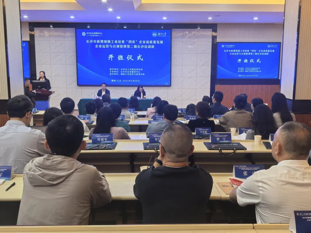 2025年9月26日,长沙市新增规模工业培育“四库”企业高质量发展第二期培训班在湖南大学财院校区开班。来自全市“四库”企业的120余名负责人及高管参与培训,共同聚焦“提升企业综合管理能力”主题,深入探讨高质量发展背景下企业的转型路径与成长动能。
